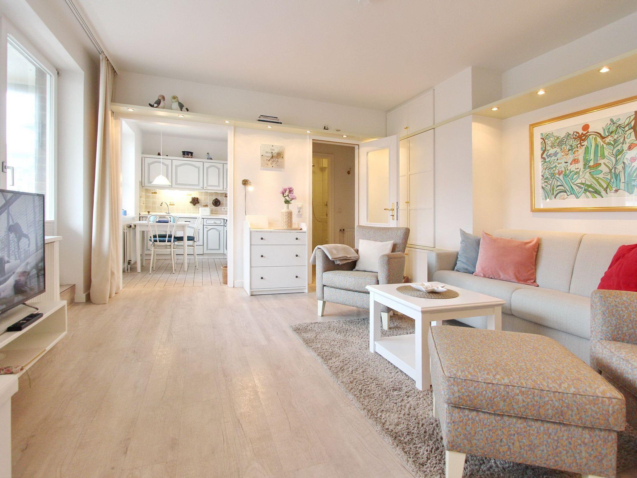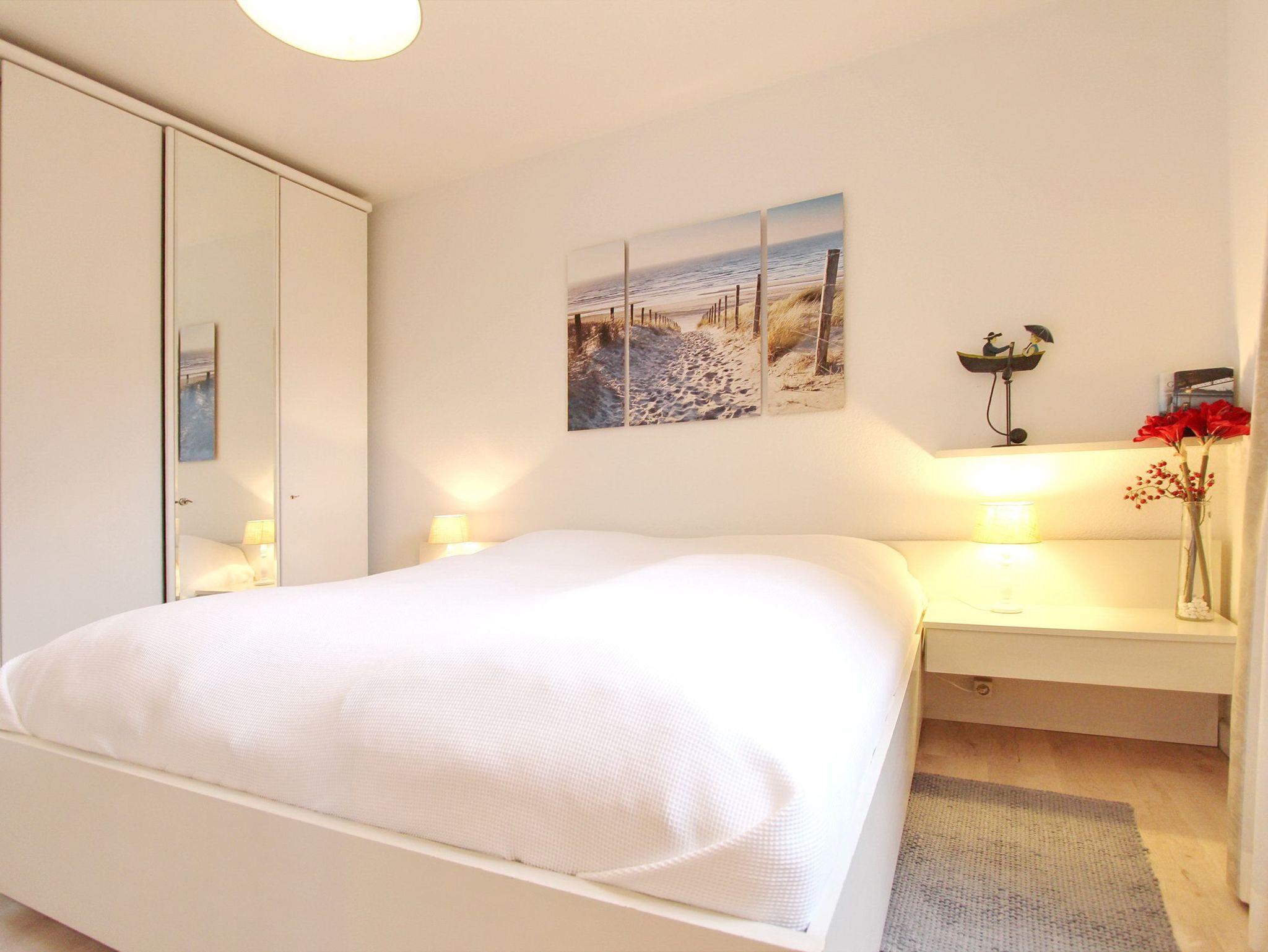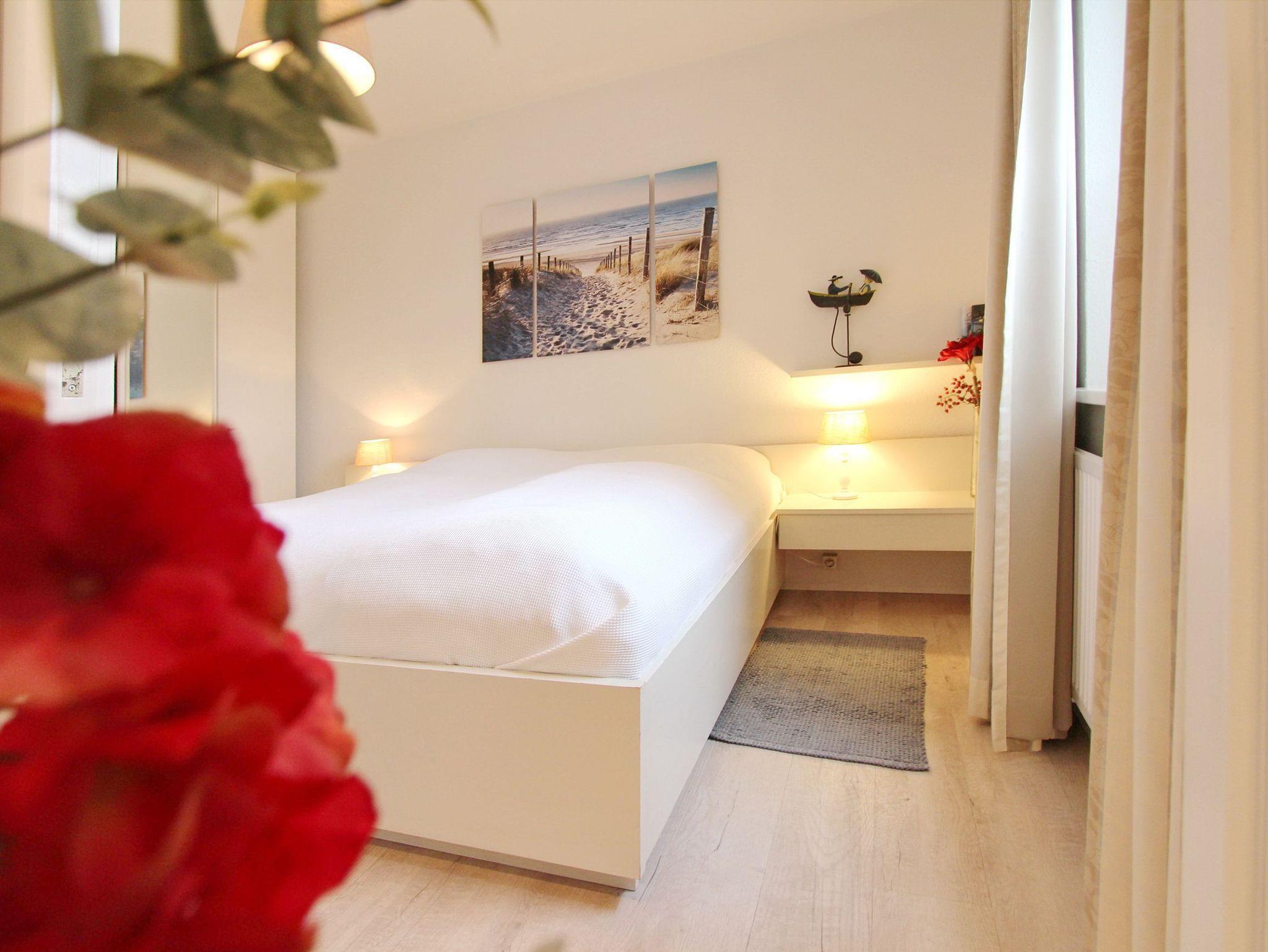 Diese tolle Ferienwohnung für bis zu 3 Personen liegt im zentral und strandnah gelegenen Appartementhaus Margaretheneck in der 1. Etage. Auf dem großen Südbalkon können sie die Sonne genießen und das nahe Meeresrauschen hören. Im großzügigen und lichtdurchfluteten Wohnzimmer gibt es eine bequeme Couch (mit Schlaffunktion) und zwei Fernsehsessel, sowie Designfußboden in Holzoptik. Die kleine, separate Küche mit Fenster verfügt über einen Geschirrspüler, einen Backofen und einen Esstisch mit 3 Stühlen. Im Schlafzimmer, dass mit einer Schiebetür vom Wohnraum getrennt ist, gibt es ein feststehendes Doppelbett und Schränke mit reichlich Stauraum. Das moderne Badezimmer verfügt über eine ebenerdige Dusche. Zur technischen Ausstattung dieser Nichtraucherwohnung gehört WLAN, ein Smart TV und ein Radio. Das WLAN des Eigentümers können Sie kostenfrei nutzen. Die Zugangsdaten befinden sich in der Wohnung. Die Wohnung liegt auch in unmittelbarer strandnähe im Stadtzentrum. Von dort aus gelangen Sie wunderbar zu Fuß in zahlreiche Shoppingläden, Einkaufsläden, Restaurants und vielem mehr, um den Urlaub schön zu gestalten. Ein Pkw-Stellplatz (Garage Nr. 2) ist inklusive und steht Ihnen in der Tiefgarage mit Doppelparksystem zur Verfügung. Die ausgehängten Betriebsanleitungen für die Nutzung der Garagen sind Bestandteil des Mietvertrages (nicht für alle PKWs geeignet). Ein Fahrradstellplatz befindet sich am Haus und auch die Wasch -und Trockenautomaten im Keller können Sie nutzen.