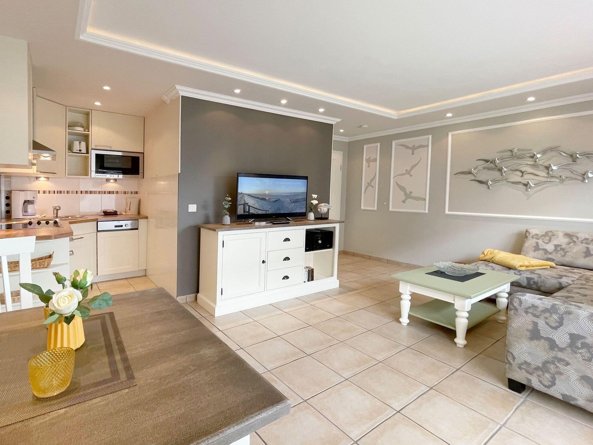 Moderne Ferienwohnung mit Terrasse in südlicher Ausrichtung, Smart-TV und WLAN, ideal für zwei Personen auf Sylt.