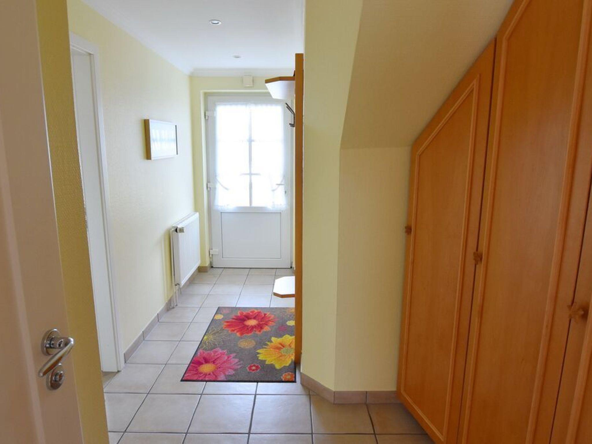 Moderne Ferienwohnung im Erdgeschoss mit Terrasse in südlicher Ausrichtung. Wohnzimmer mit gemütlicher Couch, Essecke für 2 Personen und offener Küchenzeile mit Geschirrspüler und Mikrowelle. Smart-TV und WLAN gehören hier zur Ausstattung. Schlafzimmer mit Doppelbett und zweitem TV. Duschbad mit WC und Waschbecken. Zur Ferienwohnung gehört ein PKW-Stellplatz ( Nr. 3 ) auf dem Grundstück. Im UG befinden sich für die Gäste des Hauses Waschmaschine und Trockner, Nutzung gegen geringe Gebühr. Gerne dürfen Sie hier ein gut erzogenes Haustier mitbringen. Dafür wird dann eine einmalige Haustiergebühr berechnet.