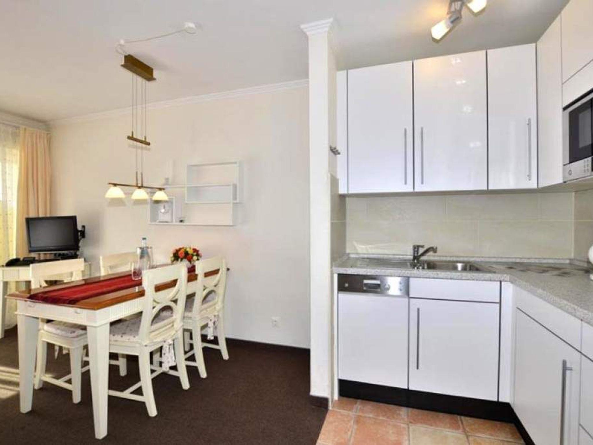 Die Küchenzeile hat einen Geschirrspüler, eine Mikrowelle, ein Ceranfeld mit 4 Kochfeldern, einen Kühlschrank. Kaffeemaschine, Wasserkocher und Toaster gehören zur Grundausstattung.