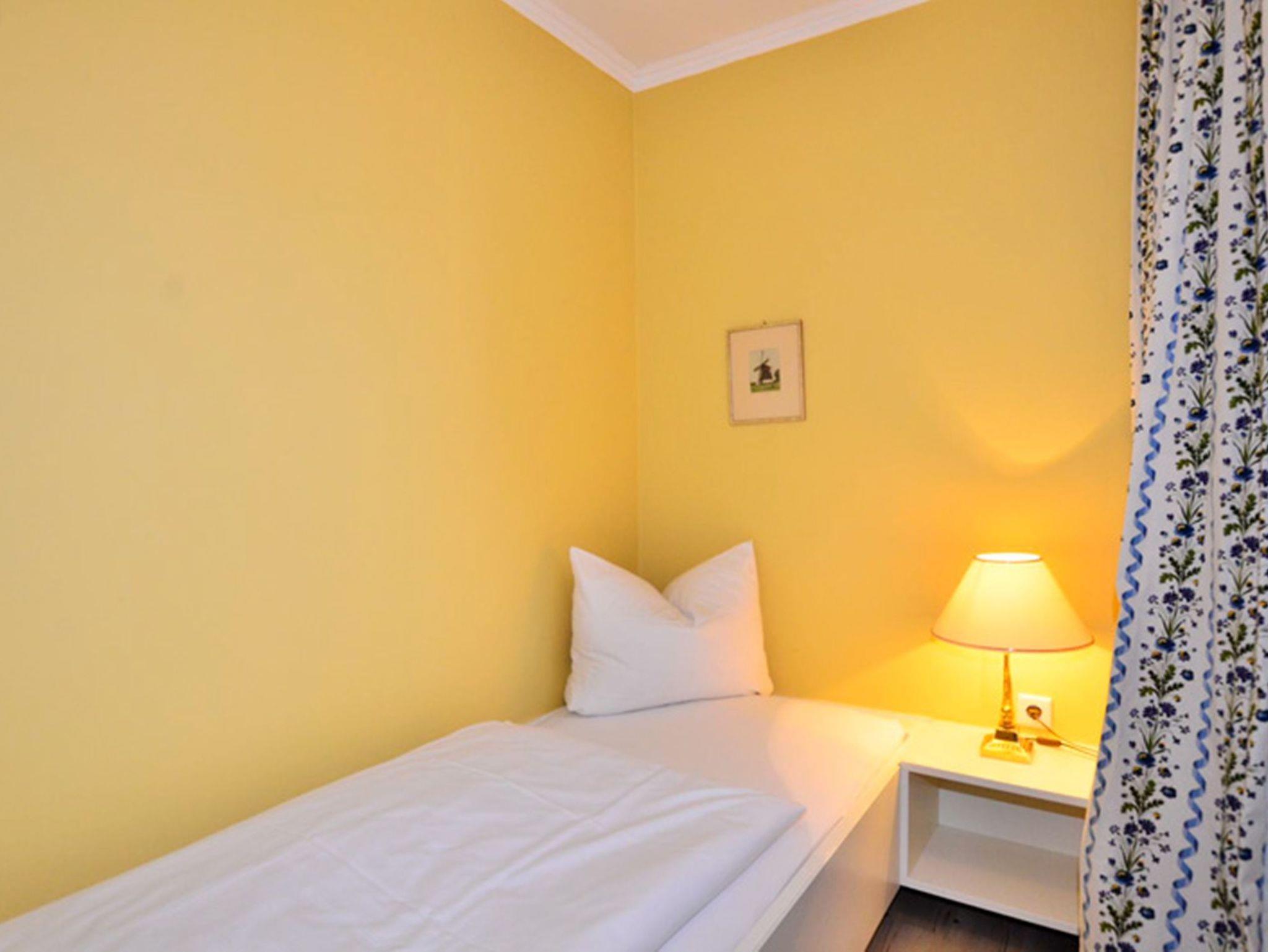Das kleine Schlafzimmer hat ein Einzelbett und ein Fenster.