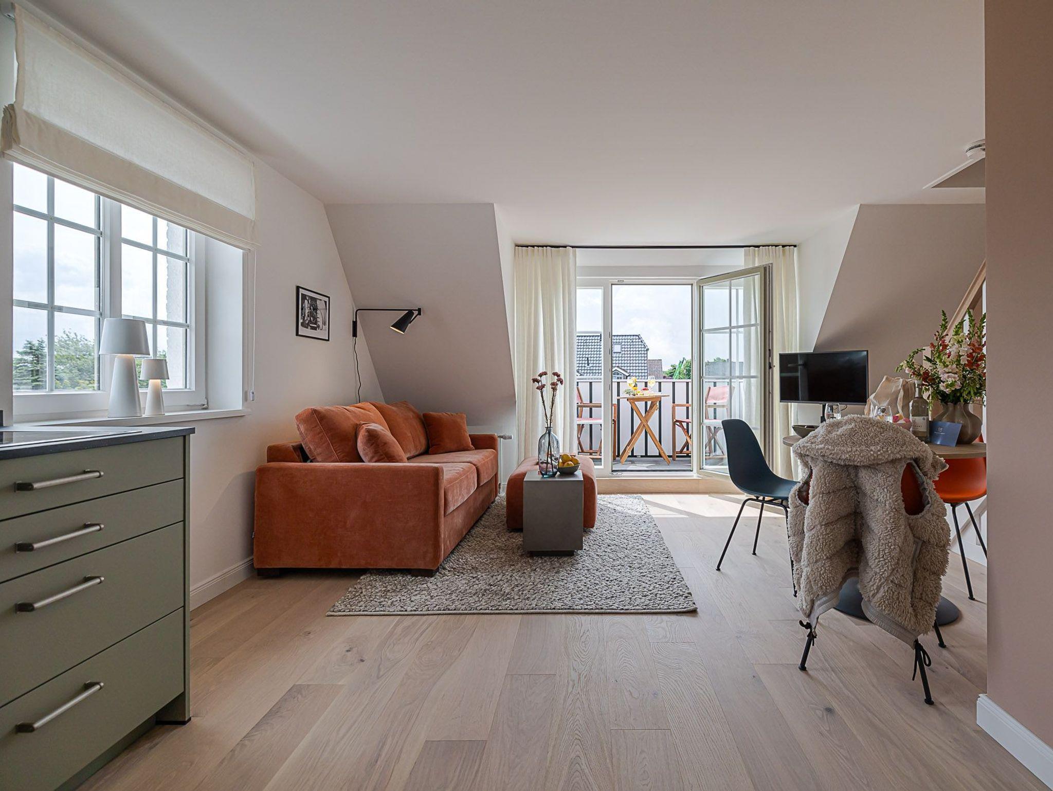 Kajüte #28 im CPTN Nicolai Resort bietet stilvolle Ferienwohnung in Westerland mit Balkon, Pool und Sauna für entspannte Tage auf Sylt.