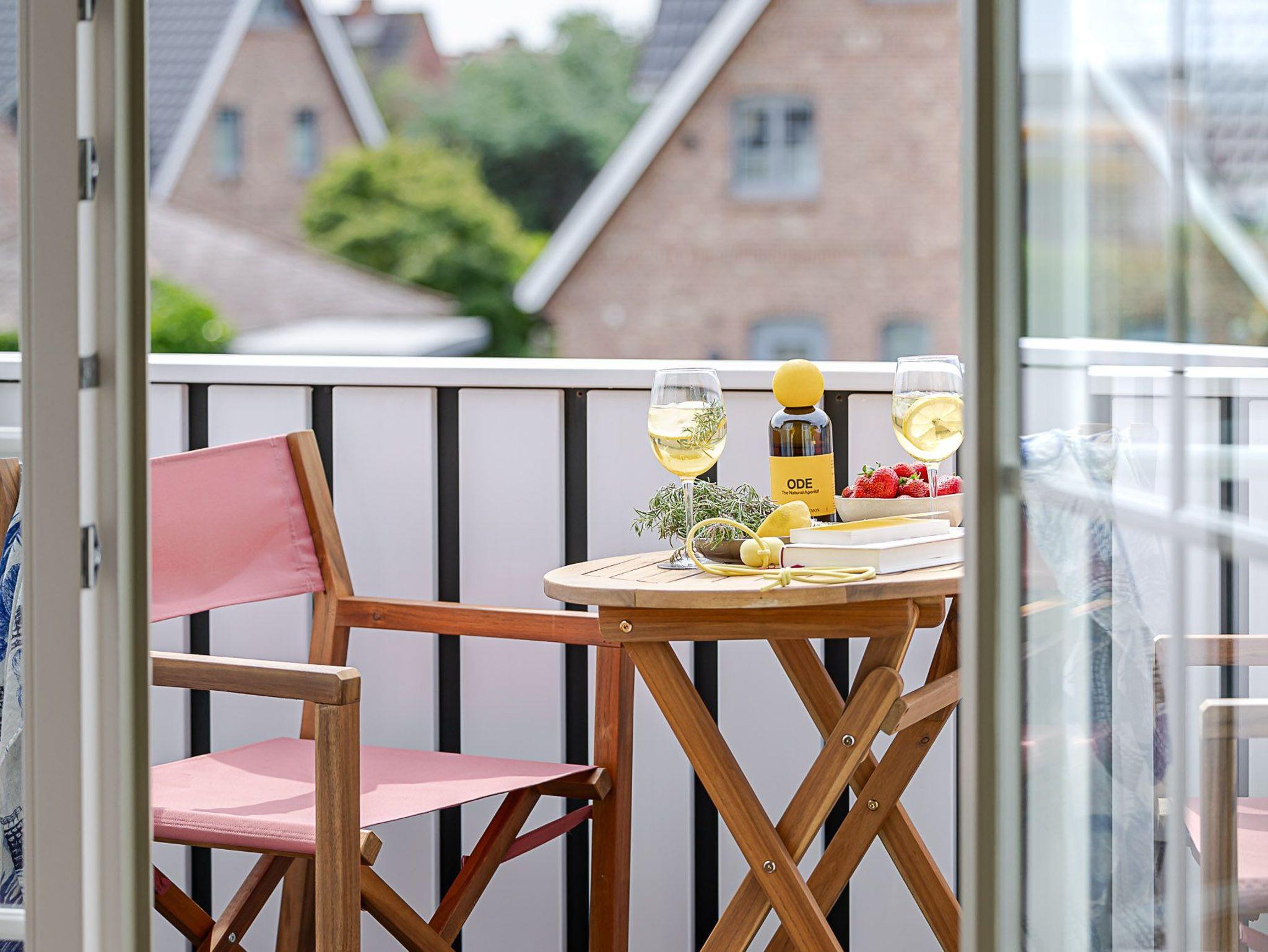 Es gibt da übrigens noch einen Platz, wo Sie Seeluft und Sonne genießen können, und zwar auf Ihrem Balkon! Hier stehen von Mai bis Oktober stylische und bequeme Balkonmöbel für entspannte Auszeiten parat, ein schöner Ausblick ist inklusive.