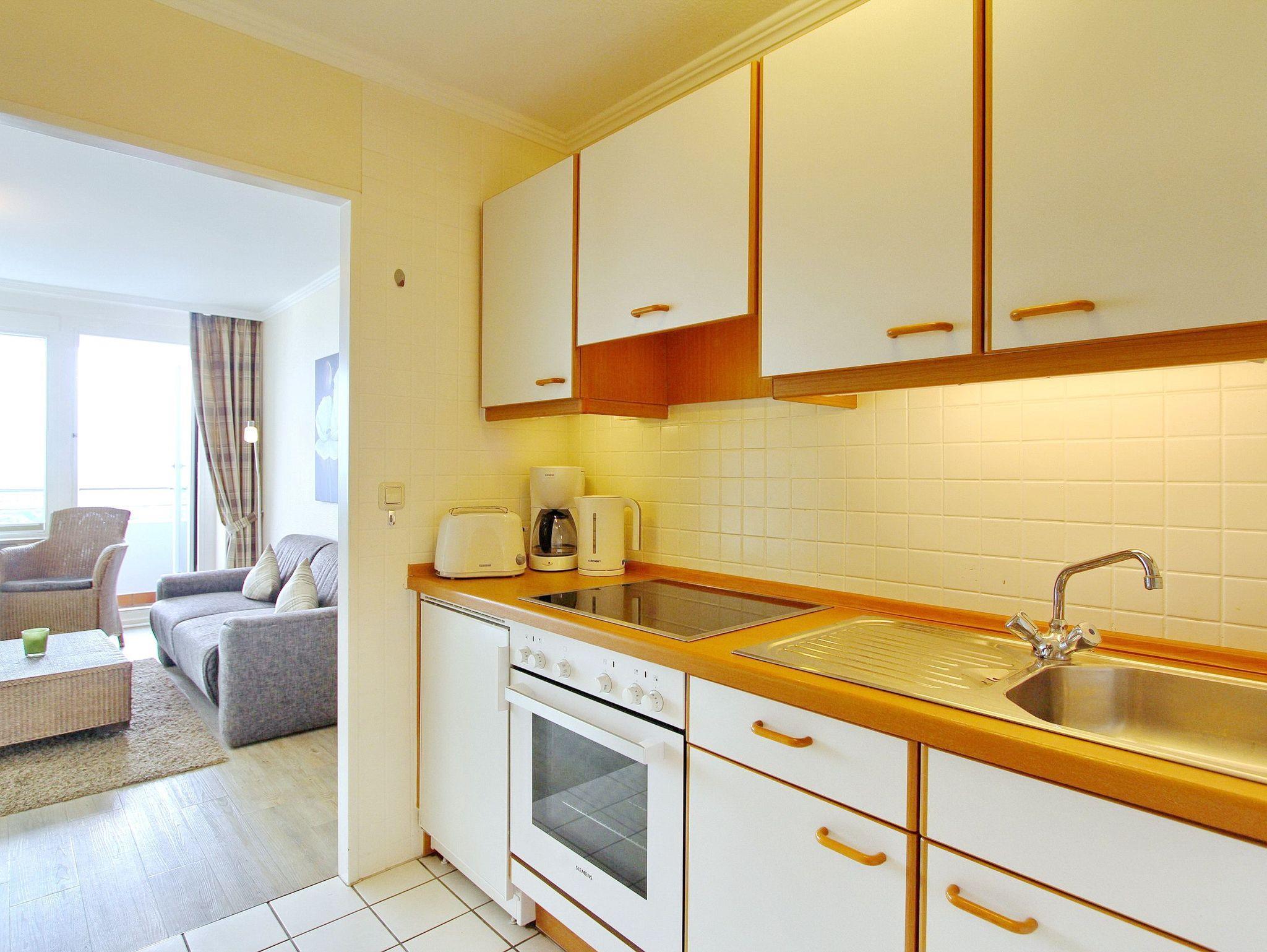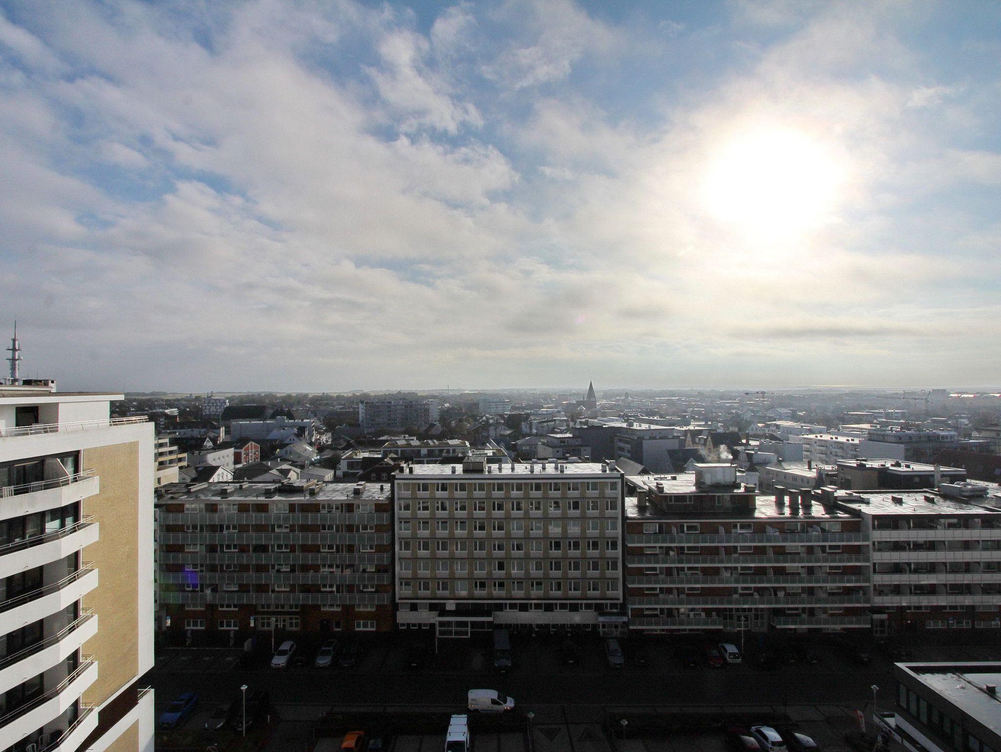 Schöne Einzimmerwohnung in der 9. Etage vom Haus Metropol mit einem traumhaften Weitblick über die Insel und die Stadt - bei klarem Wetter auf das nordfriesische Wattenmeer bis zum Festland. Der kombinierte Wohn-/Schlafraum mit vorgelagertem Ostbalkon verfügt über Einzelschrankbetten, einem Essplatz mit 2 Stühlen am Fenster und einer gemütlichen 2-Sitzer-Couch. Modernes Duschbad/WC. Die Einbauküche mit Flur ist mit einem Backofen, einem Cerankochfeld mit 4 Platten und einem Kühlschrank ausgestattet. Zur technischen Ausstattung gehört ein Flachbild-TV und ein Radio. Nichtraucherwohnung. Haustiere nicht gestattet. Ein freies WLAN Netz (WEG Haus Metropol - Passwortfrei - ohne Gewähr) steht Ihnen kostenfrei zur Verfügung. Wohnungsgröße ca. 30 m².