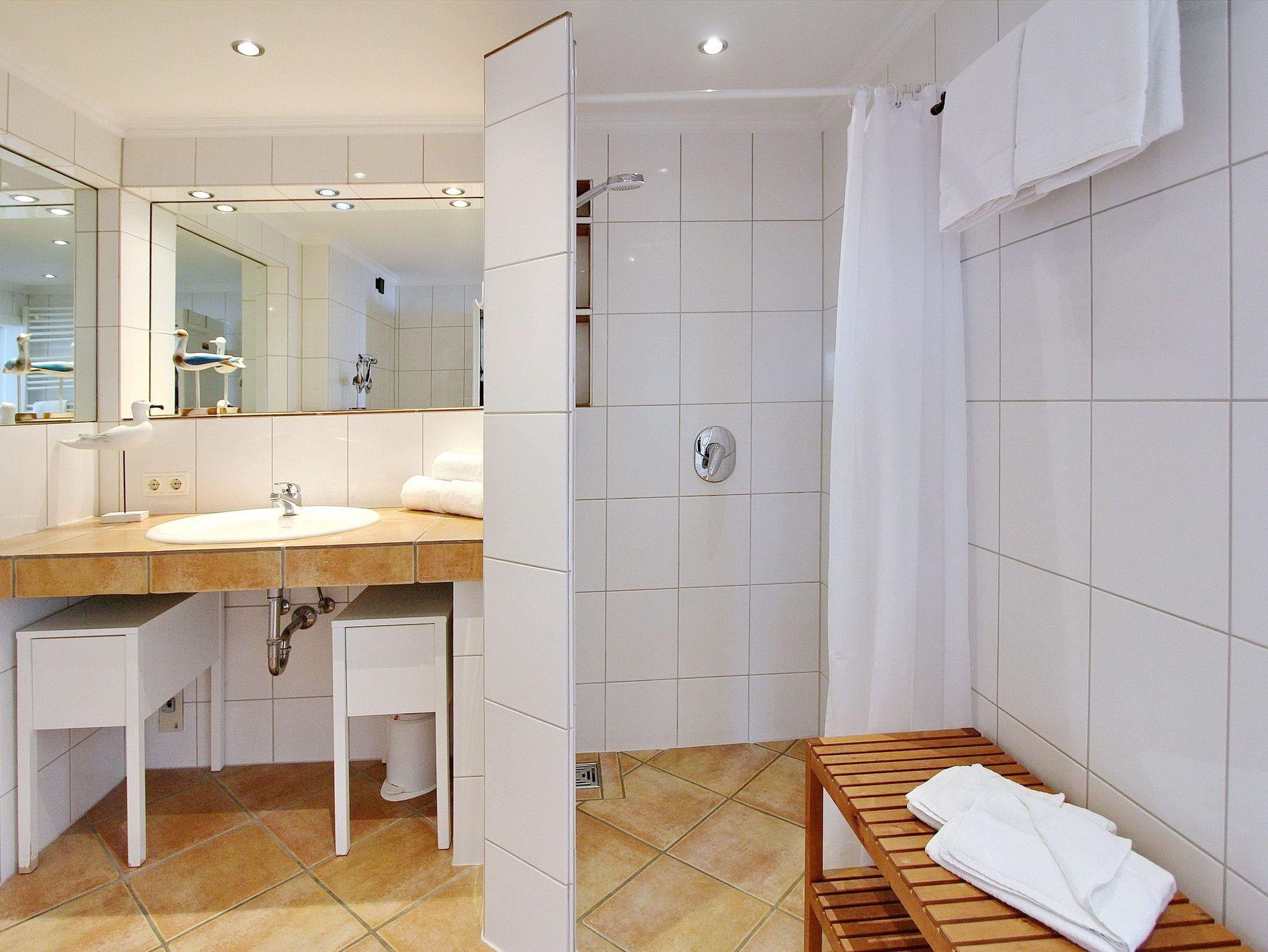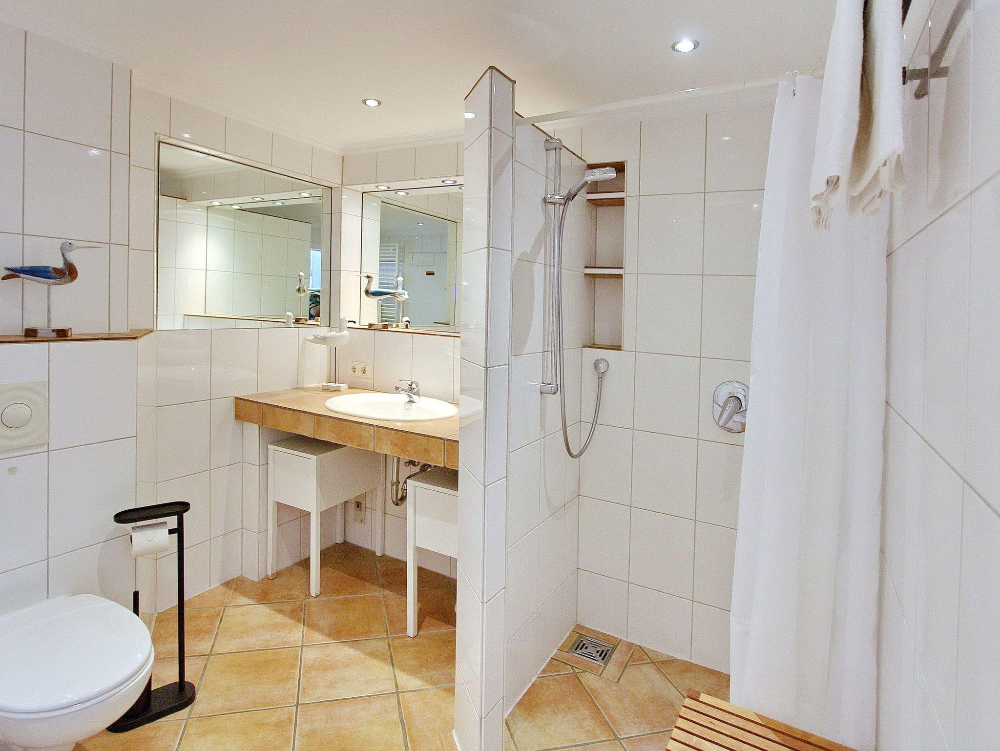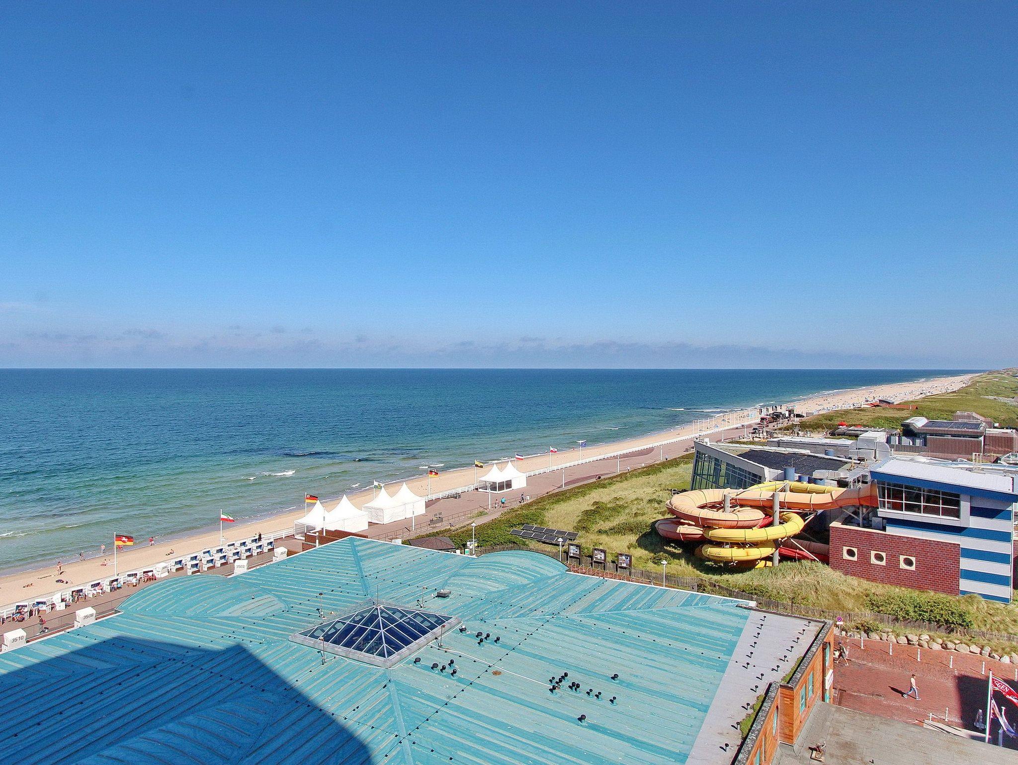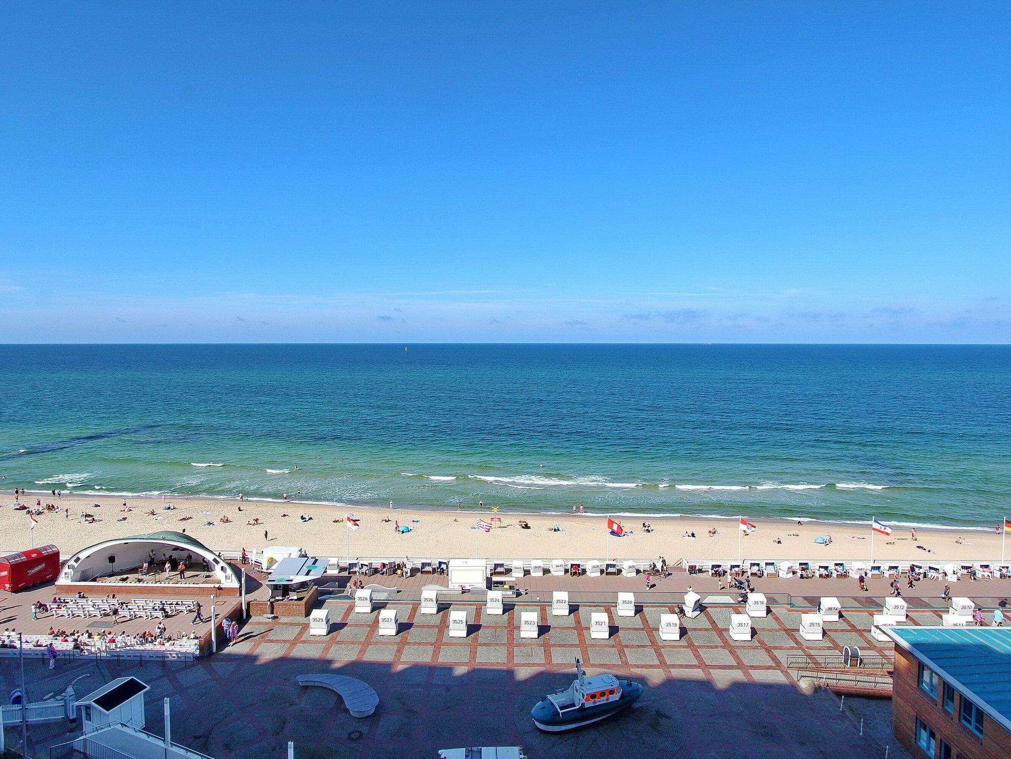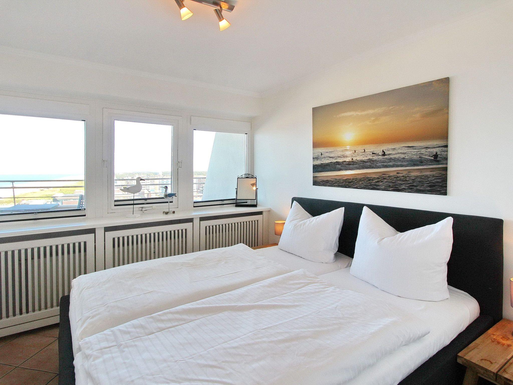 Wunderschöne 3 Zimmer Nichtraucher-Wohnung in der 6. Etage im Haus Metropol mit vollem Meeres-und Inselblick. Insgesamt hat die Wohnung 3 Balkone. Der lichtdurchflutete Wohnraum (mit einem West- und einem Nordbalkon) verfügt über eine große Couchgarnitur, einen großen Flachbildfernseher, einen runden Essplatz mit 4 Stühlen und eine offene Küchenzeile mit Geschirrspüler, Backofen, zusätzliche Senseo Pad Maschine und Mikrowelle. Das Schlafzimmer mit Doppelbett verfügt über einen Westbalkon, hat auch einen Fernseher und einen direkten Zugang zum Badezimmer. Das zweite Schlafzimmer mit Doppelbett hat einen tollen Blick über das Wasser Richtung Norden der Insel. Optionale spezielle Kopfkissen, Bettdecken und der Fliesenboden machen diese Wohnung allergikerfreundlich. Das Wohlfühlbad hat einen Waschtisch, einen mobilen Haltegriff, Duschhocker und eine ebenerdige Dusche, die auch für Gäste mit Handicap geeignet ist. Der Flur ist mit ausreichend Garderobenschränken ausgestattet. Die ganze Wohnung ist mit viel Liebe zum Detail eingerichtet und ist mit Sicherheit ein Platz an dem man einen erholsamen Urlaub verbringen kann.Ein freies WLAN Netzwerk (WEG Haus Metropol - Passwortfrei - ohne Gewähr) steht ihnen kostenfrei zur Verfügung. Wohnungsgröße : ca. 90 m².