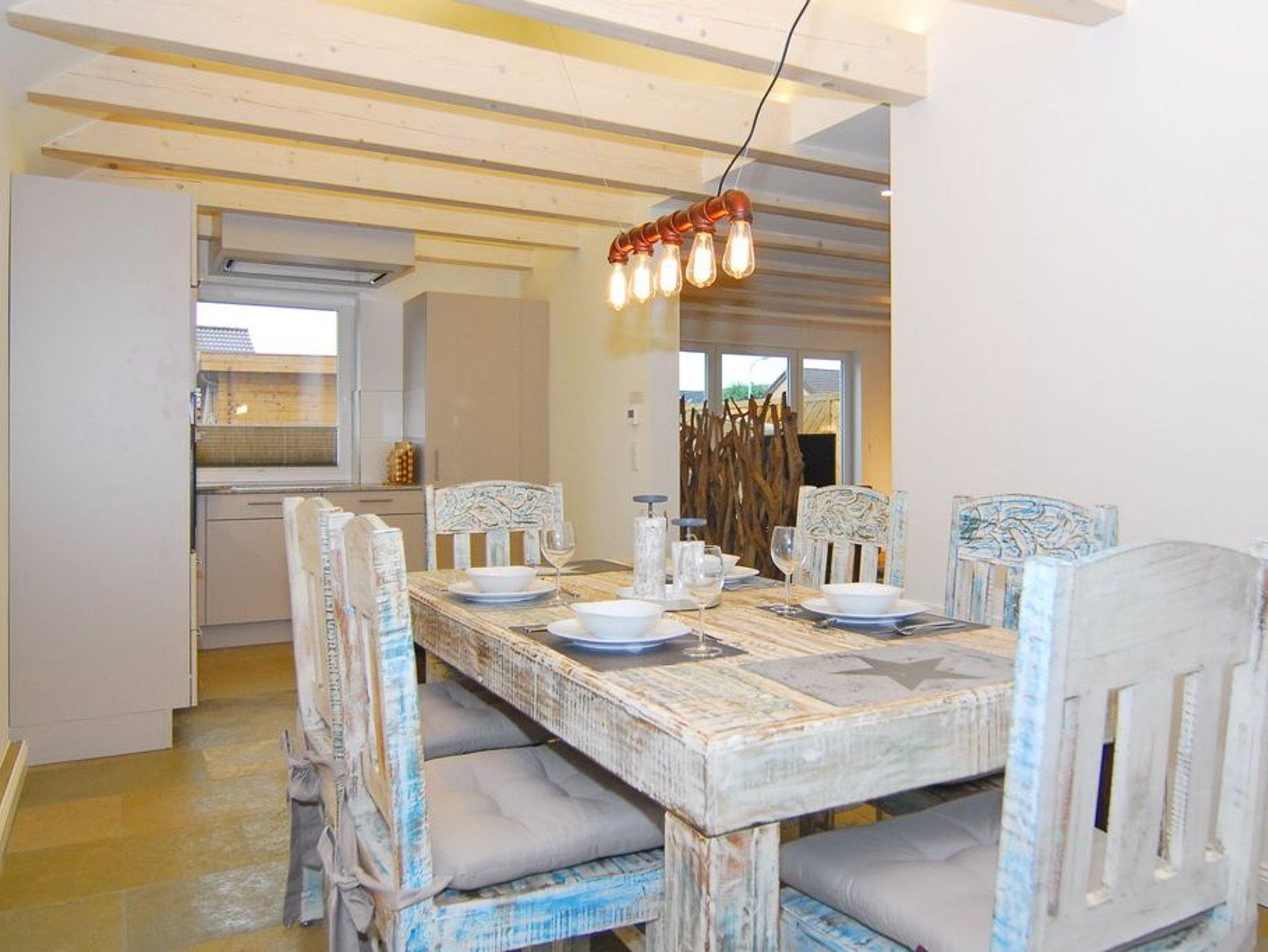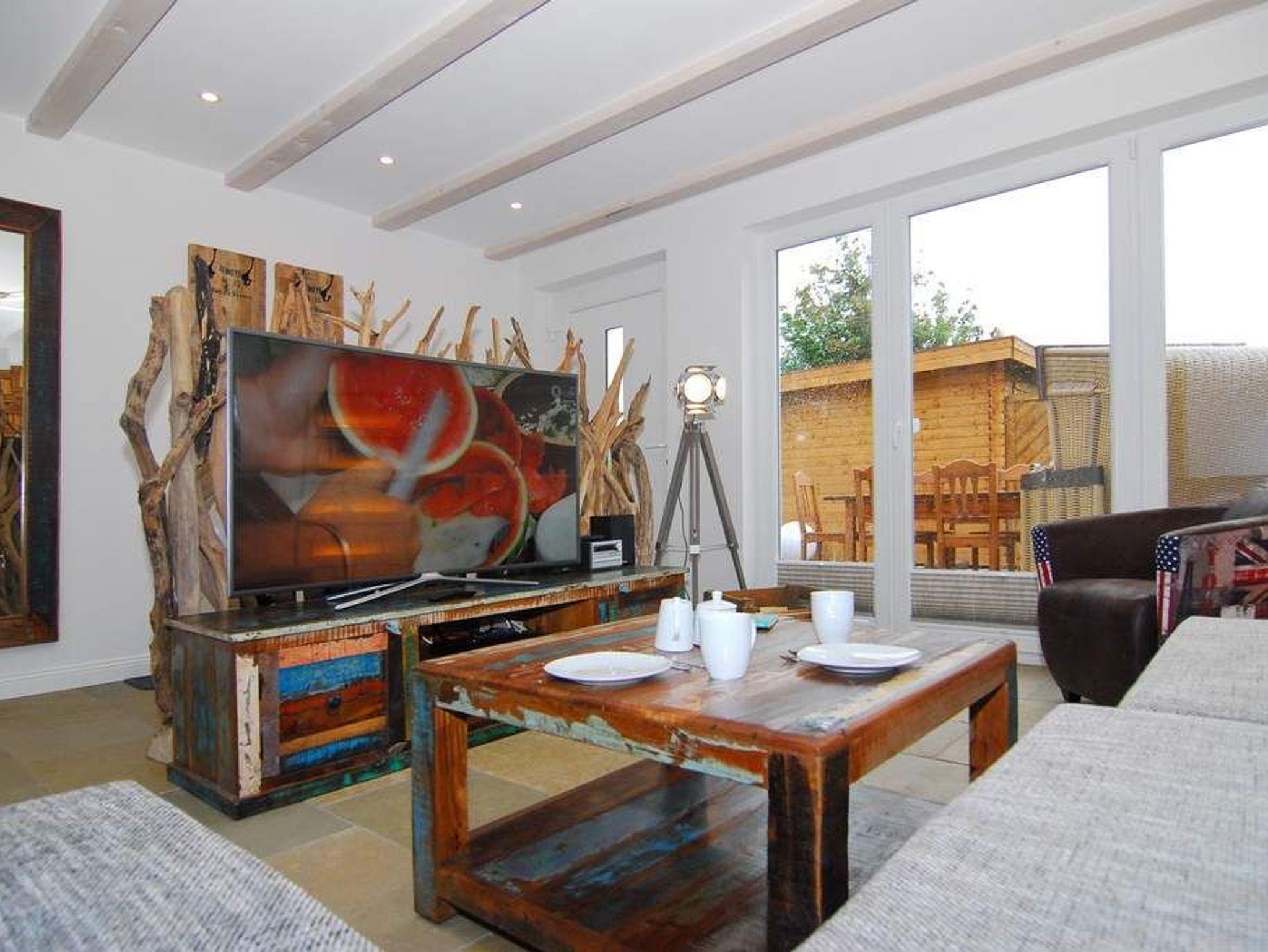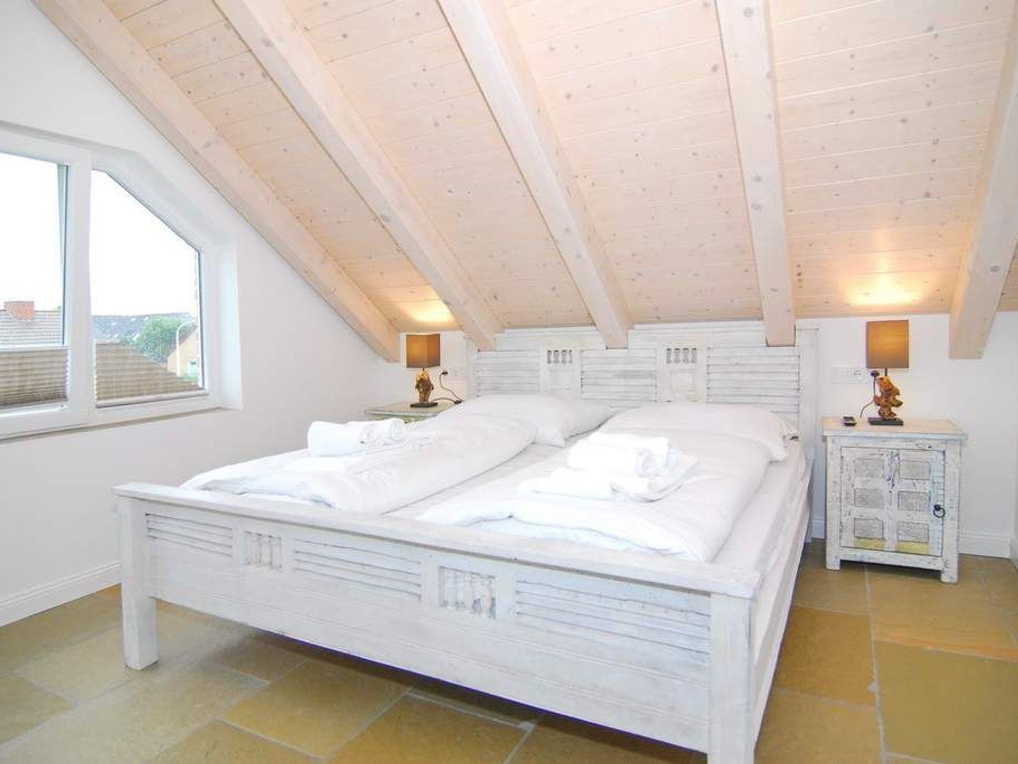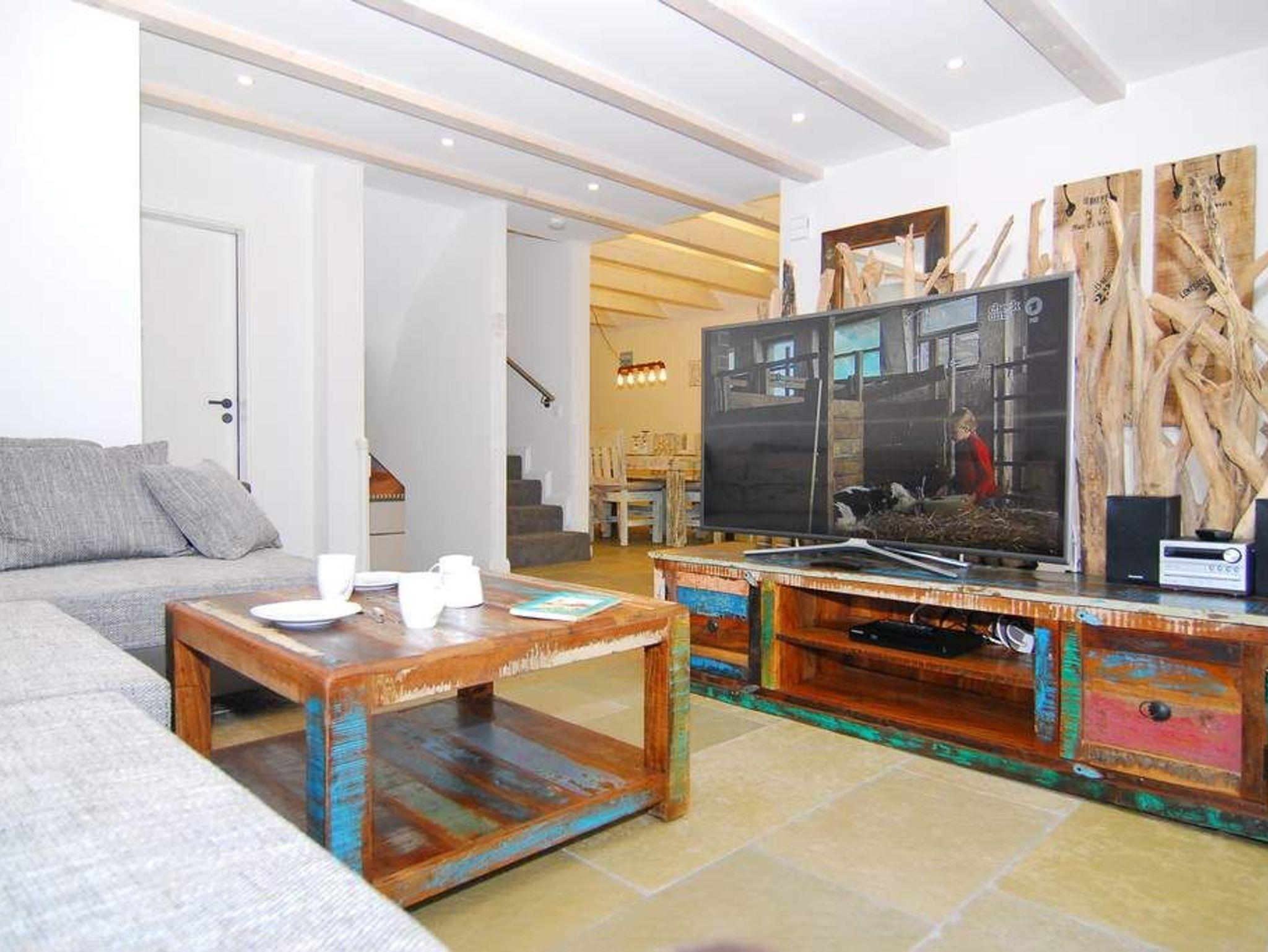 Die moderne Haushälfte liegt im Süden Westerlands in herrlich ruhiger Lage. Von hier aus sind es nur wenige Schritte in die Wiesen. Zum Strand und in die Innenstadt sind es ca. 1500m. Das Haus wurde im Sommer 2017 fertiggestellt und verfügt über insgesamt 3 Schlafzimmer jeweils mit Doppelbetten und TV. Ein Schlafzimmer befindet sich im Obergeschoss, die zwei weiteren im UG des Hauses. Der moderne und helle Wohnbereich bietet eine großzügige Einbauküche mit Backofen, Geschirrspüler und Mikrowelle, einen Essplatz für 6 Personen und eine gemütliche Sitzecke mit Flat-TV und Blue-Ray-Player, W-LAN (ohne Gewähr). Safe (Schlüssel erhalten Sie im Büro). Im Erdgeschoss steht Ihnen ein Gäste-WC zur Verfügung, im Obergeschoss ein Bad mit Wanne und Dusche und im Untergeschoss ein Duschbad/WC mit finnischer Sauna. Das Haus ist familienfreundlich ausgestattet, sämtliche Steckdosen sind mit Kindersicherungen versehen, an den Treppenauf- bzw. abgängen befinden sich Treppenschutzgitter. Waschmaschine und Trockner sind vorhanden. Sämtliche Räume sind gefliest und mit Fußbodenheizung versehen. Eine große möblierte Südterrasse, mit Sonnenschirm, bietet Ihnen Platz an sonnigen Tagen. Das Grundstück kann mit einer Gartenpforte geschlossen werden. Tierhaltung ist nach Anmeldung und gegen Aufpreis gestattet. Parkplatz mit Wallbox/E-Ladestation (5,-/Tag/Karte bei RR - kann nur für den geamten Aufenthalt gebucht werden !) am Haus. Bettwäsche und Handtücher sind zur Anreise aufgezogen.
