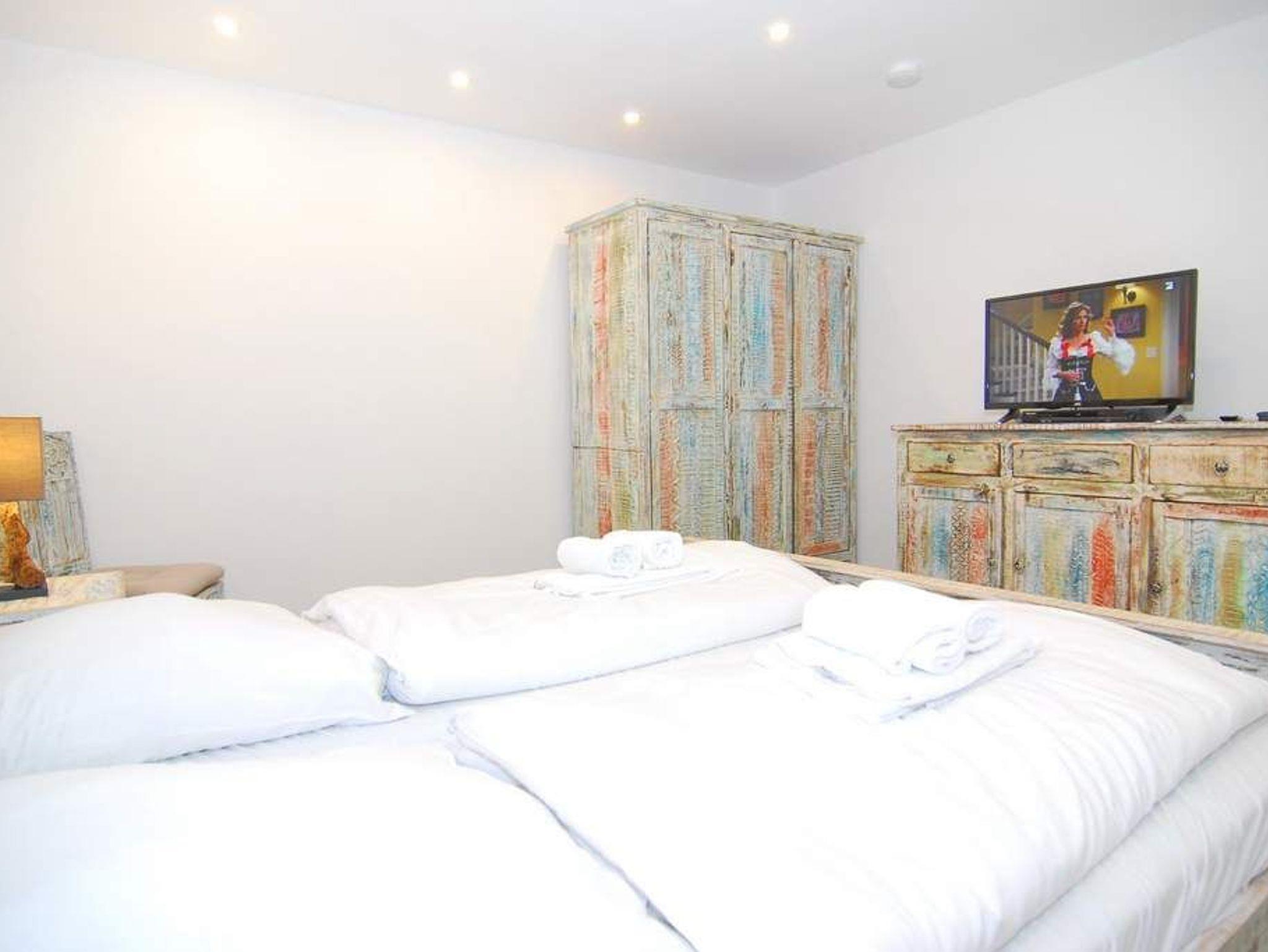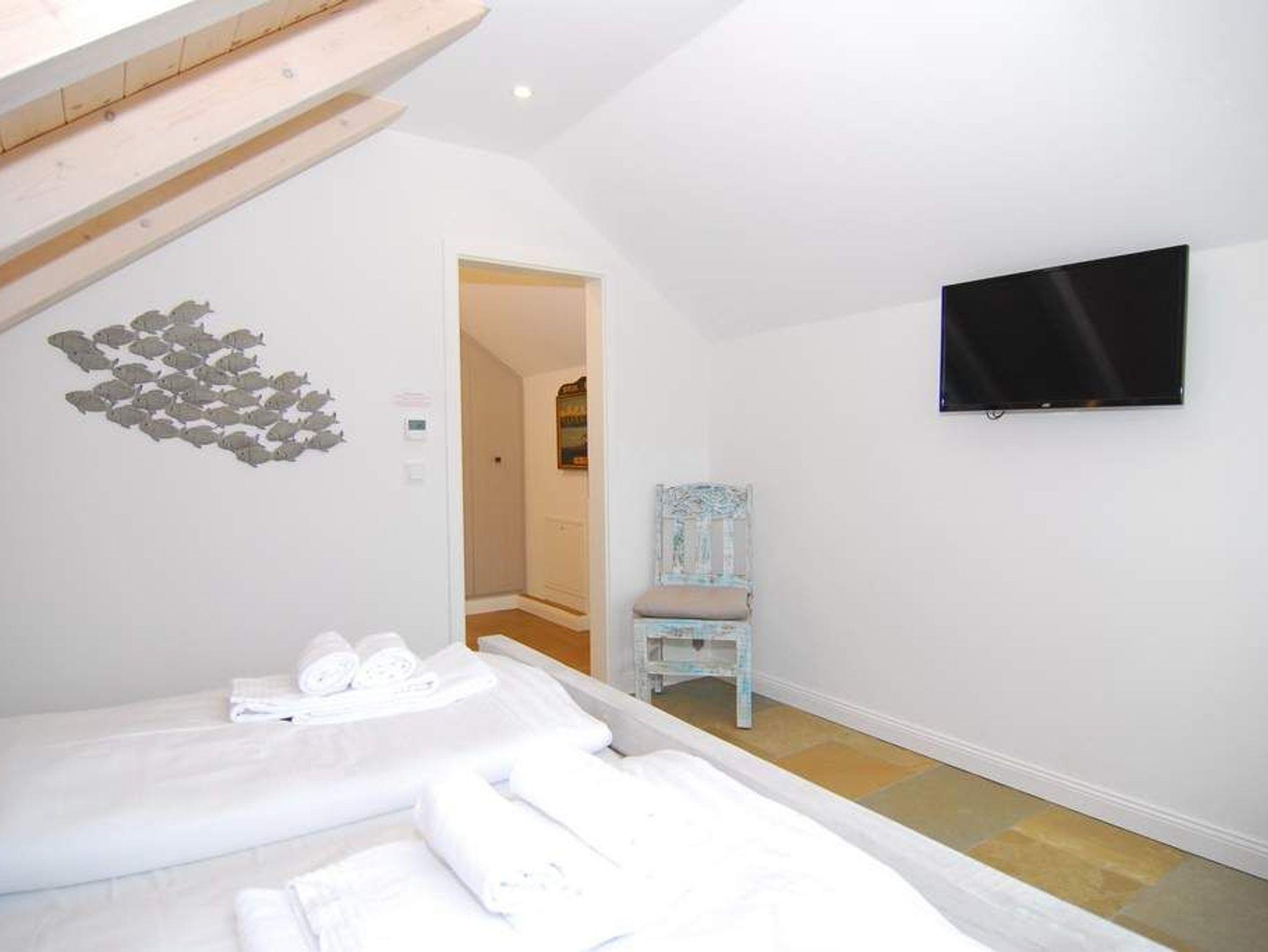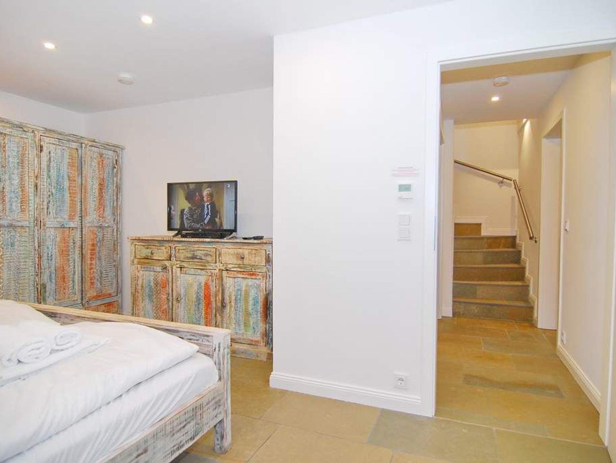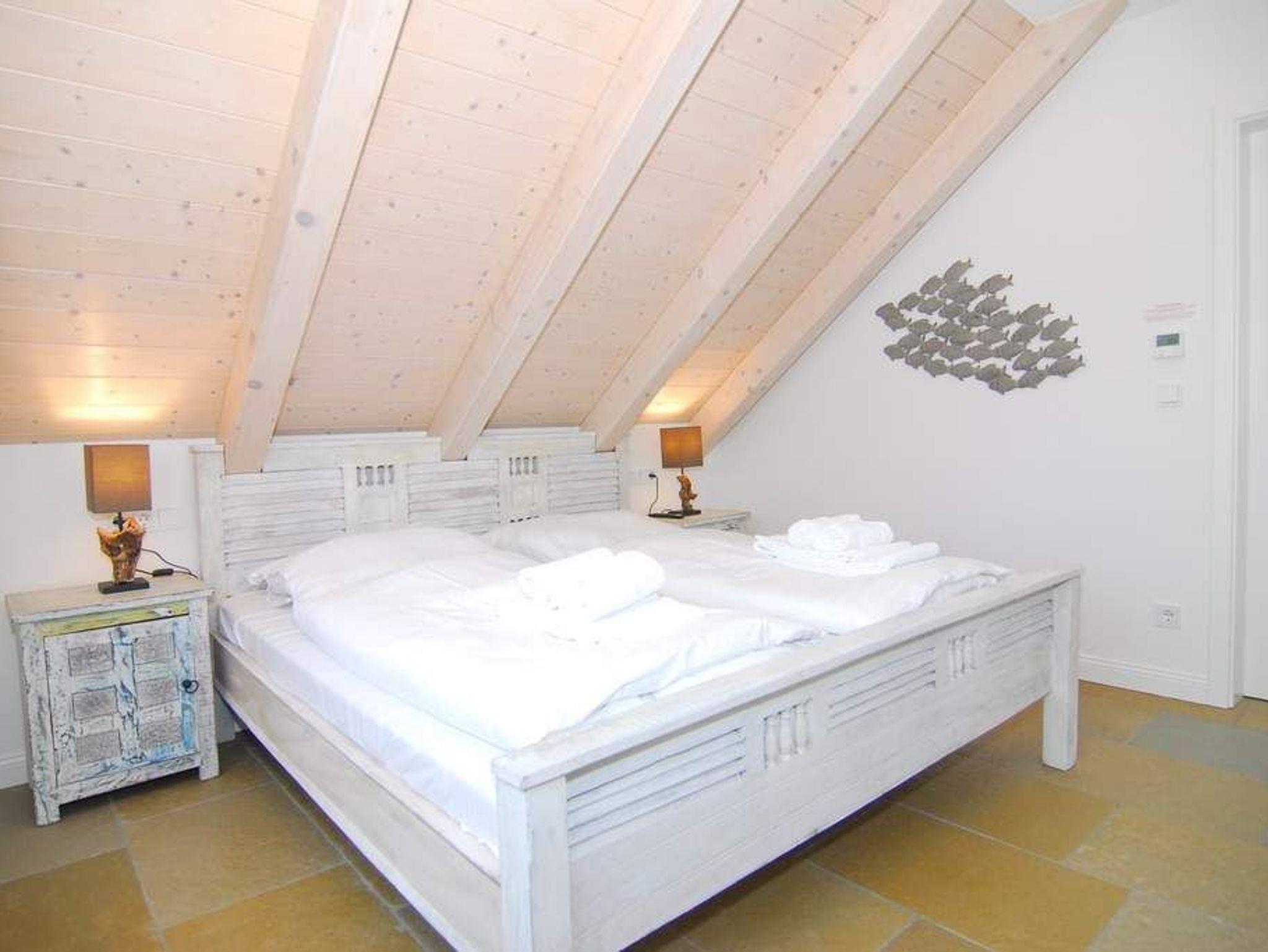 Die moderne Haushälfte liegt im Süden Westerlands in herrlich ruhiger Lage. Von hier aus sind es nur wenige Schritte in die Wiesen. Zum Strand und in die Innenstadt sind es ca. 1500m. Das Haus wurde im Sommer 2017 fertiggestellt und verfügt über insgesamt 3 Schlafzimmer jeweils mit Doppelbetten und TV. Ein Schlafzimmer befindet sich im Obergeschoss, die zwei weiteren im UG des Hauses. Der moderne und helle Wohnbereich bietet eine großzügige Einbauküche mit Backofen, Geschirrspüler und Mikrowelle, einen Essplatz für 6 Personen und eine gemütliche Sitzecke mit Flat-TV und Blue-Ray-Player, W-LAN (ohne Gewähr). Safe (Schlüssel erhalten Sie im Büro). Im Erdgeschoss steht Ihnen ein Gäste-WC zur Verfügung, im Obergeschoss ein Bad mit Wanne und Dusche und im Untergeschoss ein Duschbad/WC mit finnischer Sauna. Das Haus ist familienfreundlich ausgestattet, sämtliche Steckdosen sind mit Kindersicherungen versehen, an den Treppenauf- bzw. abgängen befinden sich Treppenschutzgitter. Waschmaschine und Trockner sind vorhanden. Sämtliche Räume sind gefliest und mit Fußbodenheizung versehen. Eine große möblierte Südterrasse, mit Sonnenschirm, bietet Ihnen Platz an sonnigen Tagen. Das Grundstück kann mit einer Gartenpforte geschlossen werden. Tierhaltung ist nach Anmeldung und gegen Aufpreis gestattet. Parkplatz mit Wallbox/E-Ladestation (5,-/Tag/Karte bei RR - kann nur für den geamten Aufenthalt gebucht werden !) am Haus. Bettwäsche und Handtücher sind zur Anreise aufgezogen.