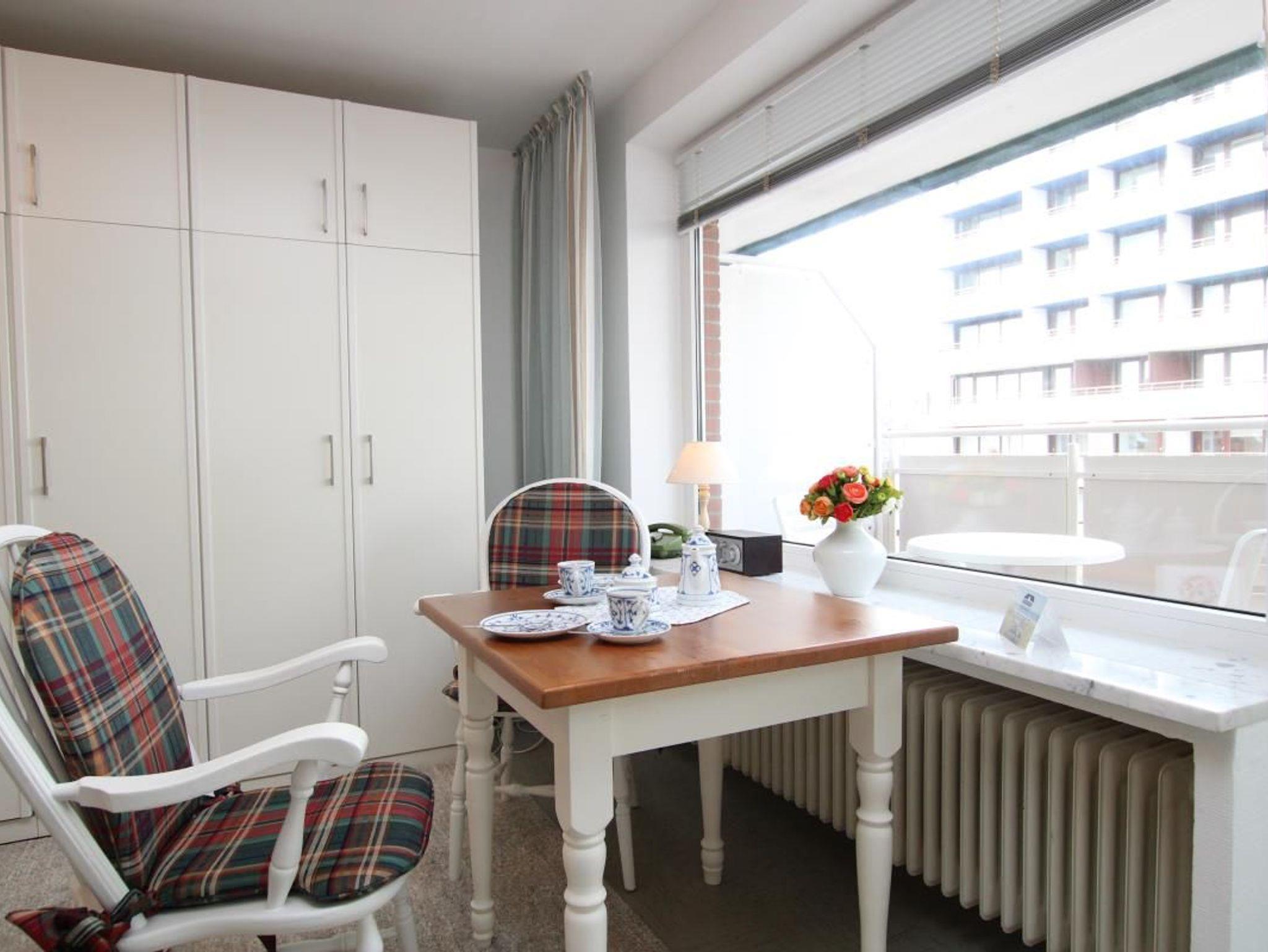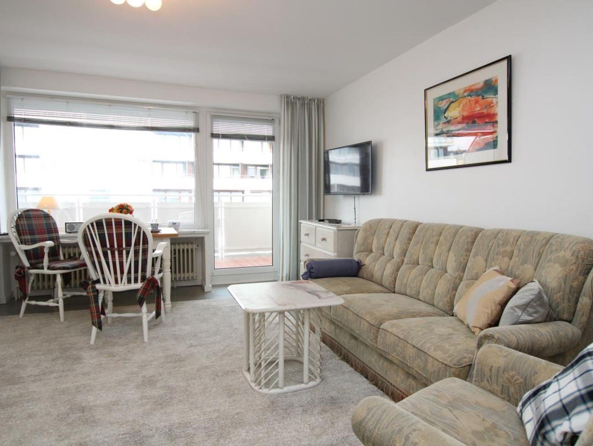 Das Appartementhaus steht gegenüber dem Kurzentrum in unmittelbarer Nähe der Fußgängerzone Friedrichstraße. Zum Strand sind es keine 100 m. Das Appartement befindet sich in der 4. Etage (Aufzug über einige Stufen zu erreichen) und hat einen Westbalkon.
