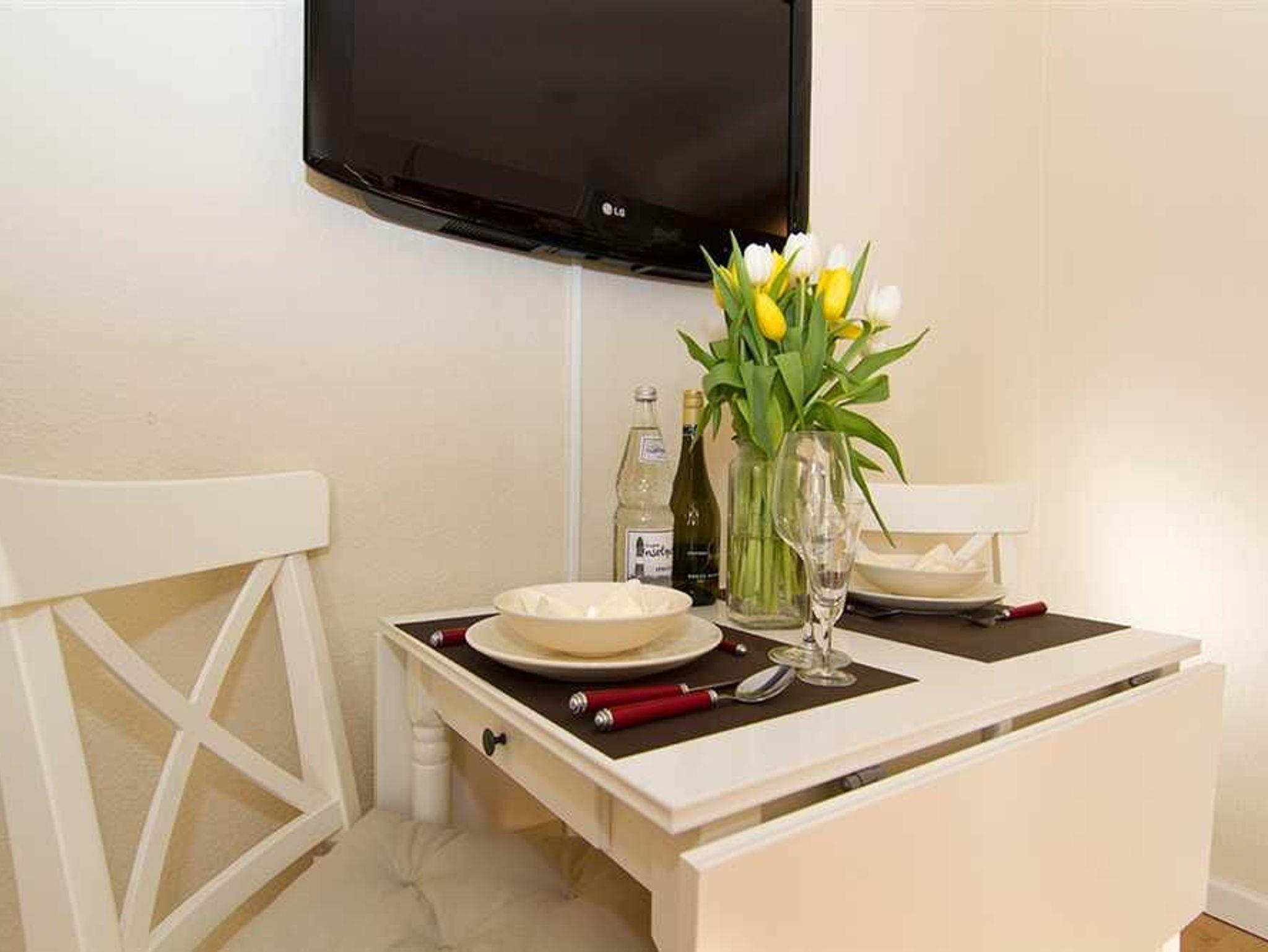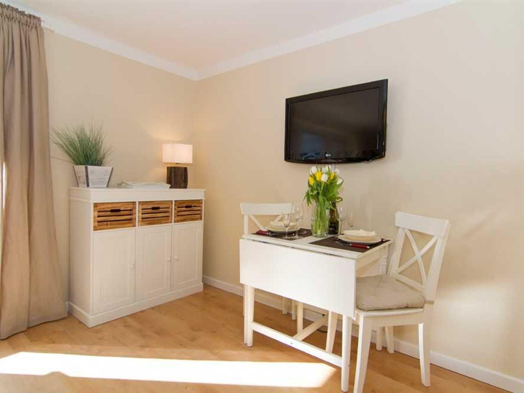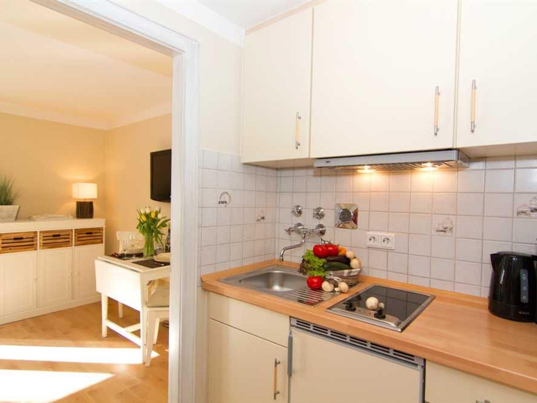 Das renovierte und sehr geschmackvoll eingerichtete 1-Raum Appartement befindet sich in Westerland auf Sylt im 2.OG. Das Appartement verfügt über einen kombinierten Wohn-/Schlafbereich mit einem sehr gemütlichen Doppelschrankbett, einer bequemen Couch und einem Esstisch für zwei Personen. Die separierte Küchenzeile ist mit einem Zwei-Platten Herd , einer Kaffeemaschine, einem Wasserkocher und einem Toaster ausgestattet. Das wunderschöne Badezimmer mit Dusche/WC wurde in 2023 aufwendig saniert und in eine Wellnessoase verwandelt. Der großzügige Balkon Richtung Westen verfügt über Balkonmöbel und lädt zum entspannen ein.