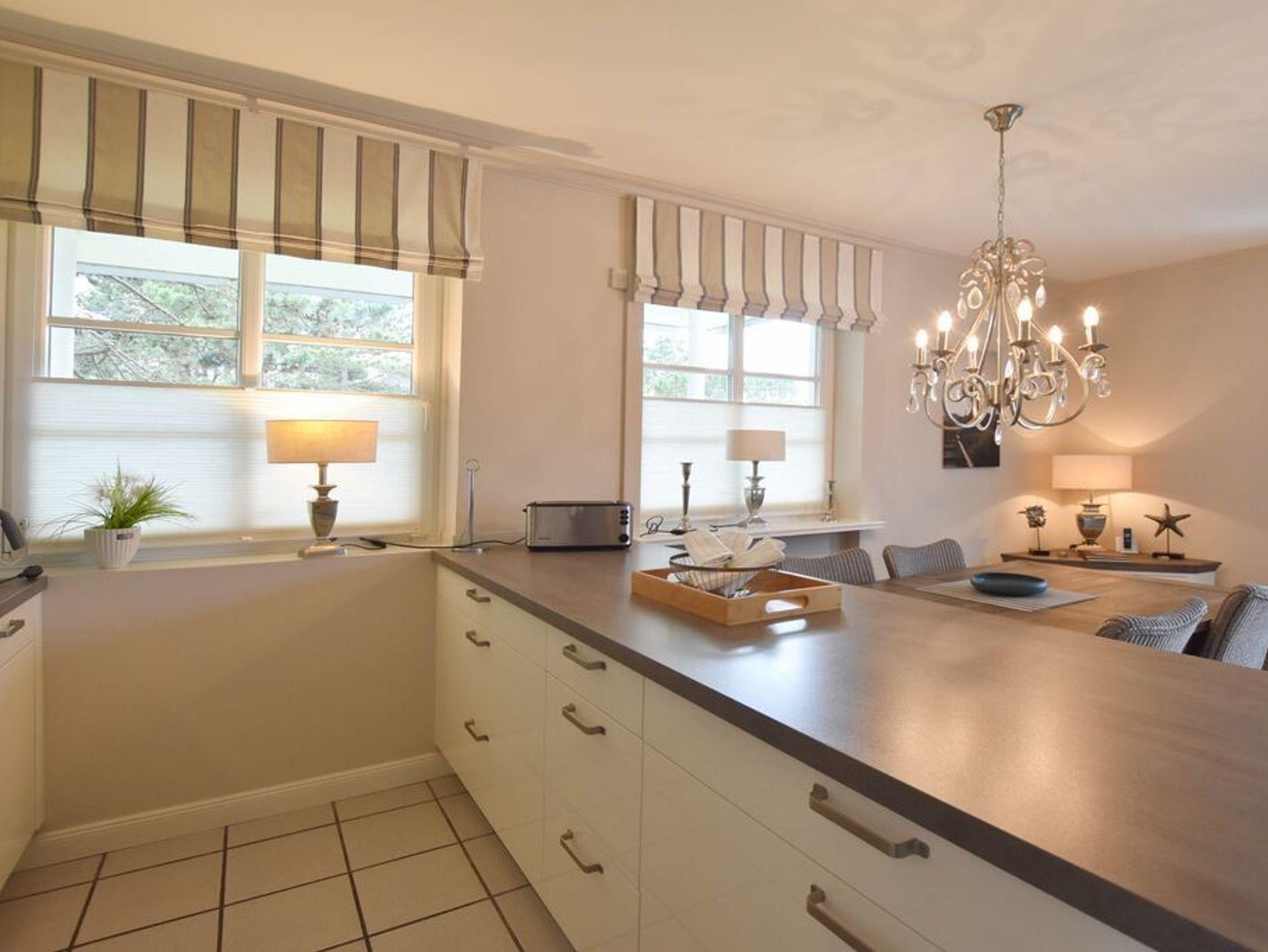 Große und moderne 3 Zimmer-Ferienwohnung, ( ca 100 qm EG/UG ) in einem Zweifamilienhaus, mit West-Terrasse auf eingewachsenem Gartengrundstück im Norden von Westerland, jedoch zentral gelegen. Die Friedrichstraße und auch der Strand sind in wenigen Minuten zu Fuß zu erreichen. Großer Wohnraum mit Essecke und Couchgarnitur mit Flatscreen TV, Stereoanlage, Telefon mit Flatrate ins deutsche Telefonnetz, W-LAN und direktem Terrassenzugang. Die Küche ist mit Spülmaschine, Cerankochfeld, Backofen, Mikrowelle und Kühlschrank ausgestattet.