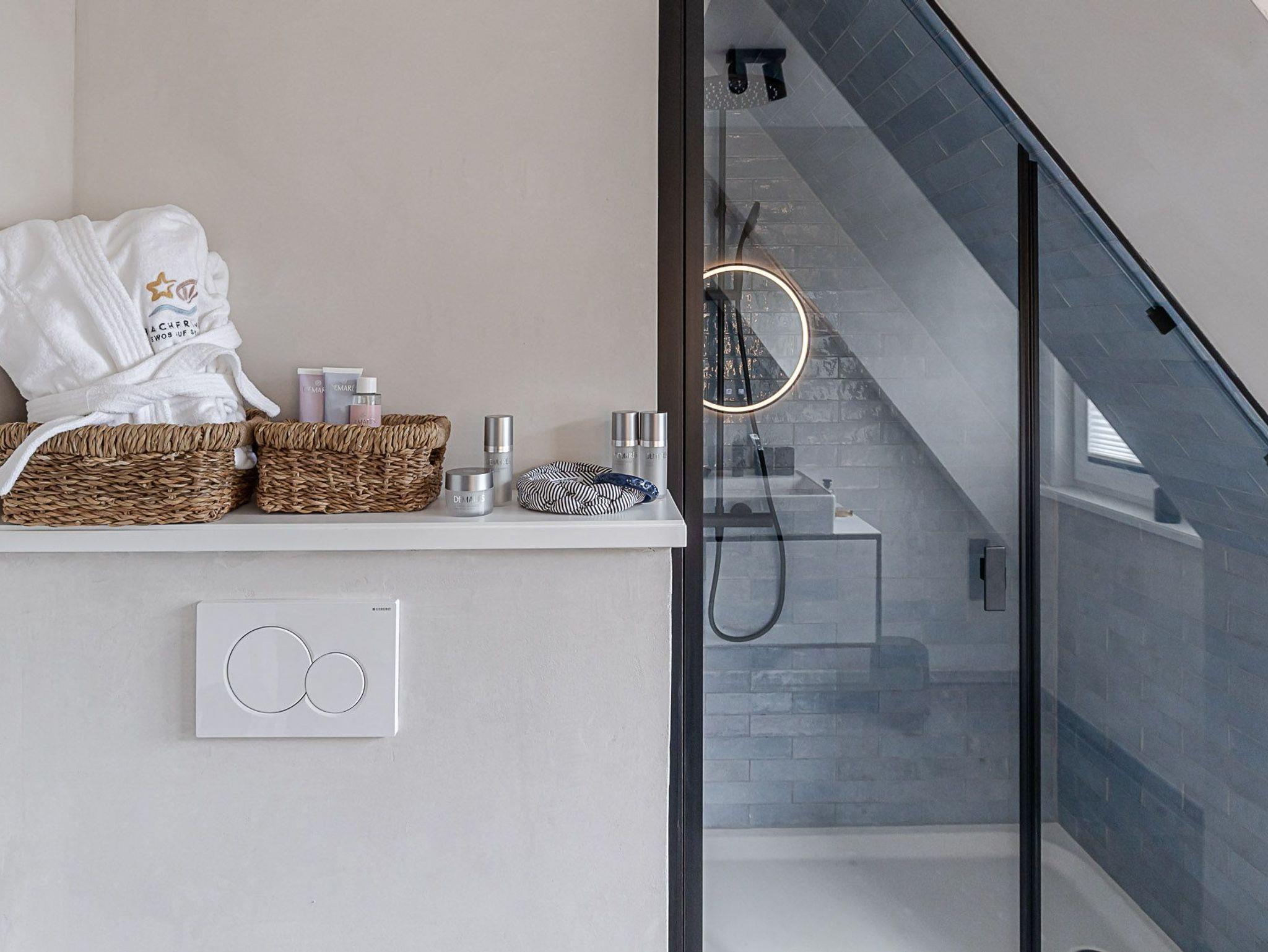 Meerblau und Sand - diese Farben rufen nahezu „Insel“ und darum haben wir sie für Ihr Bad gewählt. Ein Highlight in Ihrer kleinen Wellnessoase ist die erfrischende Regendusche, deren wohltuende Wirkung man ganz schnell nicht mehr missen möchte. Die Fußbodenheizung und der Handtuchwärmer sorgen an etwas kühleren Tagen dafür, dass Sie stets auf Wohlfühl - Temperatur bleiben.