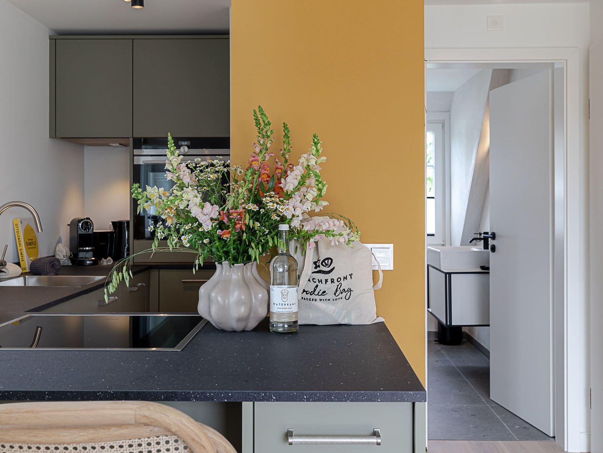 Ihre Küche, mit einer Ausstattung von Top-Markenherstellern, wie z.B. Miele, lässt dank Komfort und Funktionalität keine Wünsche offen. Alles, was Sie an Equipment benötigen, werden Sie hier vorfinden. Nur Einkaufen müssen Sie noch selbst, zum Beispiel im Supermarkt oder im Weinhandel, beides liegt nur 5 Gehminuten entfernt.