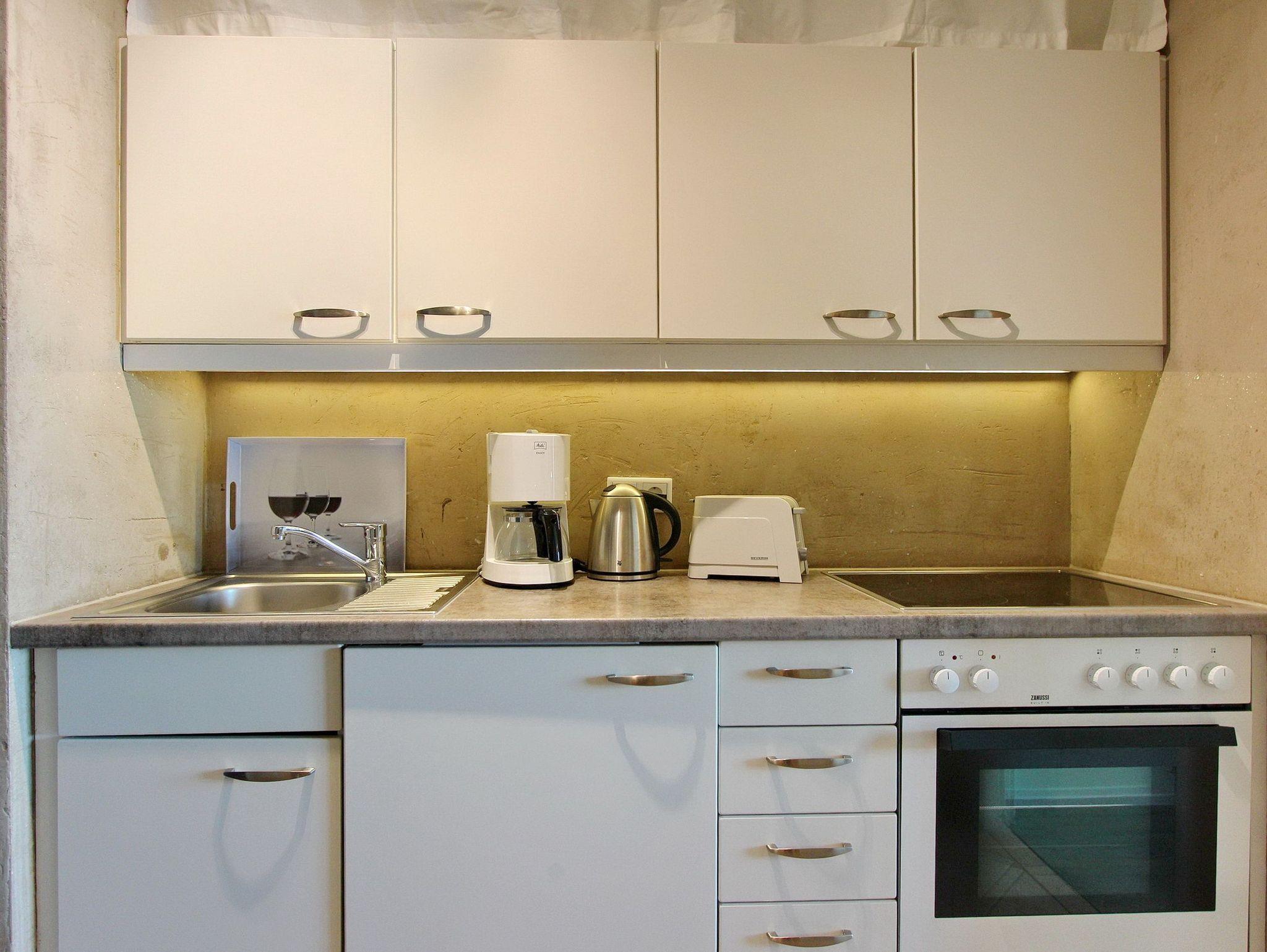Einen tollen Meeresblick haben Sie aus dieser Einzimmerwohnung in der 8. Etage des Haus Metropol. Der kombinierte Wohn-/Schlafraum mit vorgelagertem Westbalkon (Balkonmöbel mit Kissen sind vorhanden) verfügt über Einzelschrankbetten und einen Essplatz mit 2 Stühlen, der direkt am Fenster steht. In der Wohnung wurde Laminatfußboden verlegt und es gibt eine Couch und einen Sessel. Das Badezimmer hat eine Dusche, Handtuchtrockner und einen Hocker. In der Einbauküche im Flur mit Cerankochfeld und Backofen können sie sich selbst verpflegen. Zur technischen Ausstattung gehört: ein Flachbildfernseher und ein CD Player. Das freie WLAN Netzwerk (WEG Haus Metropol - Passwortfrei - ohne Gewähr) steht ihnen kostenfrei zur Verfügung. Die Wohnungsgröße dieser Nichtraucherwohnung beträgt: ca. 34 m².