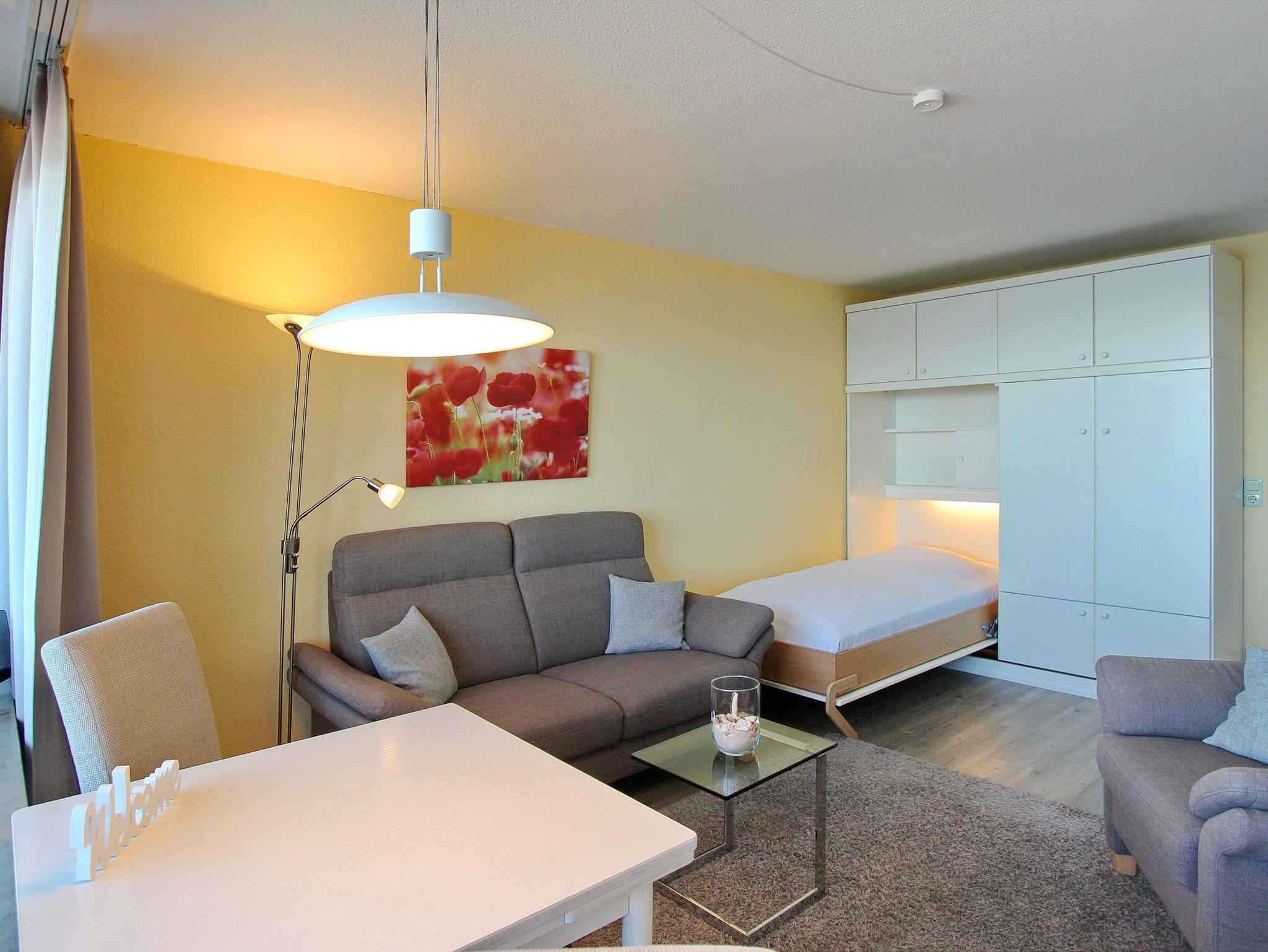 Charmante Einzimmerwohnung mit Westbalkon und herrlichem Meerblick in der 8. Etage des Haus Metropol auf Sylt.