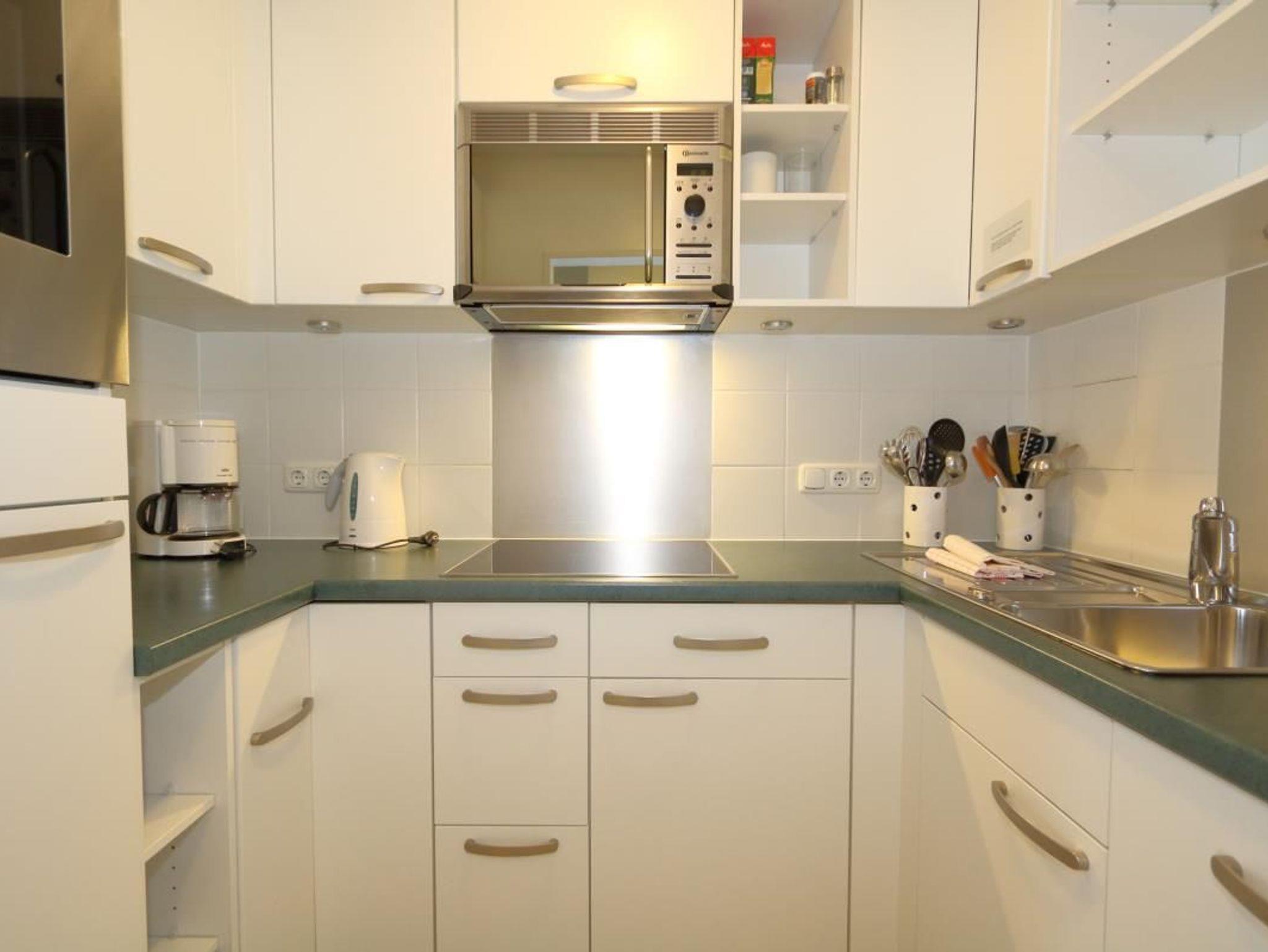 Spülmaschine, gängige Küchenutensilien, Herd, Backofen, Dunstabzugshaube, Wasserkocher, Filterkaffeemaschine, Toaster, Kühlschrank usw