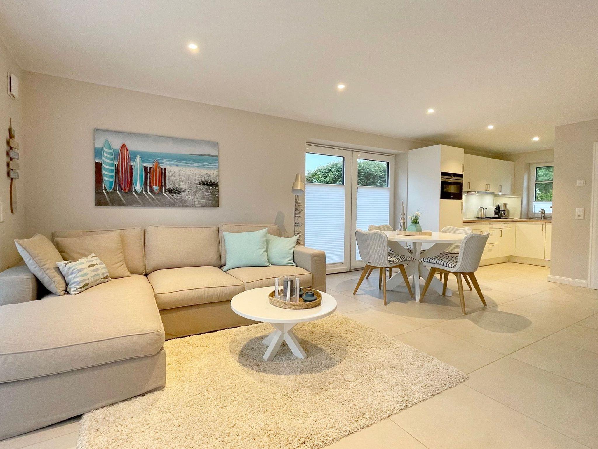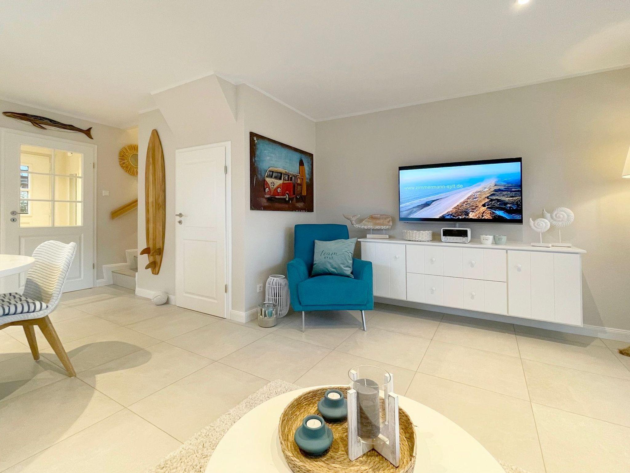 Exklusives Reihenendhaus in ruhiger Lage an der Ortgrenze zu Westerland. Das Ferienhaus wurde 2022 fertig gestellt und wurde im modernen Beach-House Style eingerichtet. Tischlerarbeiten in den Schlafzimmern und weitere Einrichtungsdetails runden das positive Gesamtbild ab.