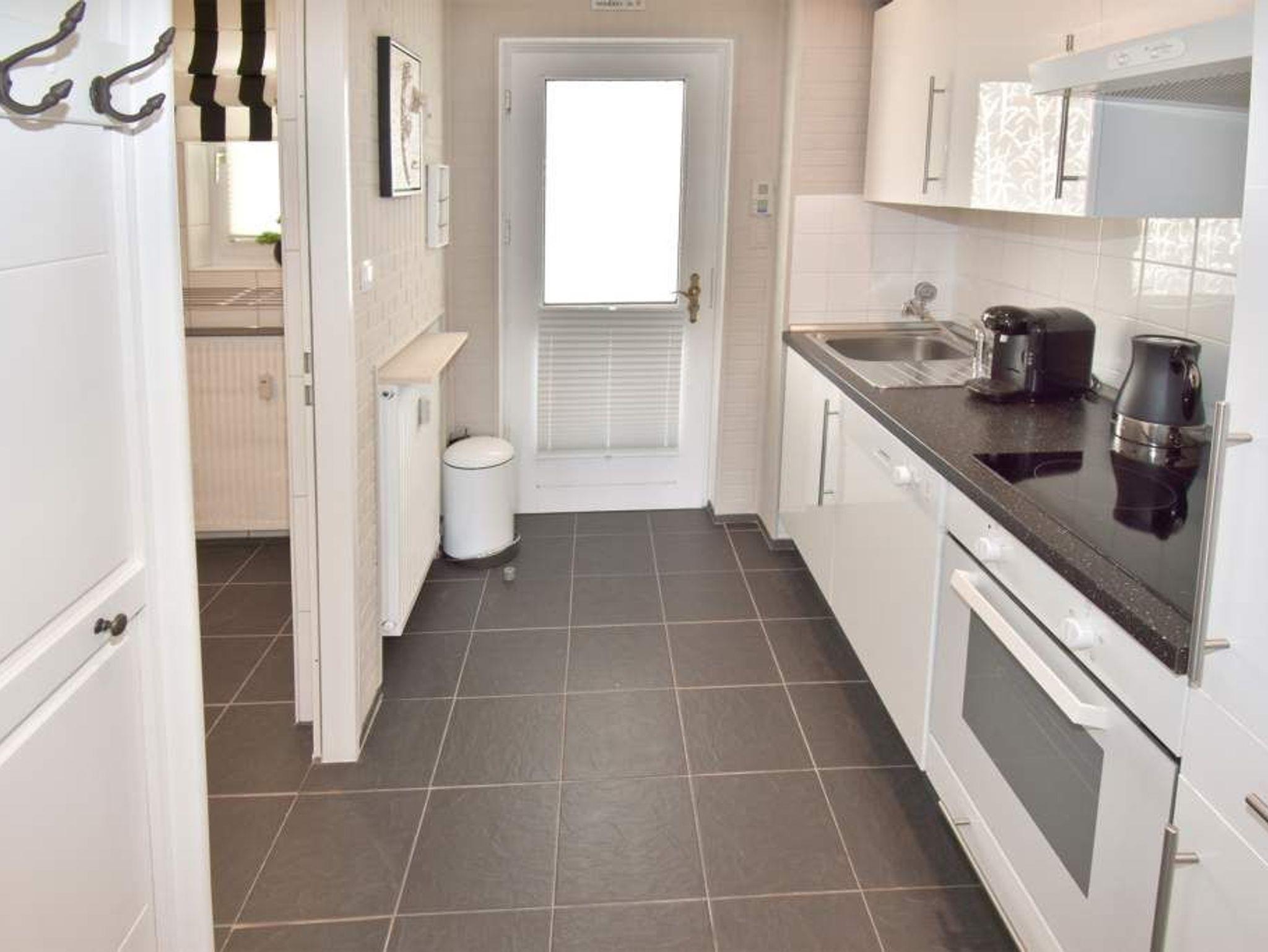 Die neue, gut ausgestattete Küchenzeile hat einen Geschirrspüler, ein 4-Platten-Ceranfeld mit Backofen und einen Kühlschrank mit 3-Sterne-Gefrierfach.