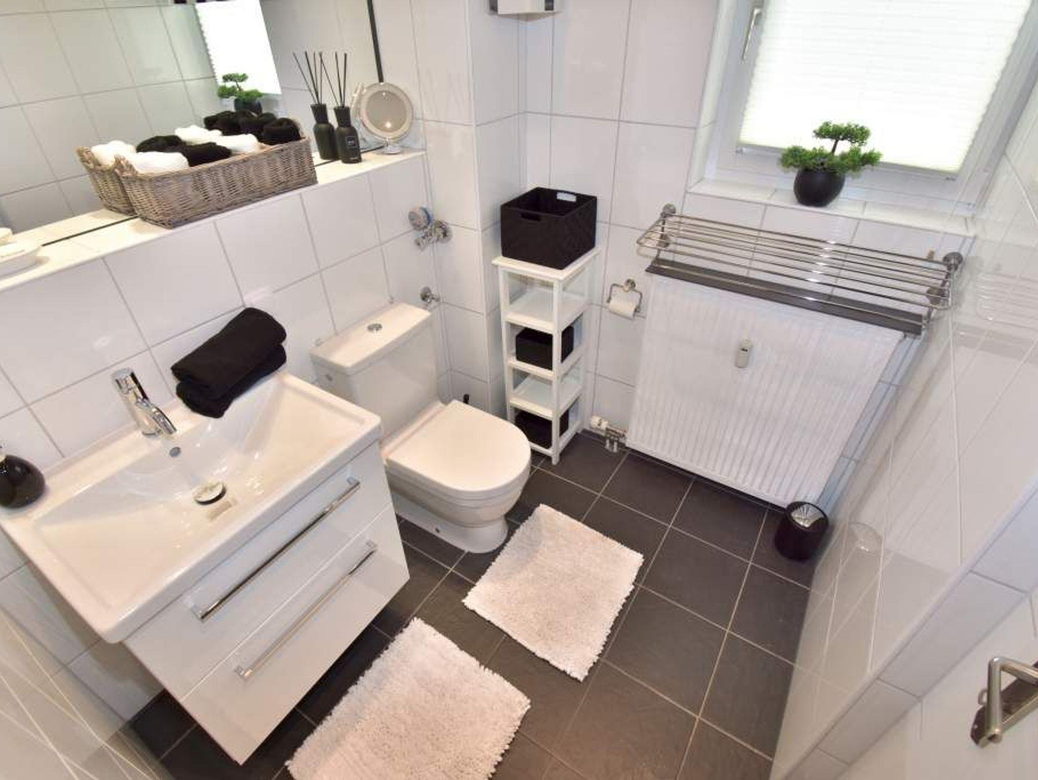 Das moderne und neue Duschbad/WC mit Fenster ist perfekt für einen Start in einen entspannten Urlaubstag.