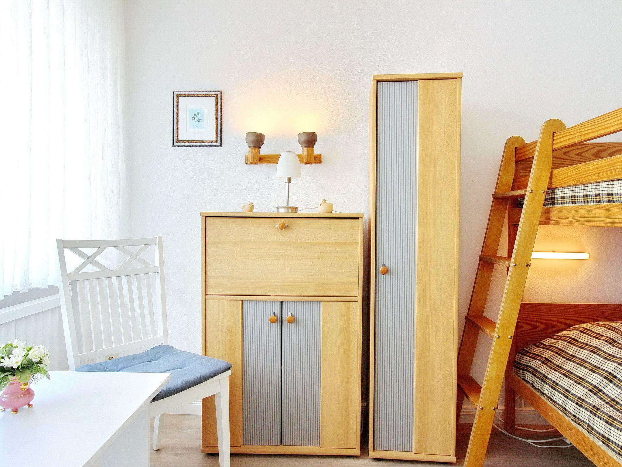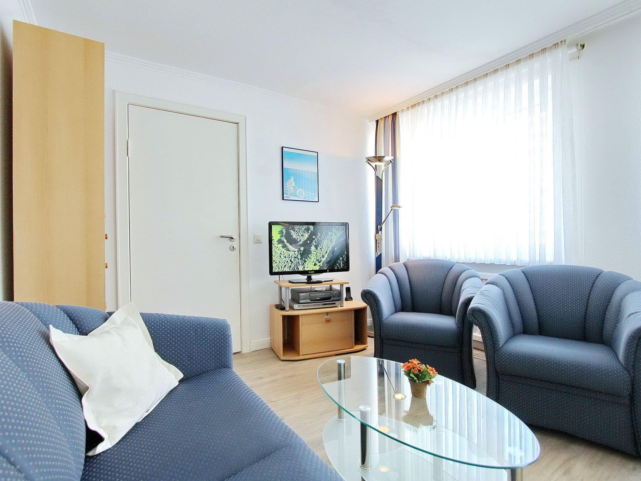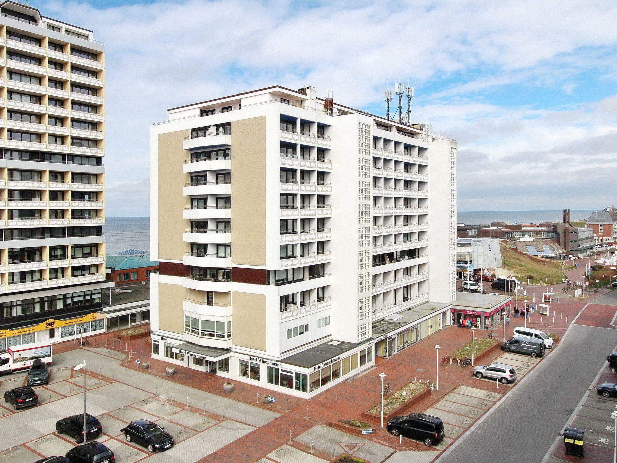 Gepflegte 2 1/2-Zimmer-Wohnung mit einem kleinen Blick auf die See (siehe Bilder) im Herzen von Westerland - sie befindet sich in der 6. Etage zur Westseite in einem mehrstöckigen Appartementhaus in unmittelbarer Nähre des Hauptstrandes und des Stadtzentrums. Der Wohnraum ist mit einer Couchgarnitur und 2 Sesseln und einem Essplatz mit 4 Stühlen ausgestattet. Im großen Schlafraum finden Sie ein großzügiges Doppelbett und im 2. Schlafraum ein Etagenbett vor. Badezimmer mit Dusche/WC, Waschtisch und Handtuchheizkörper. In der separaten Küche nutzen Sie ein Ceran-Kochfeld, einen Backofen, eine Mikrowelle, einen Geschirrspüler und ein Kühlschrank mit Gefrierfach. Ein Hotspot im Haus ermöglicht Ihnen einen kabellosen und kostenfreien Zugang zum Internet (WEG-AD3 - Passwortfrei - ohne Gewähr). Nichtraucherwohnung. Haustiere nicht gestattet. Wohnungsgröße ca. 45 m².