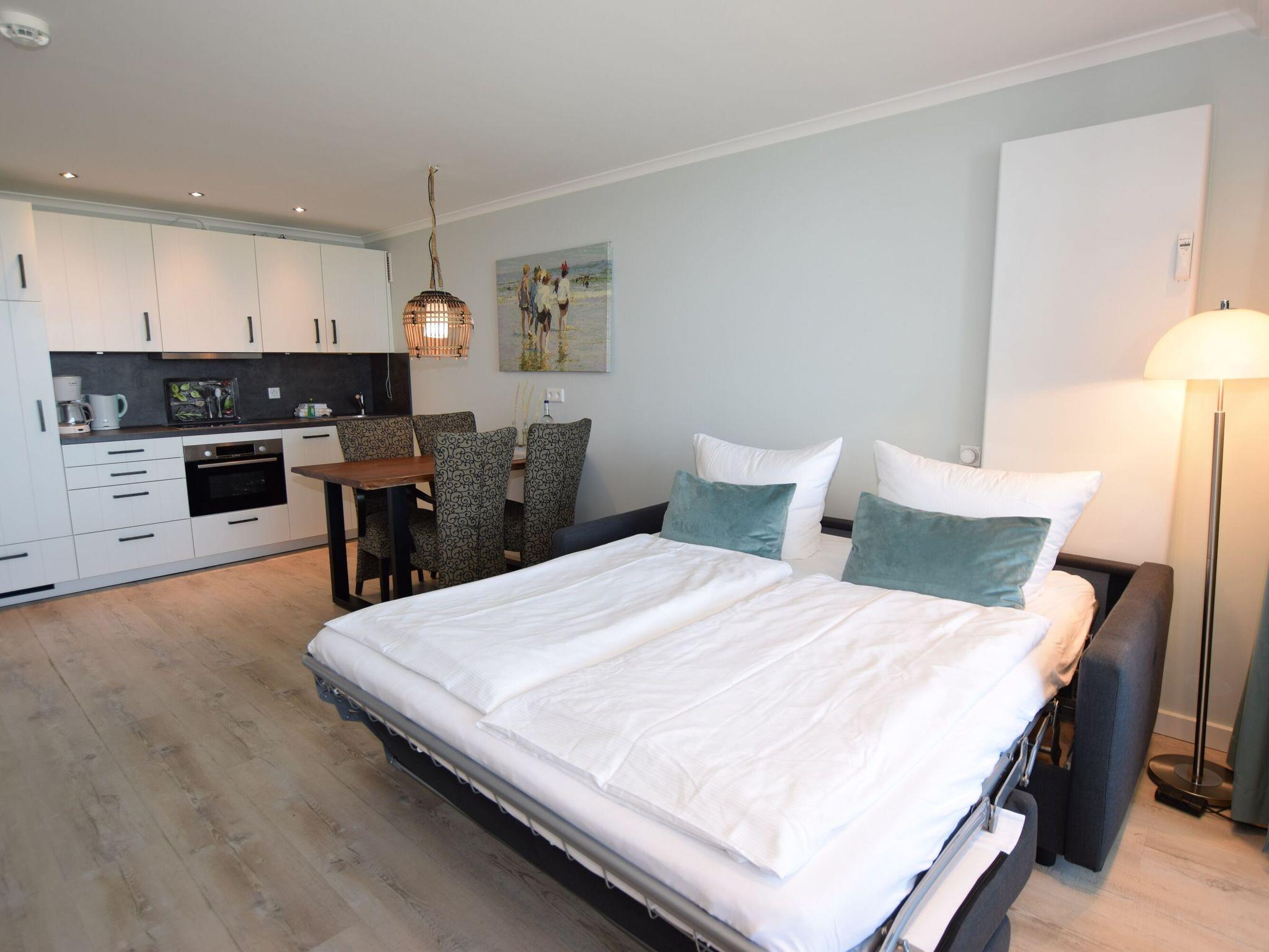 Moderne 2-Zimmer-Ferienwohnung im Strandhausstil mit traumhaftem Meerblick und Westloggia auf Sylt.