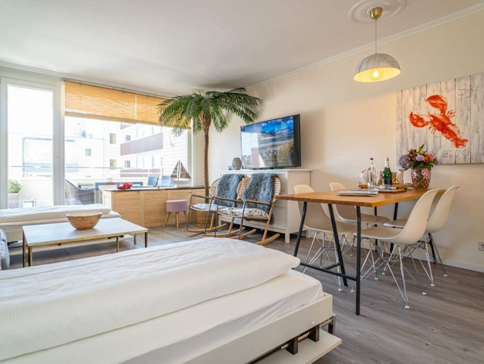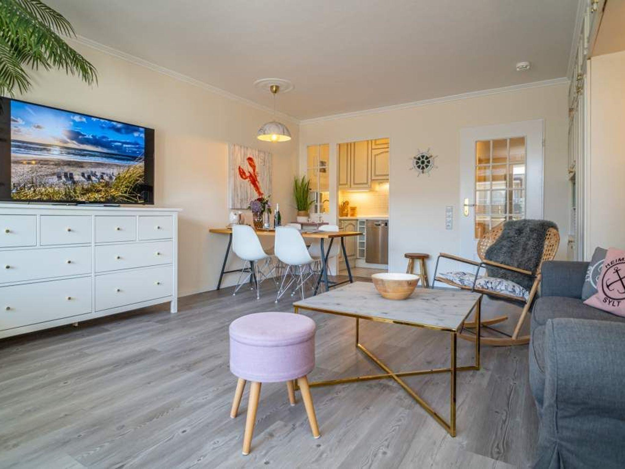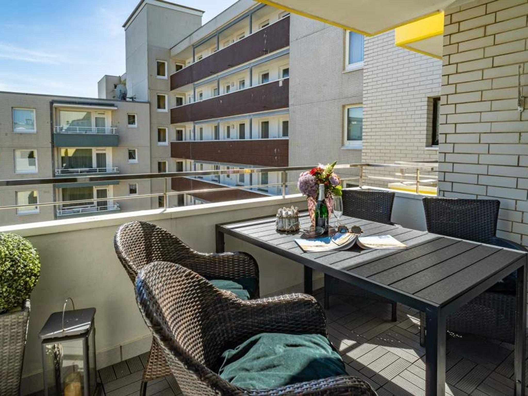 Moderne 2-Zimmer-Ferienwohnung mit Südbalkon in Westerland auf Sylt, ideal für Familien und Strandnähe.