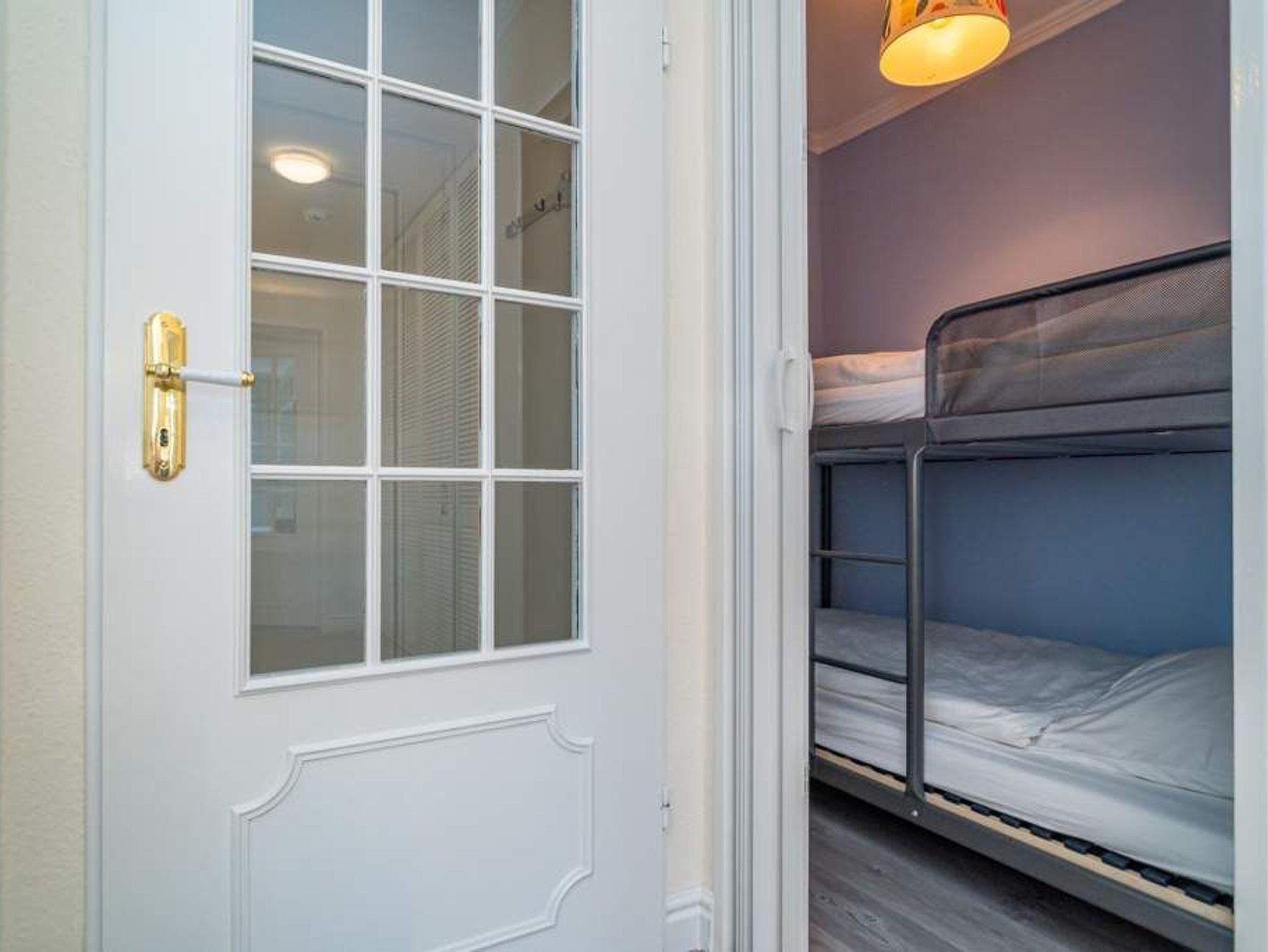In der Schlafnische (mit Glasschiebetür von der Diele getrennt) befindet sich ein Etagenbett (je 0,90 m x 2,00 m).