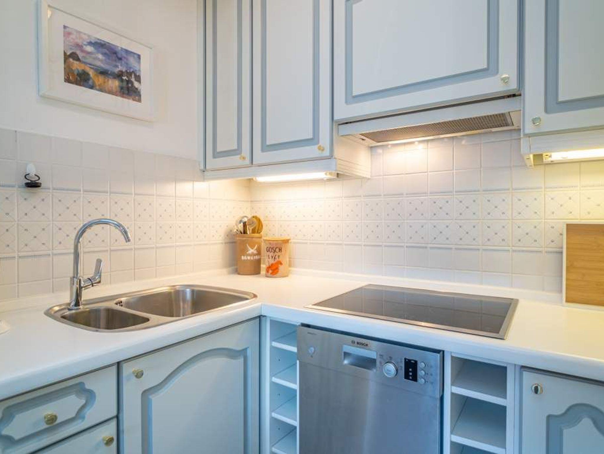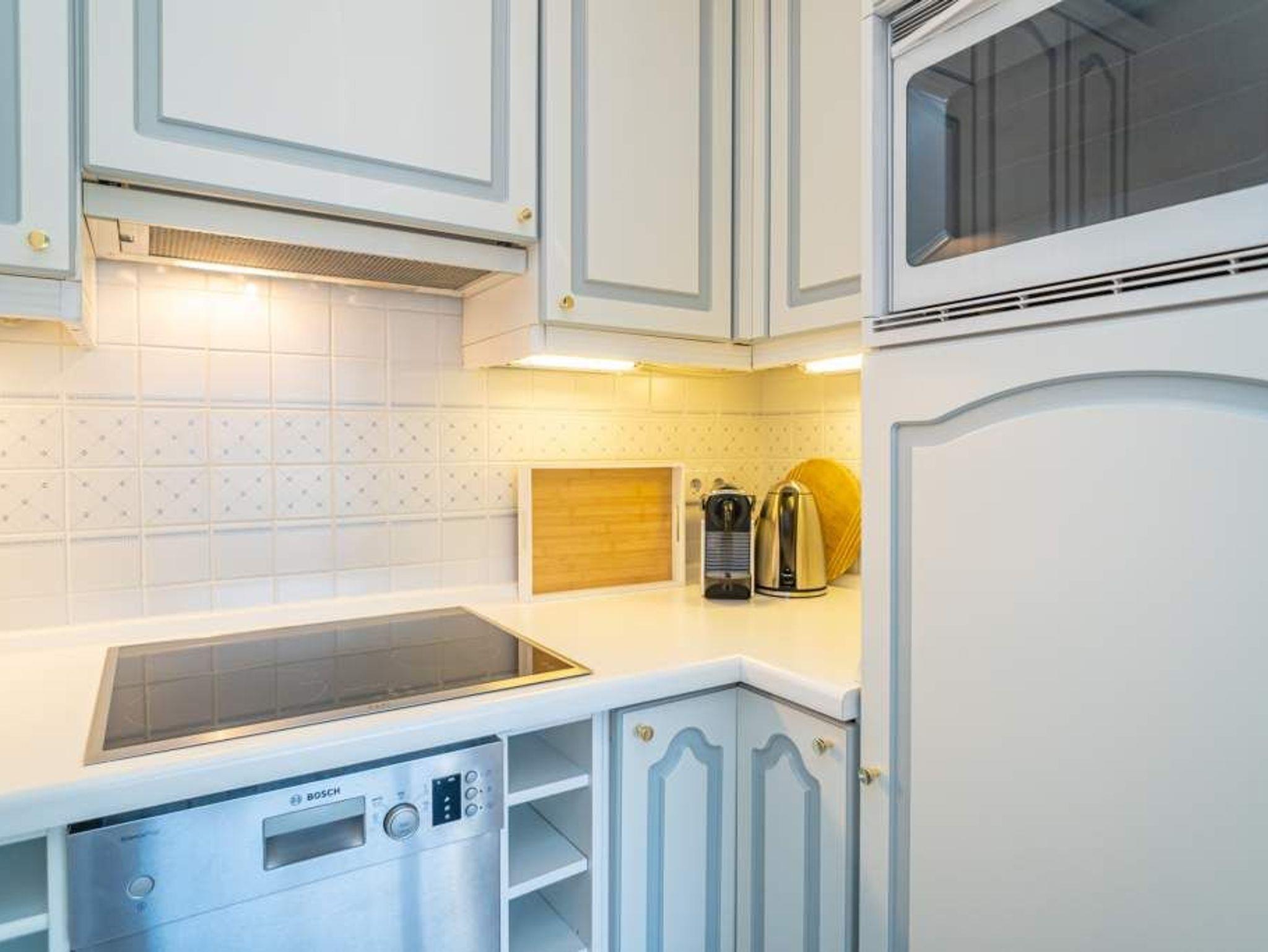 Die offene Küche hat einen Geschirrspüler, einen Induktionsherd, eine Mikrowelle/Backofen-Kombination, einen Kühlschrank, eine Nepresso-Maschine, sowie ein Handfilter aus Porzellan für Filterkaffee. Wasserkocher, Soda-Stream und Toaster gehören zur Grundausstattung. Selbst für die Kleinen ist Kindergeschirr und 2 TrippTrapp Kinderstühle sind vorhanden.