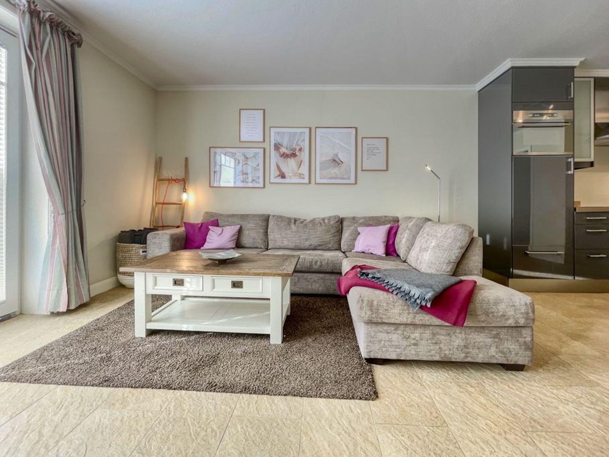 Moderne 3-Zimmer-Ferienwohnung mit Meerblick und Strandkorb direkt am Strandübergang in Westerland auf Sylt.