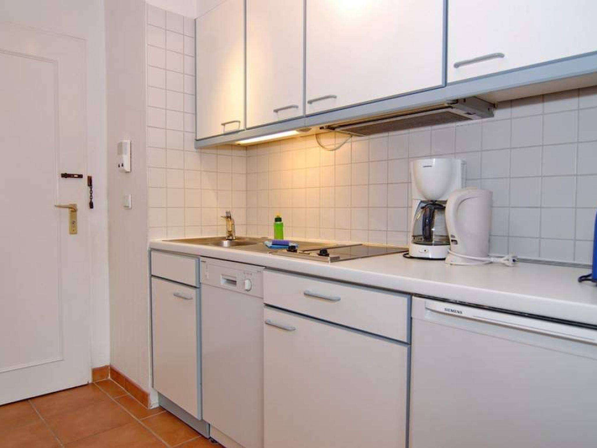 1-Zimmer-Ferienwohnung, 1. OG, ca. 30 m², Landseite im Haus Metropol. Nichtraucher-Wohnung! Wohn-/Schlafraum mit Einzelschrankbetten (2x 85x200 cm) und Couch, Essplatz am Fenster mit 2 Rattanstühlen, Radio, Kabel-TV W-Lan (ohne Gewähr), Ostbalkon, Küchenzeile im Flur mit Geschirrspüler, Duschbad/WC. Appartement ist komplett gefliest. Tierhaltung nicht gestattet. Bettwäsche und Handtücher sind zur Anreise aufgezogen. Ein PKW-Stellplatz kann kostenpflichtig zugebucht werden.