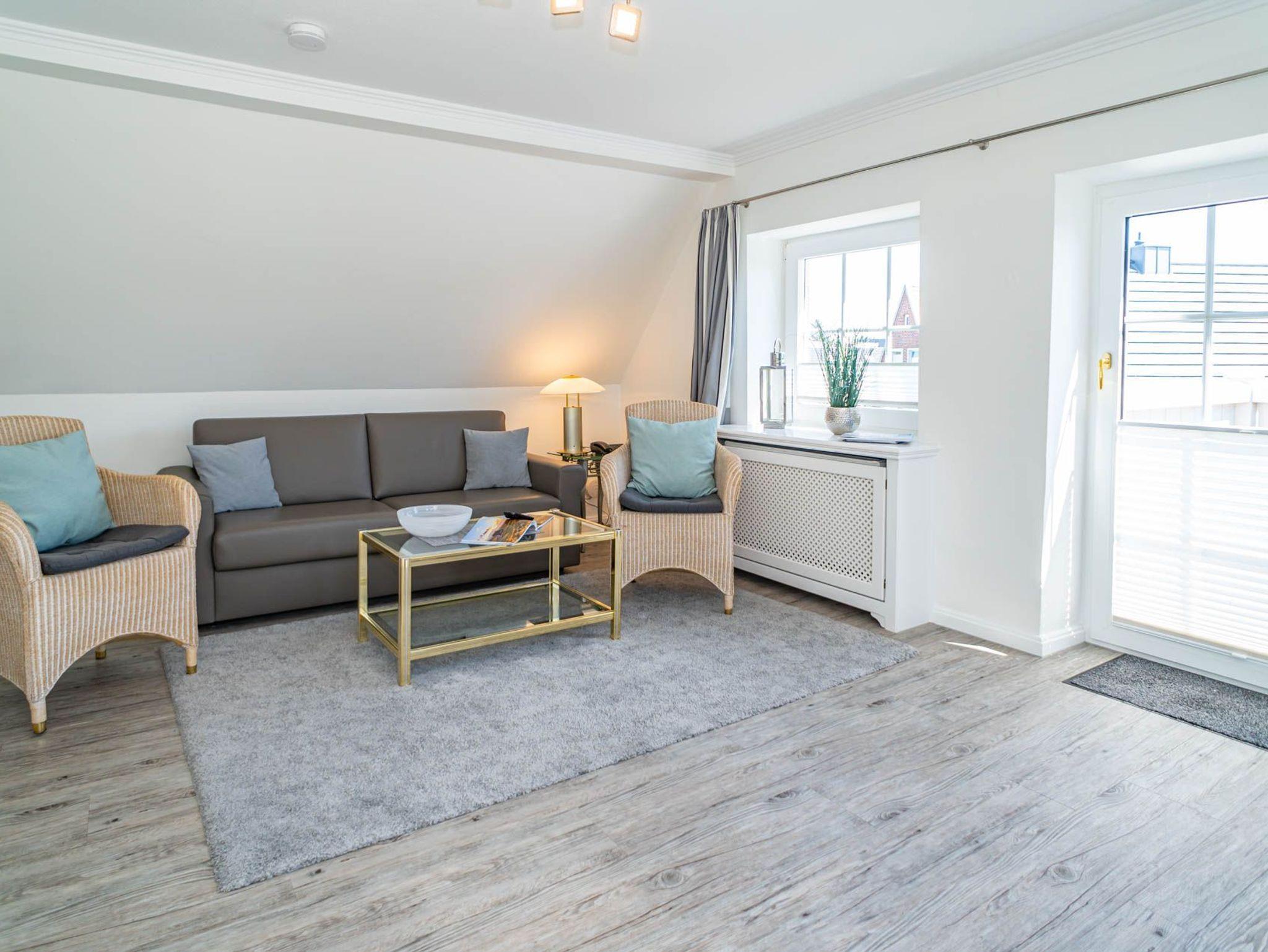 Geschmackvolle 2-Zimmer-Ferienwohnung mit Südbalkon und Strandkorb in ruhiger Lage auf Sylt.