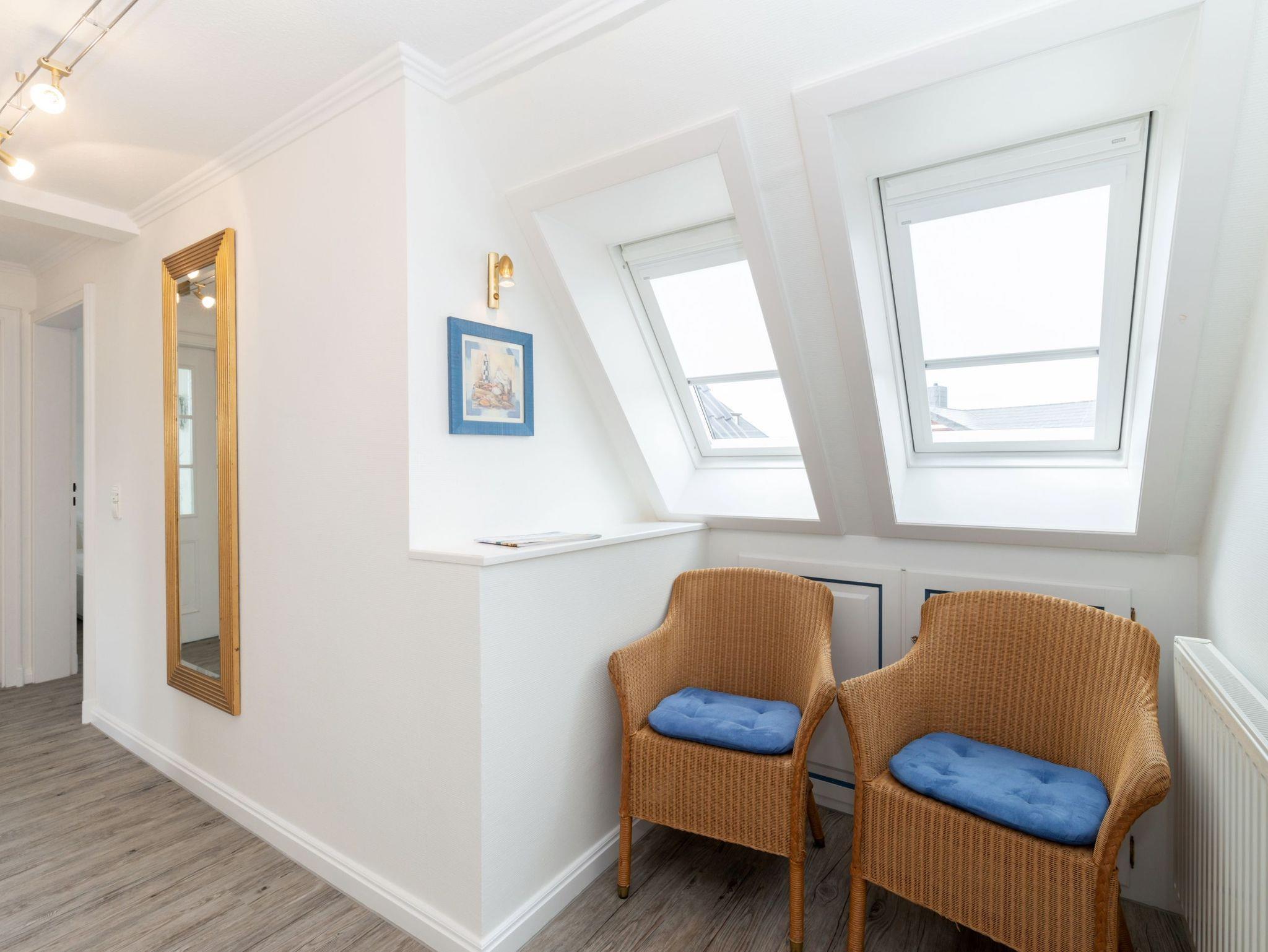 Geschmackvoll eingerichtete 2-Zimmer-Nichtraucher-Ferienwohnung (ca. 50 qm) in der 1. Etage mit Südbalkon (Strandkorb und Balkonmöbel) für max. 3 Personen.