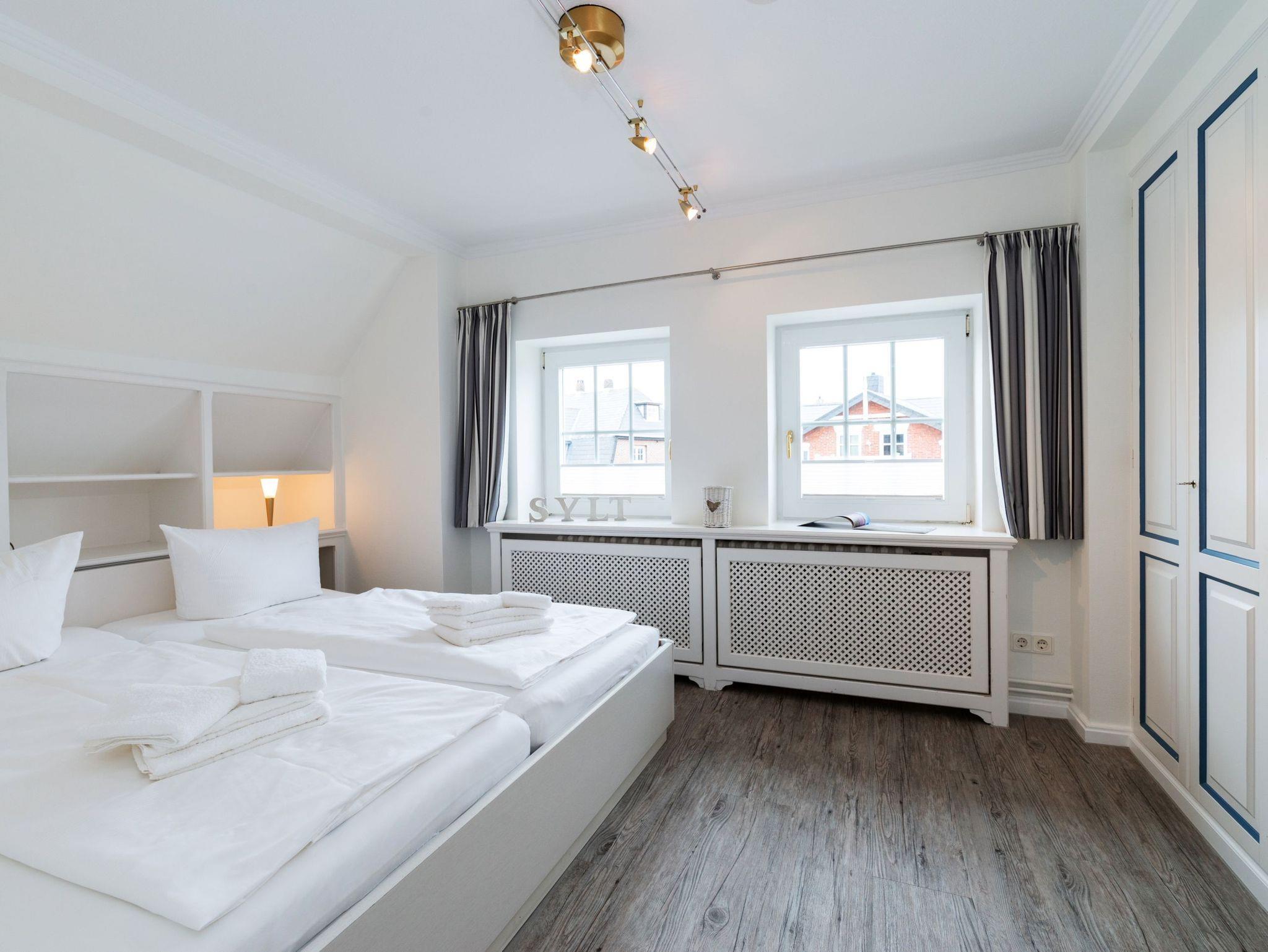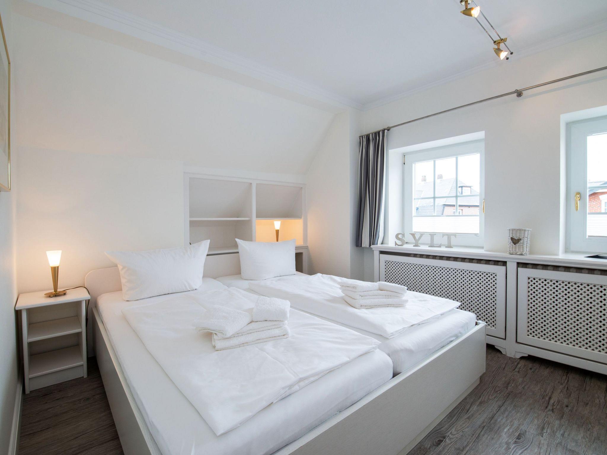 Das Schlafzimmer ist mit einem Doppelbett (mit Einzelmatratzen 0,90 x 2,00 m) ausgestattet.
