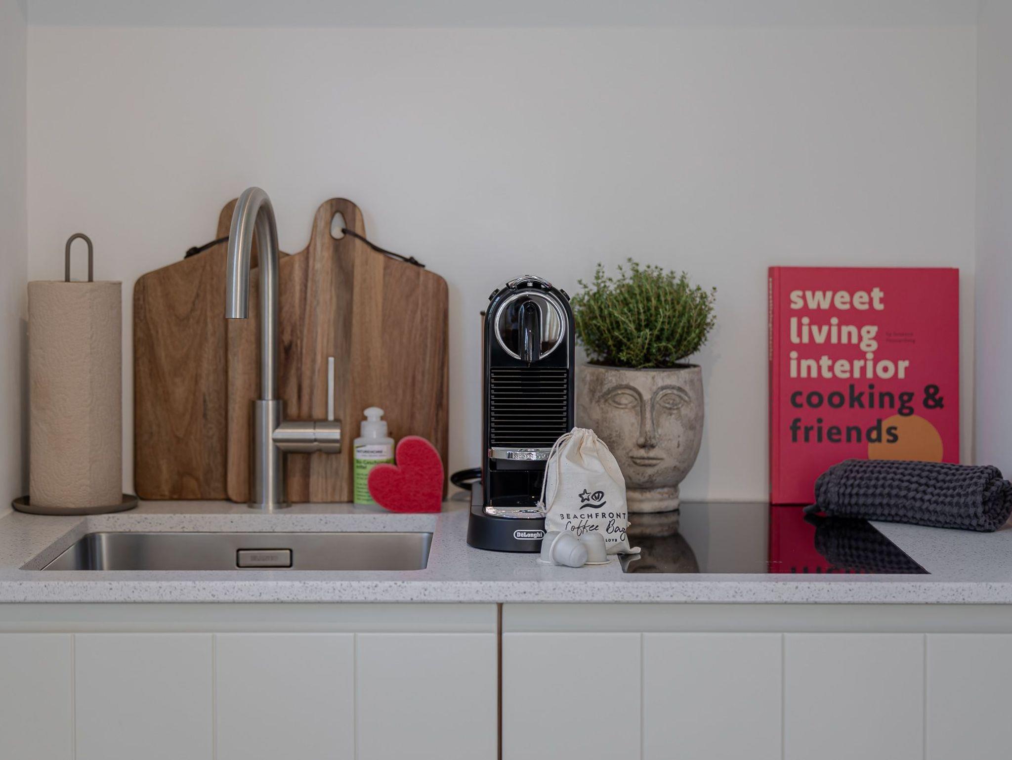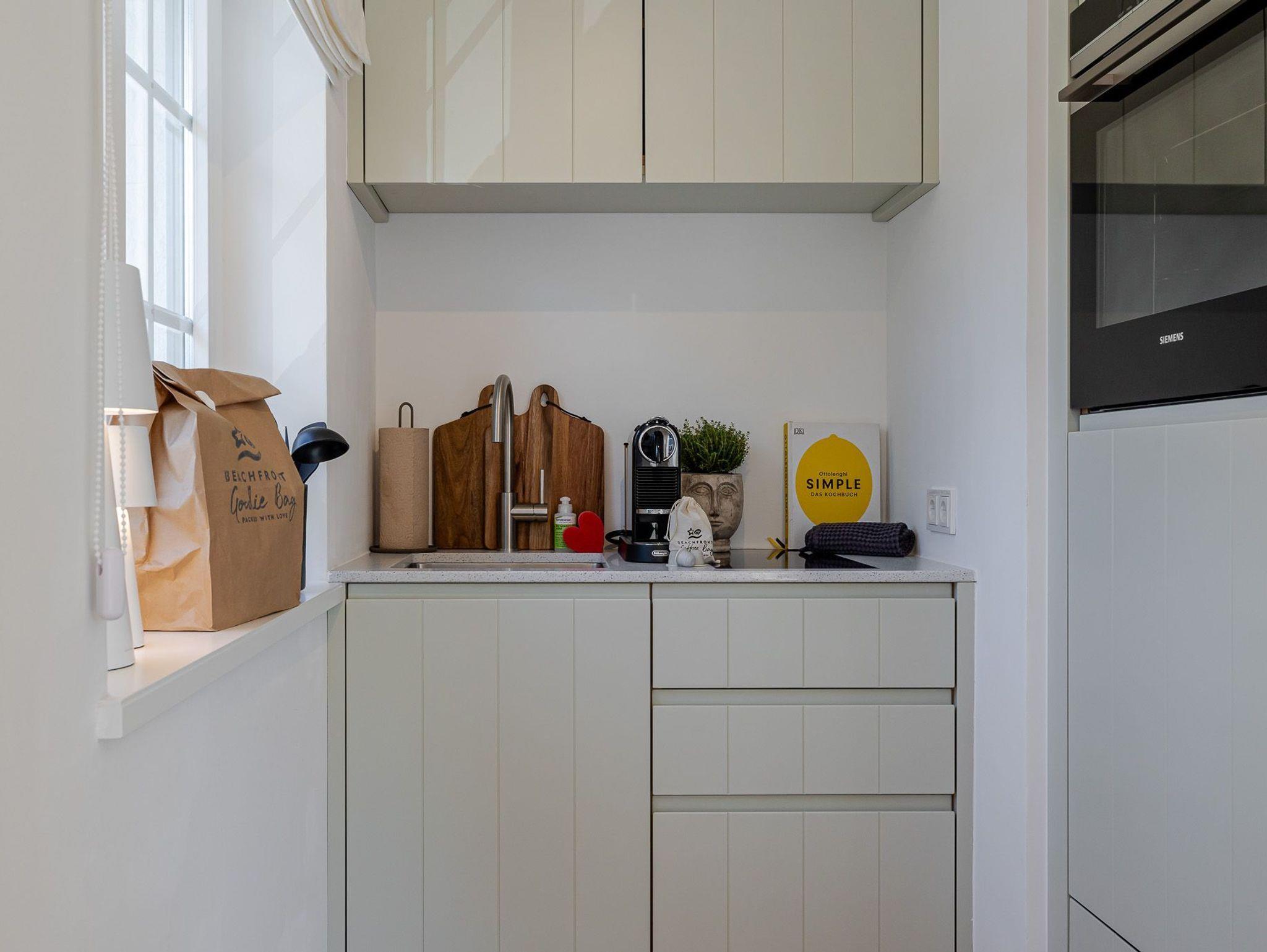 Klein, aber oho! Die exklusiv eingerichtete Küche entpuppt sich als ein vollwertiges Kochparadies dank jeder Menge nützlichem Equipment und Geräten von Top-Markenherstellern, wie z.B. Miele.