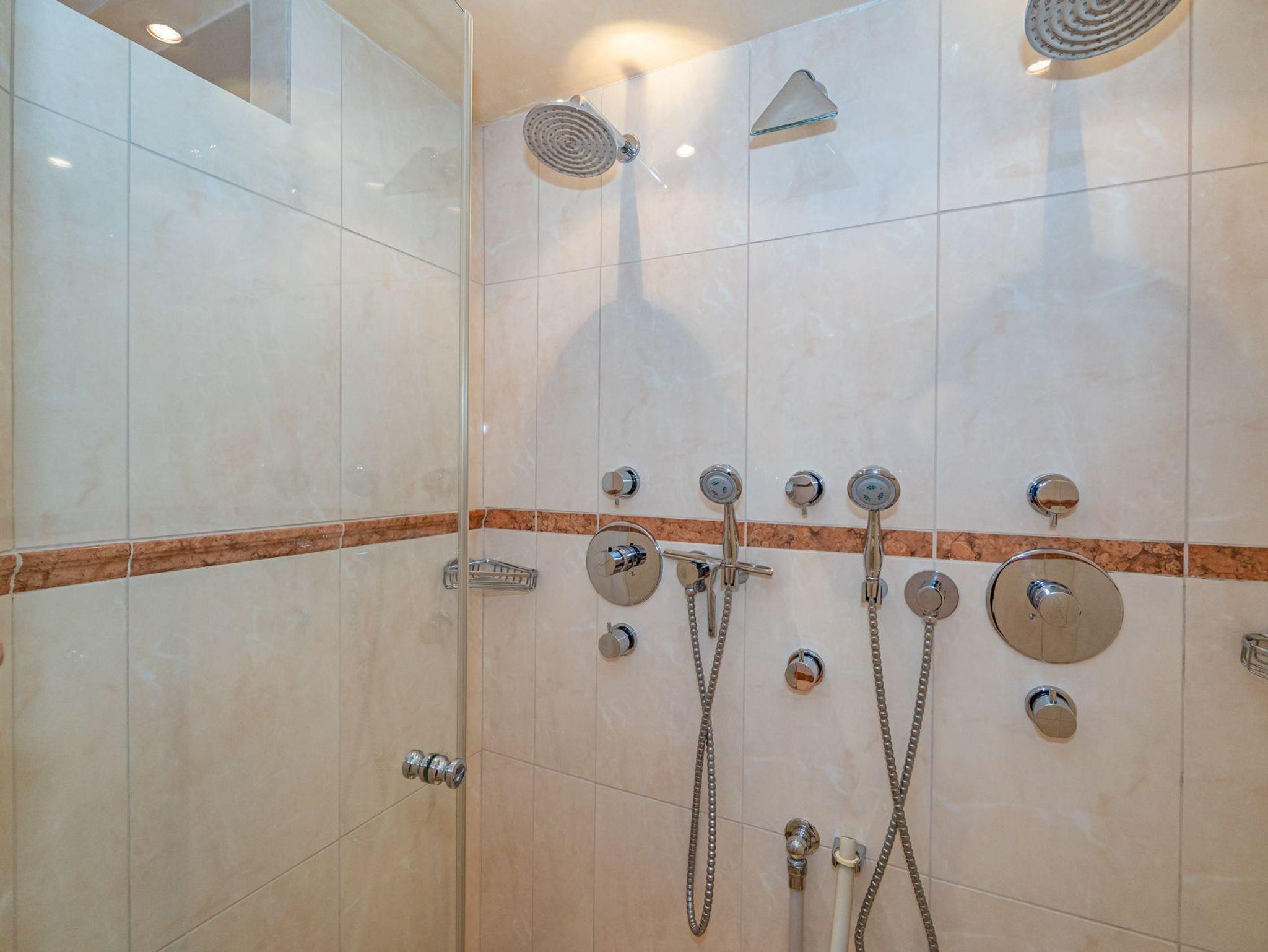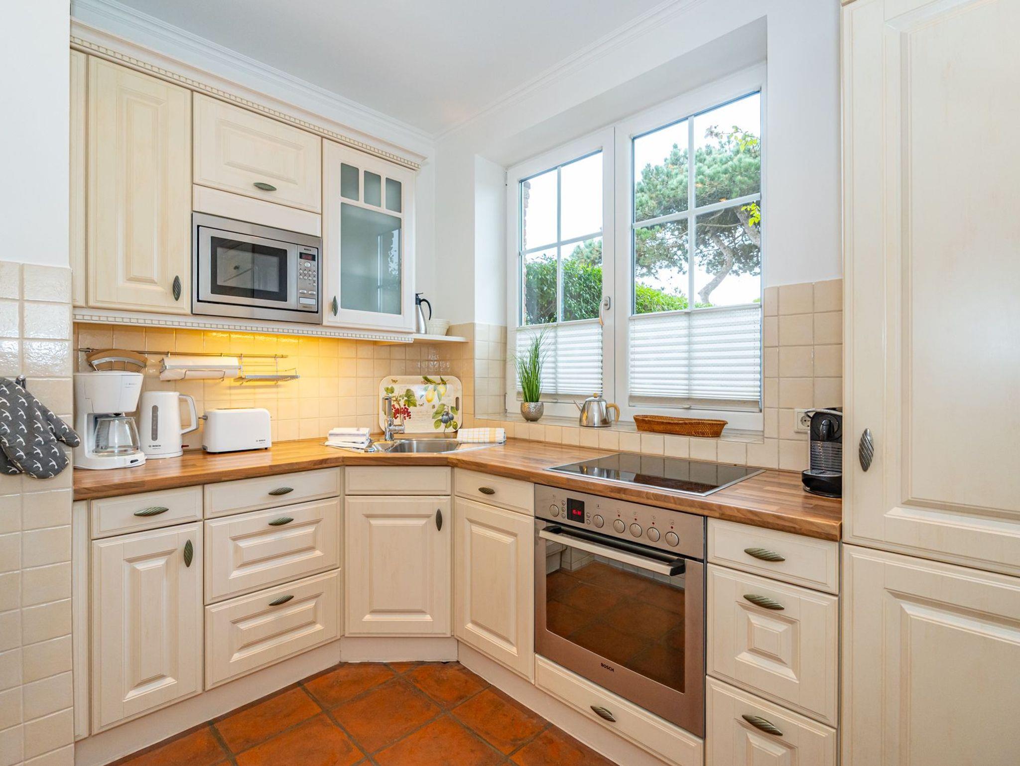 Die separate Komfortküche ist mit allen Annehmlichkeiten ausgestattet. Sie verfügt über einen Geschirrspüler, eine Mikrowelle, einen amerikanischen Kühlschrank mit Tiefkühlfach, ein 4-Platten-Cerankochfeld, einen Backofen sowie eine Nespresso-Maschine. Eine Filter-Kaffeemaschine, ein Wasserkocher, ein Toaster und ein Eierkocher ergänzen die Küchenausstattung.
