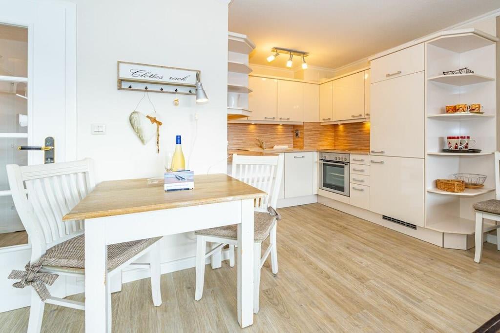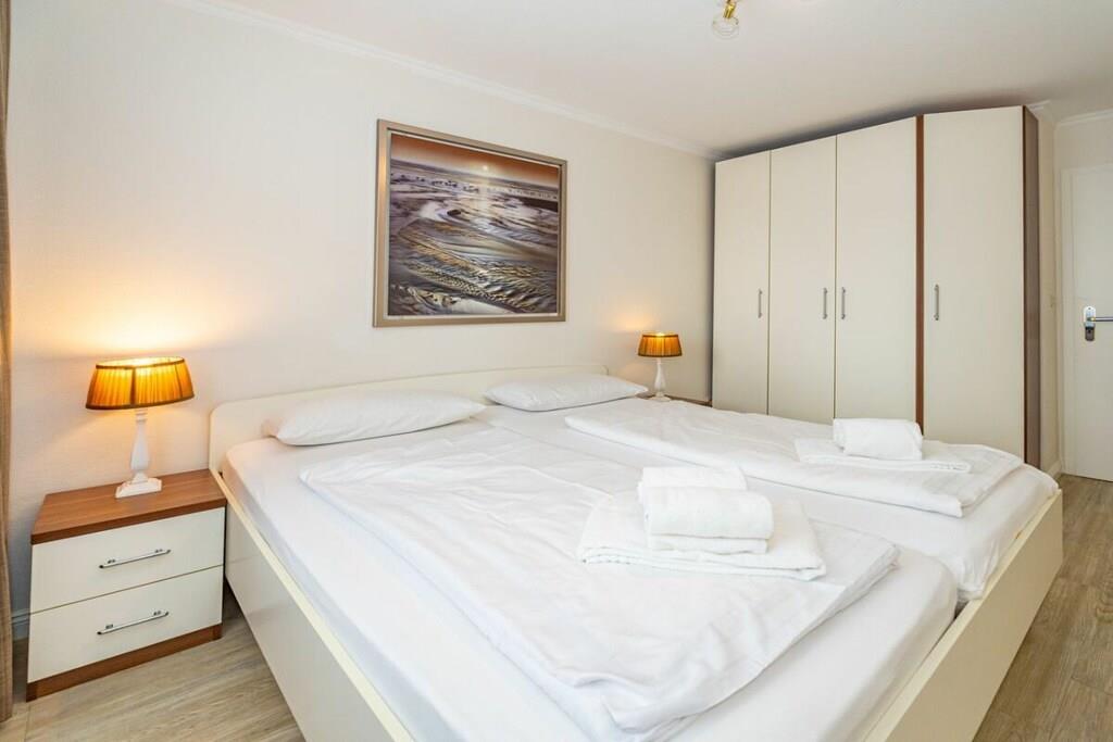 Appartement 19 Haus Dünenburg für max. 2 Personen Dieses neu renovierte 2-Zimmer-Appartement befindet sich in der 2. Etage mit Balkon zur Südseite Küche Einbauküche Geschirrspüler 4-Platten-Cerankochfeld Backofen Wohn- / Esszimer Kabel-TV Panasonic Stereo-Radio System inkl. Bluetooth und iPhone Docking Station WLAN und Telefonflat ins dt. Festnetz inklusive (keine Gewähr) Balkon Schlafzimmer Duschbad Kfz.-Stellplatz am Haus Hinweis: Bitte achten Sie bei kürzeren Buchungszeiträumen bei Ihrer Anfrage bitte auf Anschlussbuchungen im Kalender.