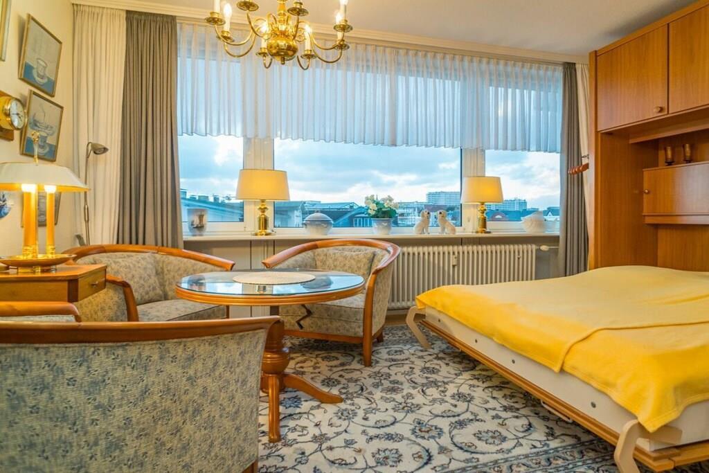 Sehr gepflegte 1-Zimmer-Ferienwohnung, ca. 23m², im 3. OG. Westseite ohne Balkon mit Blick in die Friedrichstraße. Wohn-/ Schlafraum mit Laminat ausgelegt, Doppelschrankbett ( 1,60m x 2m), Sitz-/Essplatz bestehend aus 3 Sesseln und rundem Glastisch, TV, Radio, Küchenzeile mit - 4 Plattenherd, - Wasserkocher, - Toaster - Eierkocher - Kaffeemaschine Duschbad mit Handtuchtrockner und WC. Pkw-Stellplatz auf dem Parkdeck (keine Zuordnung) Abgeschlossener Fahrradraum Achtung: Treppenstufen im Eingangsbereich, danach erst Fahrstuhl. Nichtraucher-Wohnung Tierhaltung ist nicht gestattet. Bettwäsche und Handtücher können gegen Gebühr gebucht werden