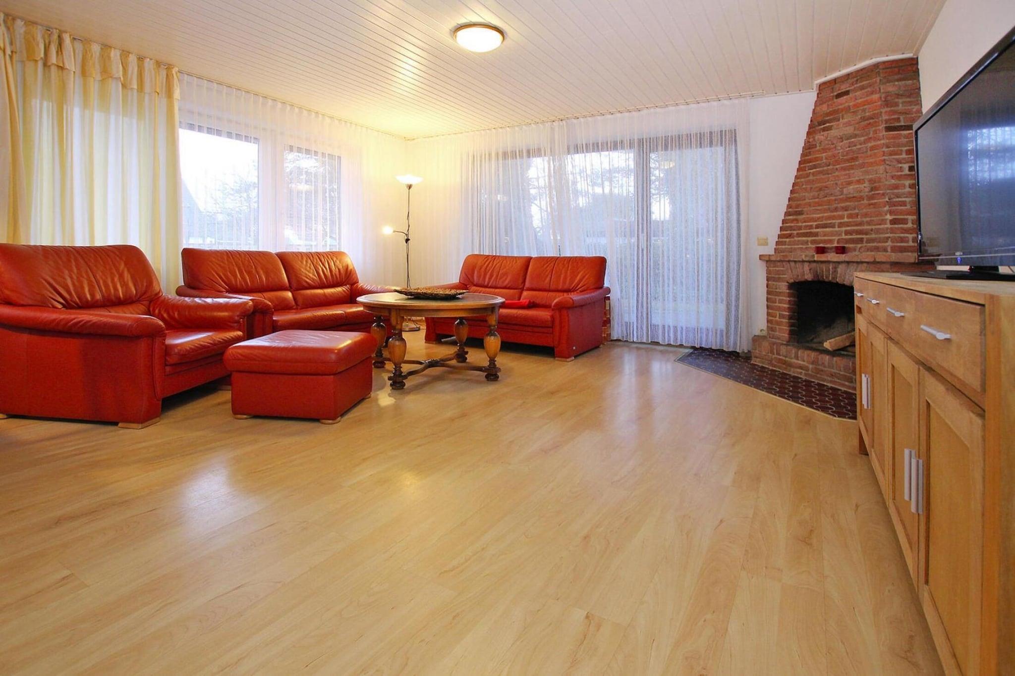Parterre: (offene Küche(Kochplatte(Ceranfeld), Toaster, Kaffeemaschine, Mikrowelle, Spülmaschine, Kühlschrank), Wohn/Esszimmer(TV(Kabel), Esstisch, Radio), Schlafzimmer(Einzelbett, Einzelbett), Badezimmer(Dusche, Waschbecken, Toilette)) Souterrain: (Schlafzimmer(Doppelbett)) Sauna(Gemeinschaftliche Nutzung mit anderen Gästen, gegen Gebühr), Heizung(Zentral, Öl), Terrasse, Gartenmöbel, Parkplatz (öffentlich), Pool(Gemeinschaftliche Nutzung mit anderen Gästen, innen), Hochstuhl, Babybett (kostenlos), Wäschepaket gegen Gebühr