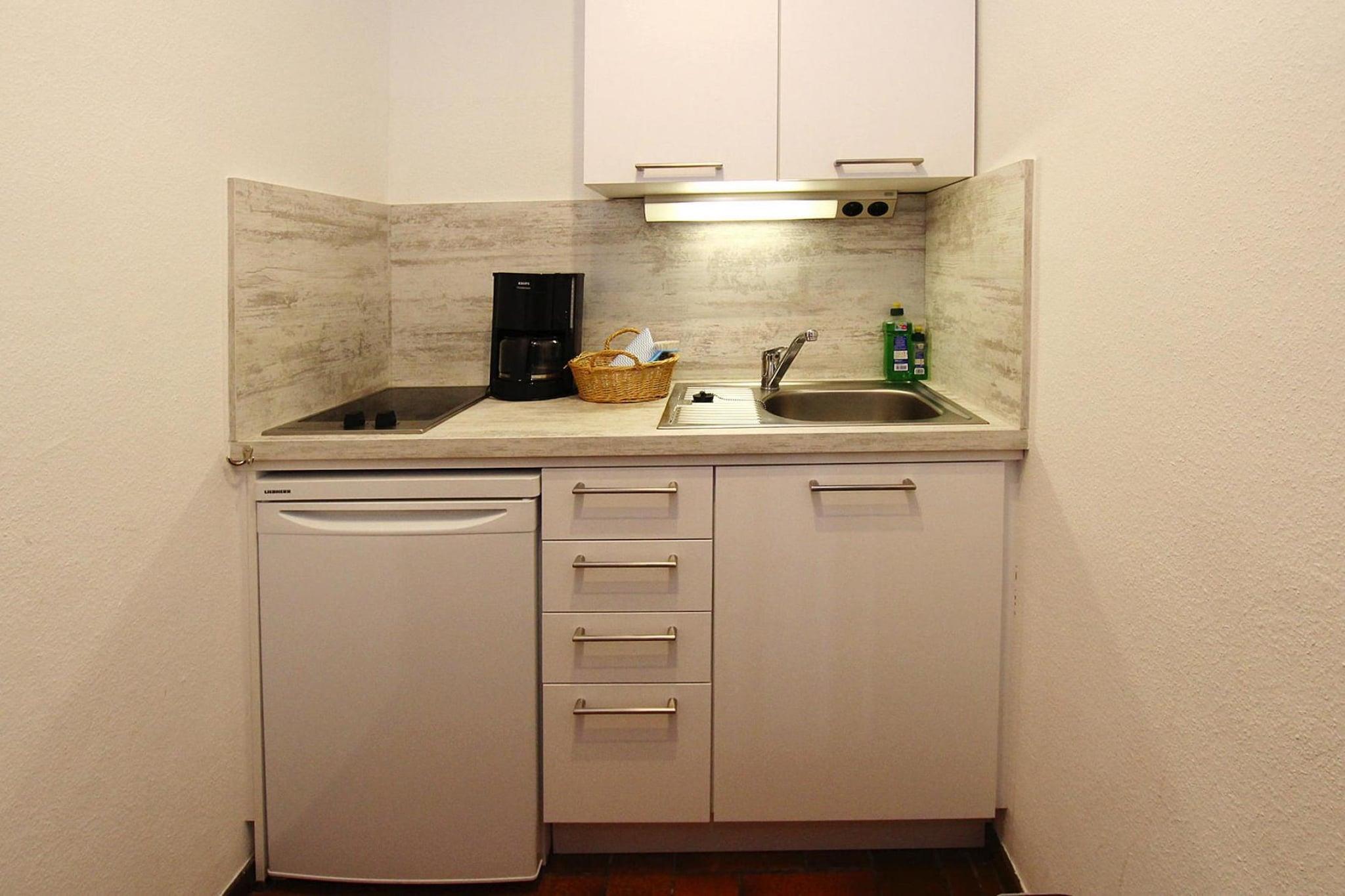 Parterre: (offene Küche(mini kitchen, Toaster, Kochherd(Ceranfeld), Kaffeemaschine, Mikrowelle), Wohn-/Schlafzimmer(Doppelbett, TV(Kabel), Esstisch, Radio), Badezimmer(Dusche, Waschbecken, Toilette)) Sauna(Gemeinschaftliche Nutzung mit anderen Gästen), Terrasse, Gartenmöbel, Parkplatz (öffentlich), Pool(Gemeinschaftliche Nutzung mit anderen Gästen), Hochstuhl, Babybett (kostenlos), Wäschepaket gegen Gebühr