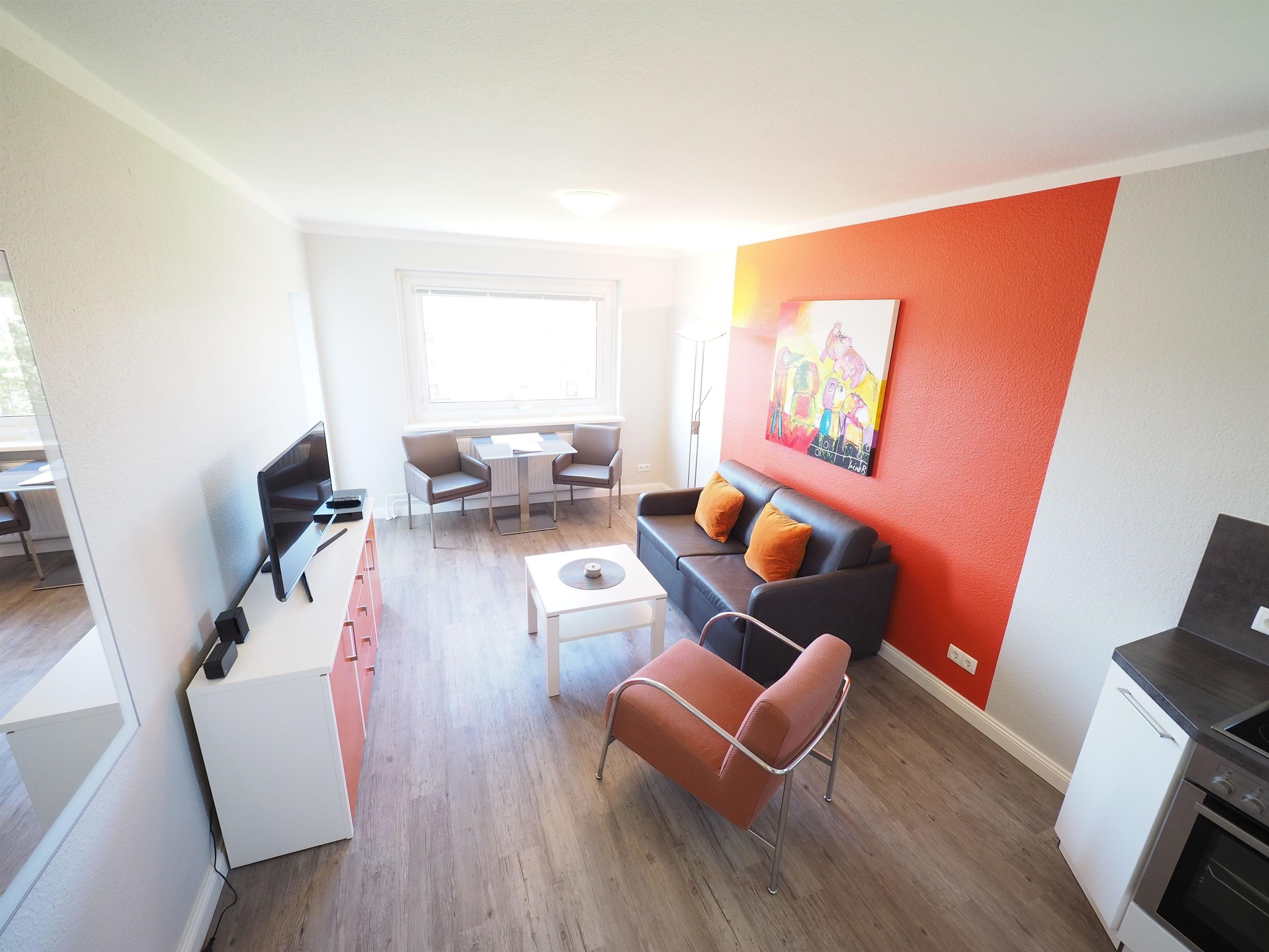 Wohnzimmer: Entspannen Sie sich auf der komfortablen Schlafcouch und genießen Sie Unterhaltung auf dem LED-TV oder dem DVD-Radio. Die angrenzende Essecke ist perfekt für gemütliche Mahlzeiten und gesellige Stunden.