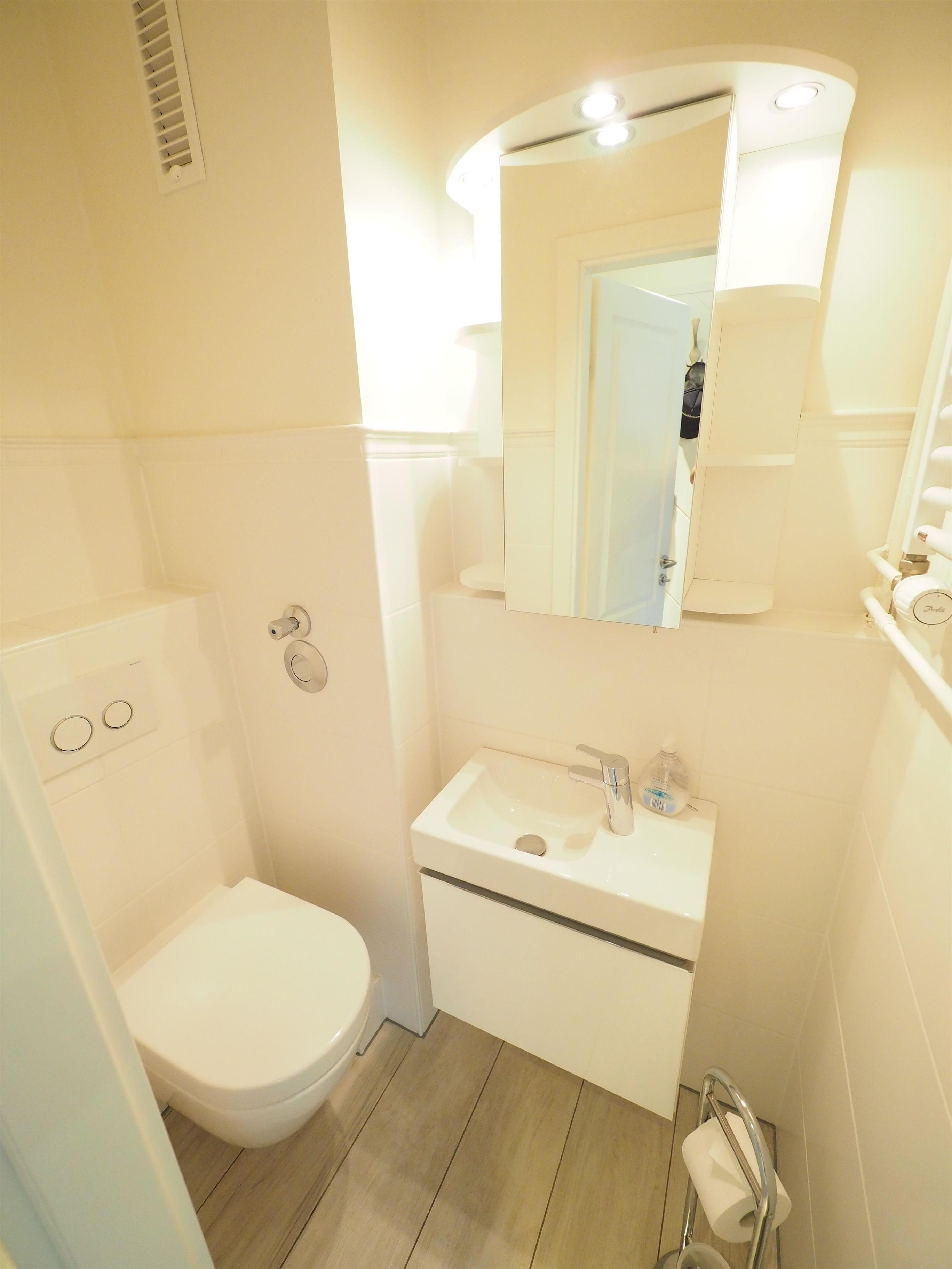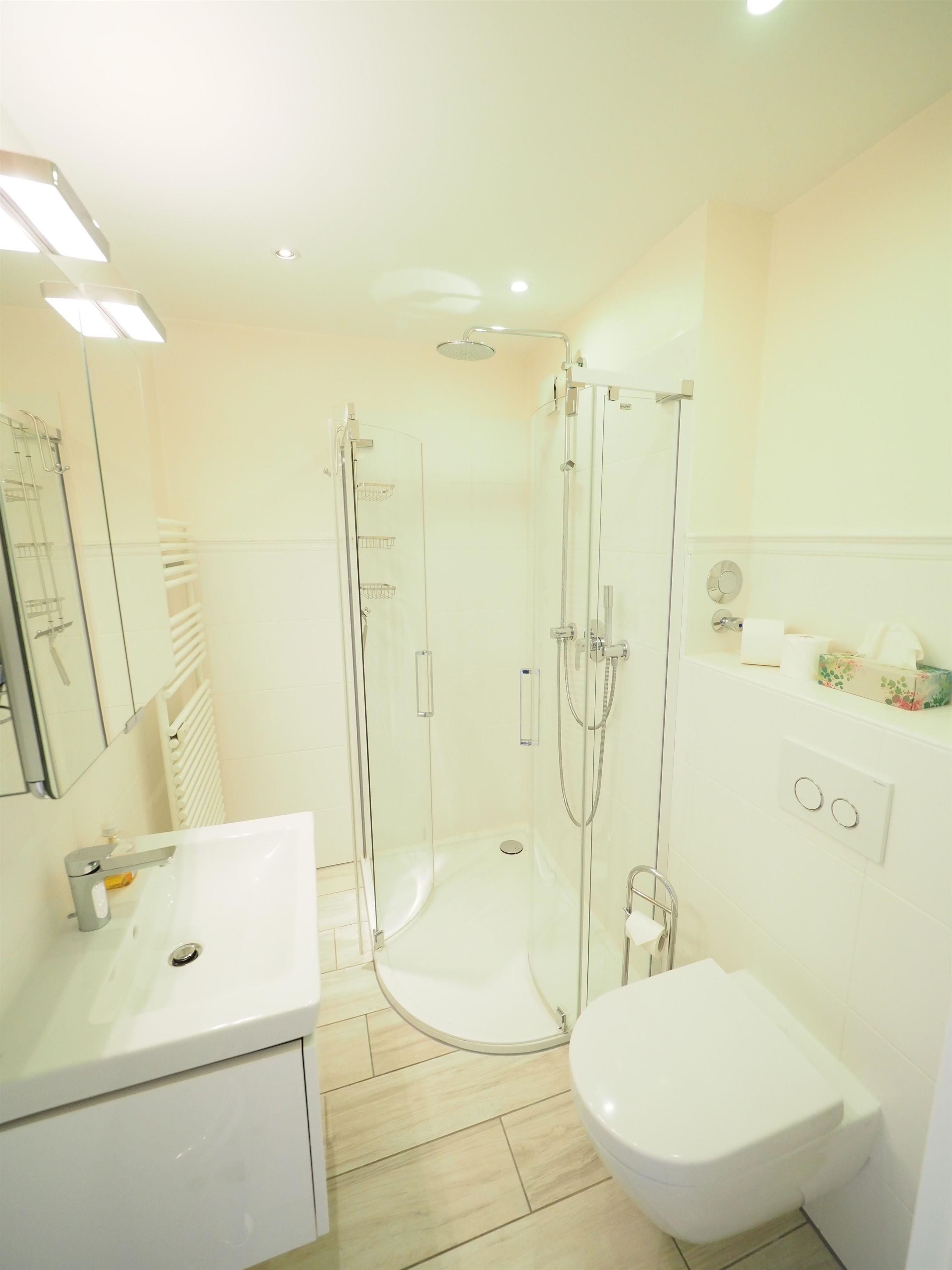 Badezimmer: Ein modernes Duschbad mit WC sorgt für frische und praktische Annehmlichkeiten. Zusätzlich gibt es eine separate Gästetoilette.