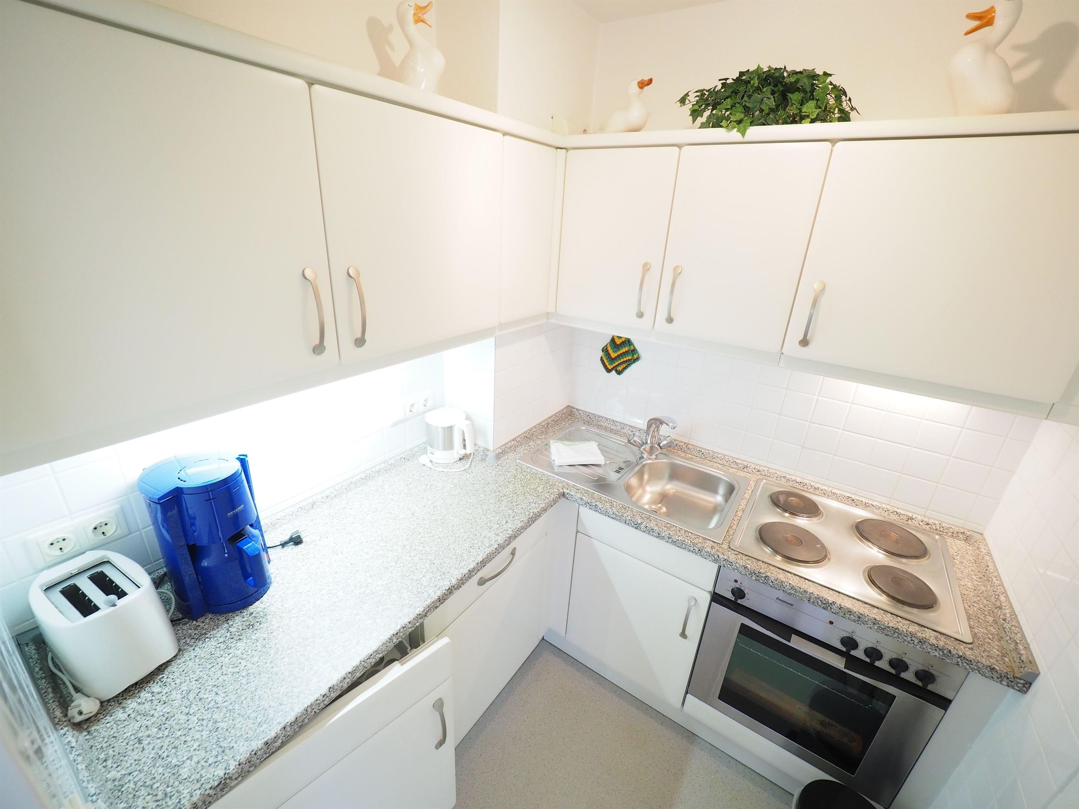 In der offenen Küche finden Sie alles, was Sie für Ihre kulinarischen Abenteuer benötigen: einen E-Herd mit 4-Plattenkochfeld und einen Kühlschrank. Das Duschbad mit WC bietet Ihnen den Komfort, den Sie für eine erfrischende Dusche benötigen.