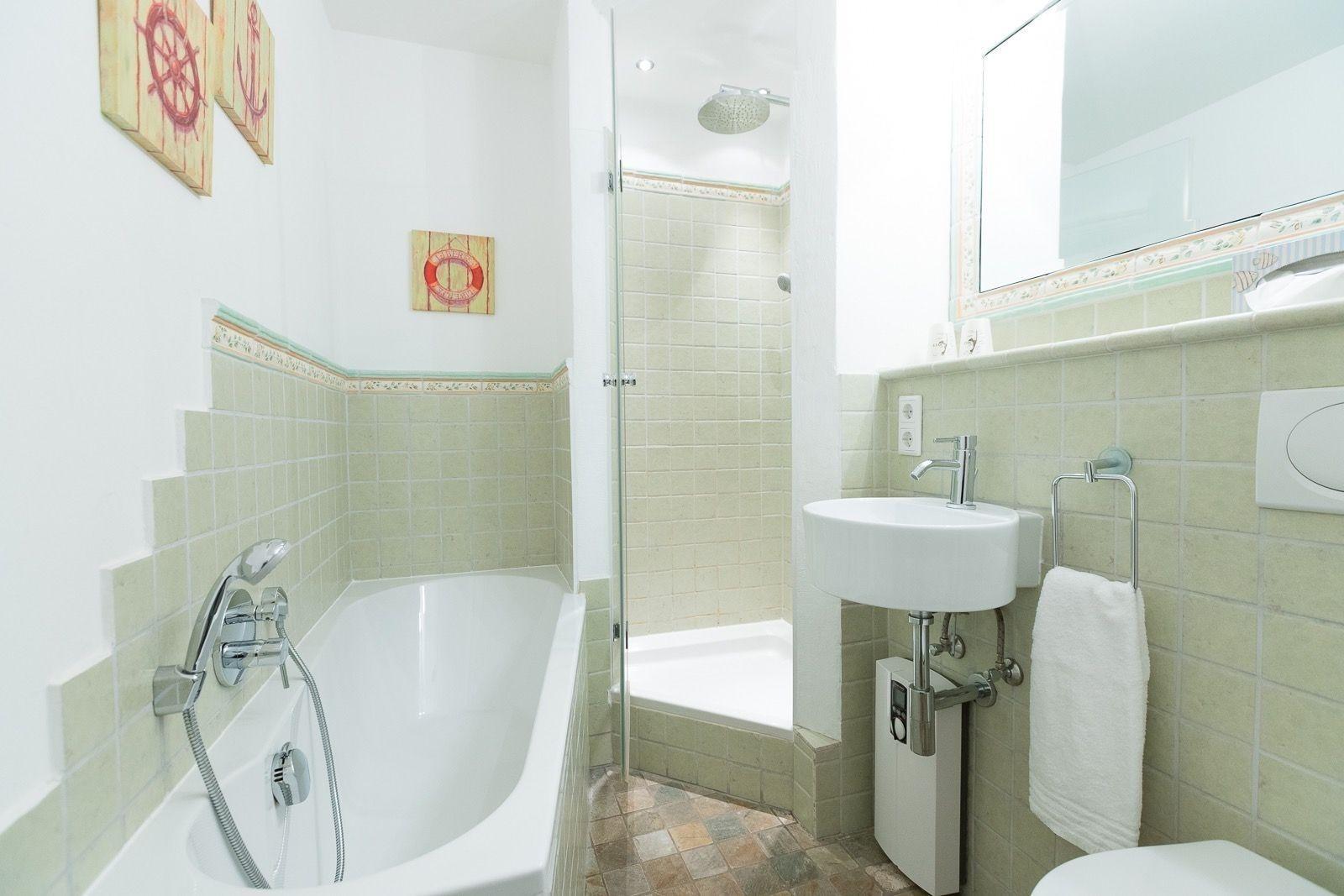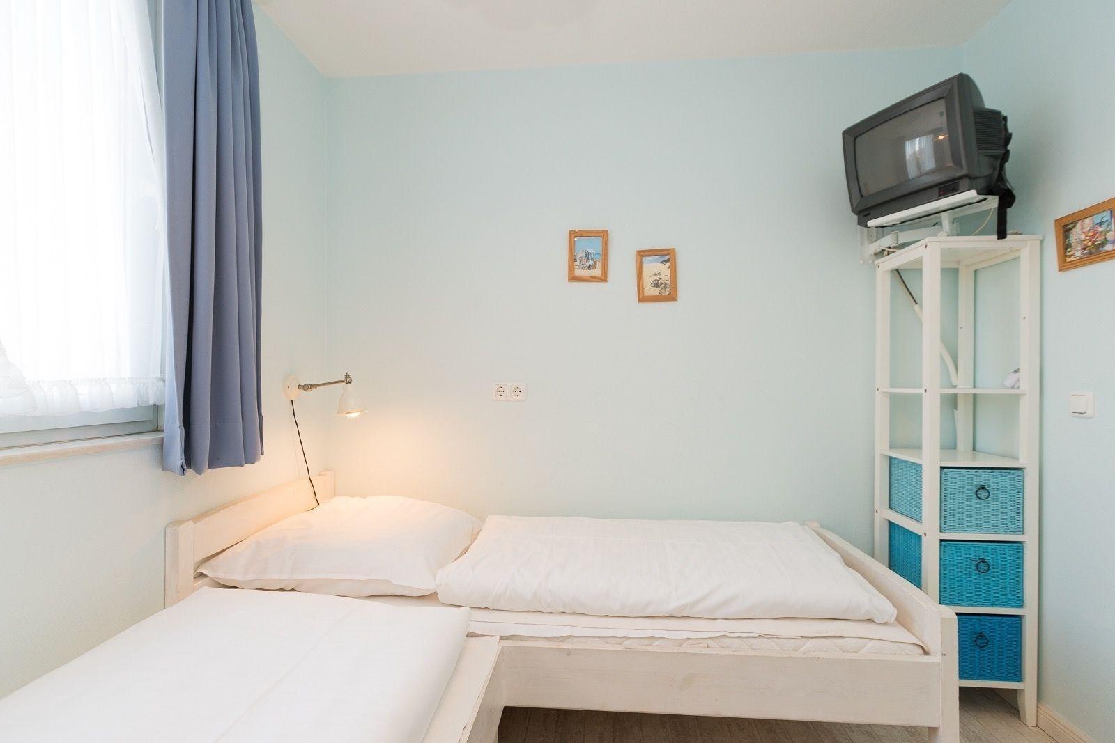 Für erholsame Nächte stehen Ihnen zwei Schlafzimmer zur Verfügung: Ein Schlafzimmer mit einem komfortablen Doppelbett (180x200 cm, getrennte Matratzen) und ein zweites Schlafzimmer mit zwei Einzelbetten (90x200 cm) – perfekt für Familien oder Freunde, die gemeinsam einen entspannten Urlaub verbringen möchten. Das moderne Badezimmer ist mit einer Badewanne und einer separaten Dusche ausgestattet, ideal für eine entspannende Auszeit nach einem ereignisreichen Tag am Strand.