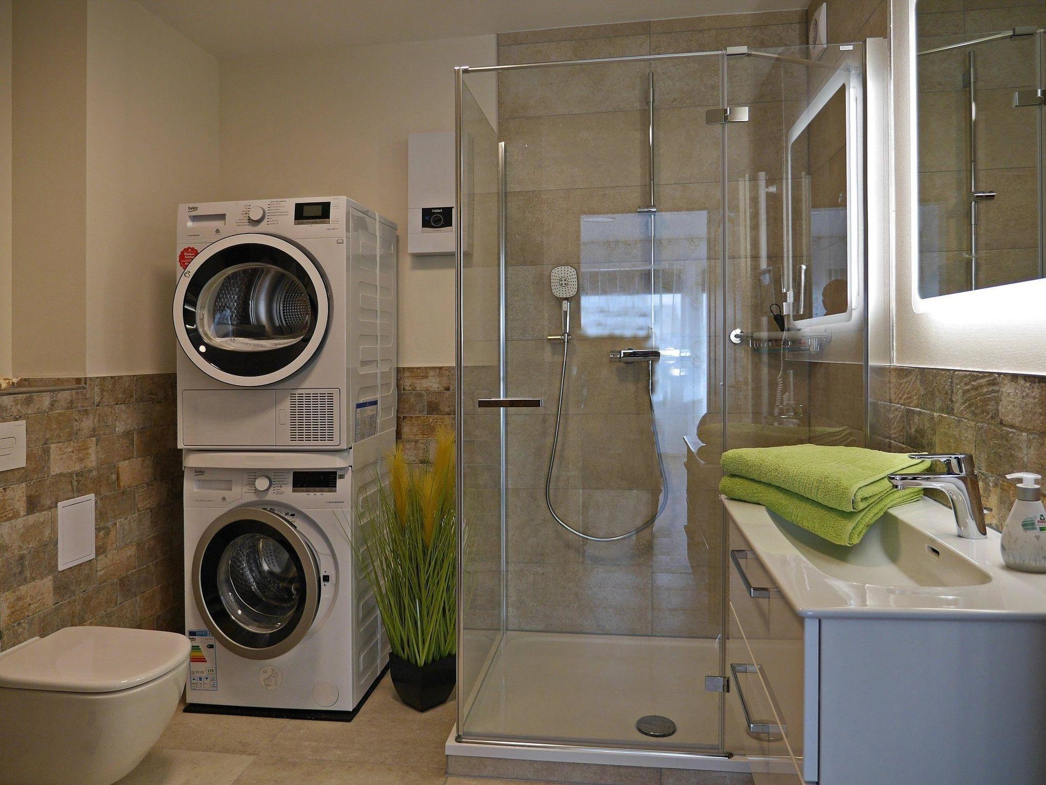 sowie einen Wäscheraum mit Waschmaschine und Trockner (mit Münzautomaten) zur Mitbenutzung.