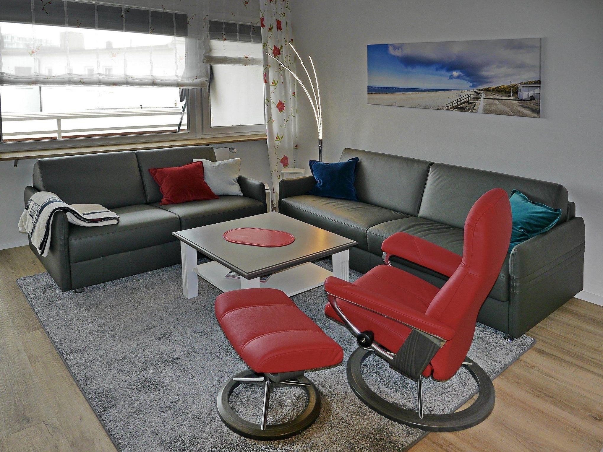 Moderne, barrierefreie Ferienwohnung nahe Strand und Kurpromenade in Westerland mit Balkon und Sauna.