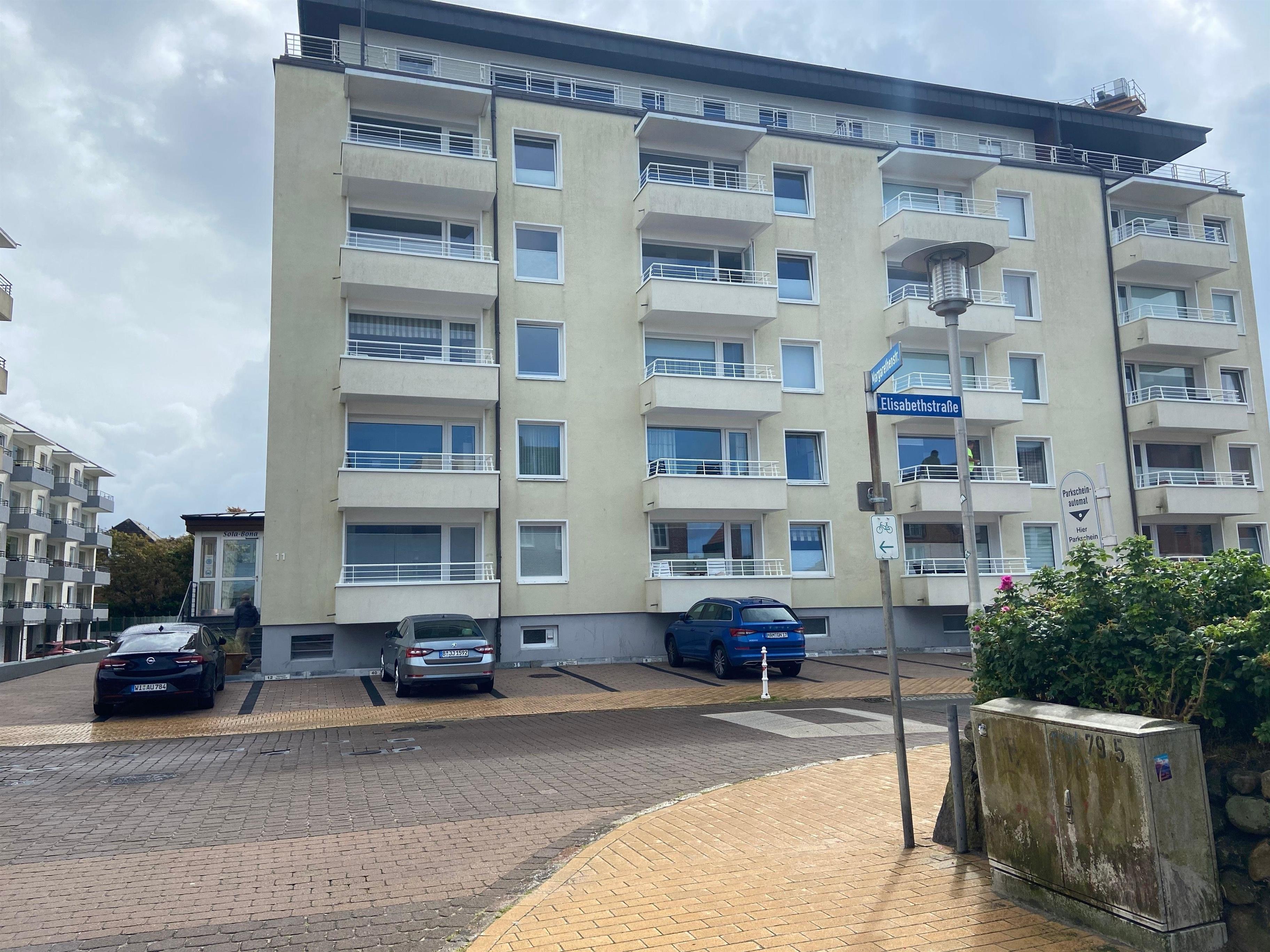 Das Appartement liegt ruhig nach hinten zum Parkplatz.