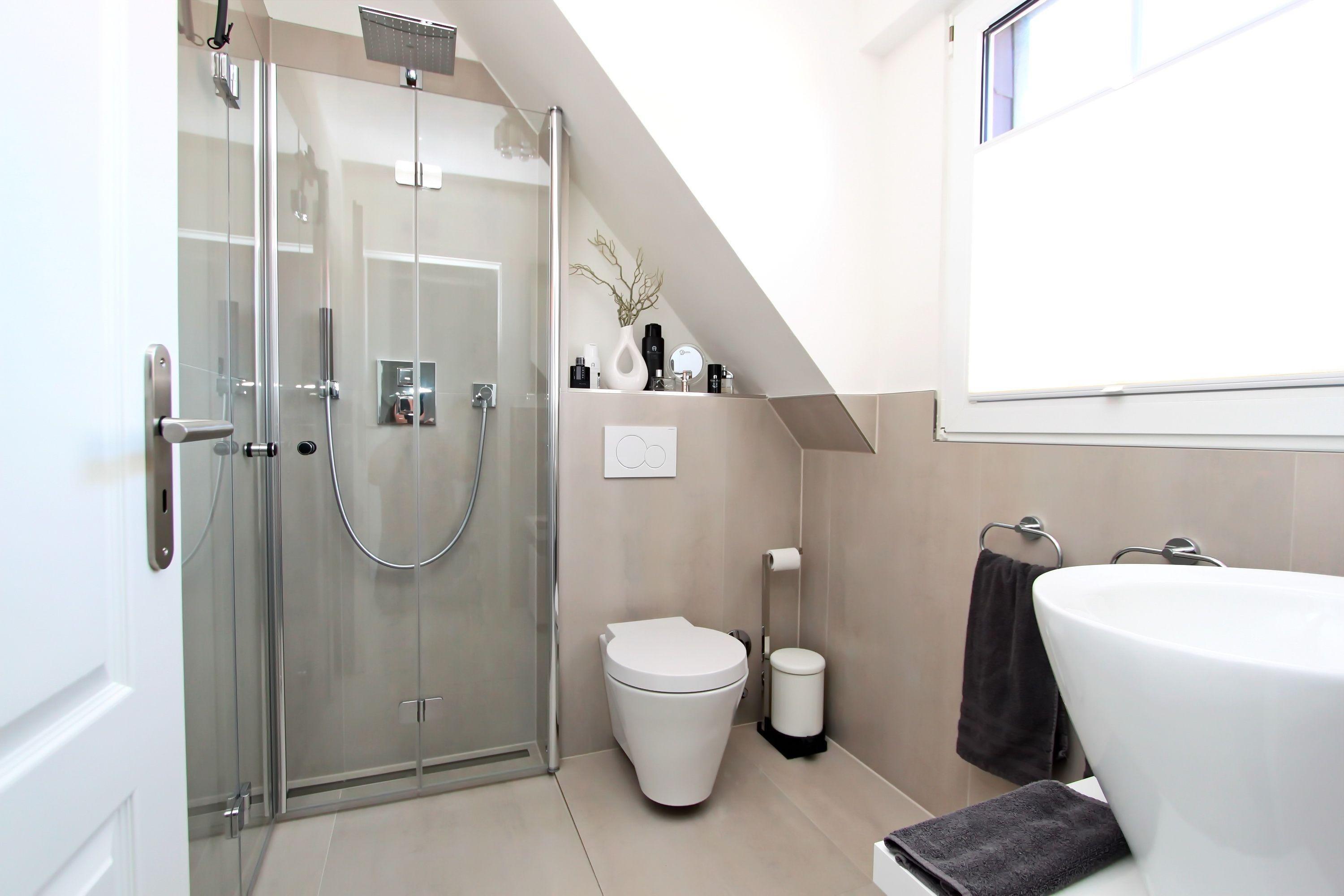 Eine große Fensterfläche und der Einbauspiegelschrank runden die obere Etage stimmig ab.