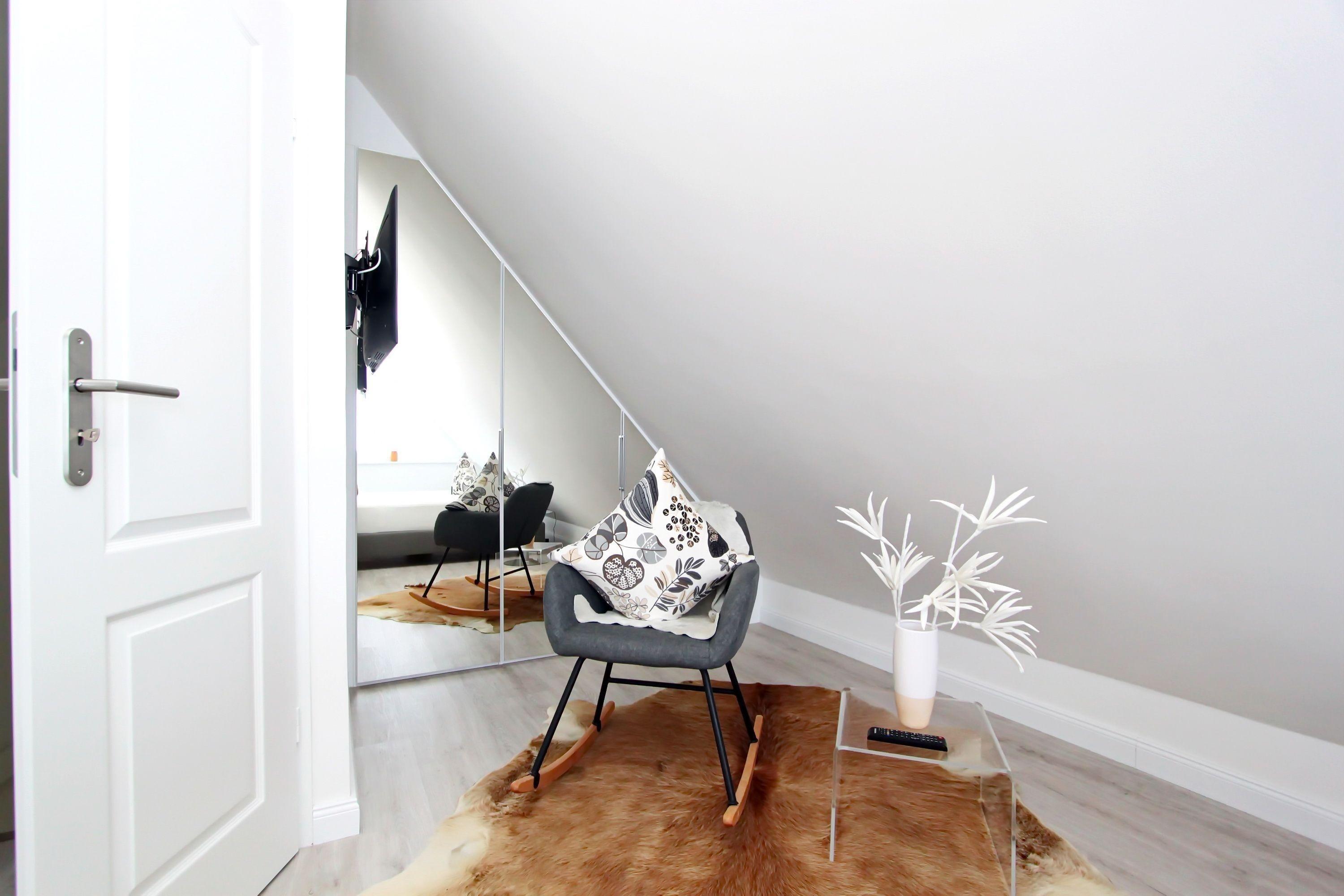 Ein gemütlicher Schaukelstuhl bietet Ihnen eine ruhige Rückzugsmöglichkeit im Dachgeschoss.