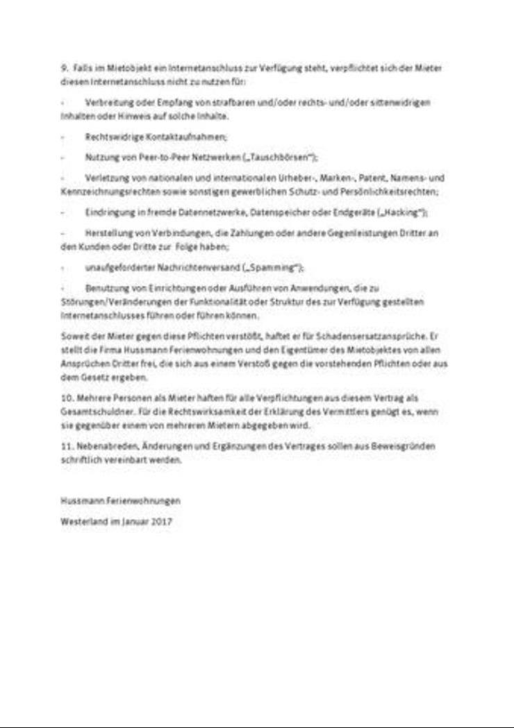 In den ausgeschriebenen Kosten pro Nacht (siehe Kalender) sind jeweils Tourismusabgaben für 2 Personen ("Kurkarten") enthalten. Diese belaufen sich vom 1.11.-30.4. auf 1,75 Euro pro Person pro Tag und vom 1.5.-31.10. auf 3,50 Euro pro Person pro Tag.