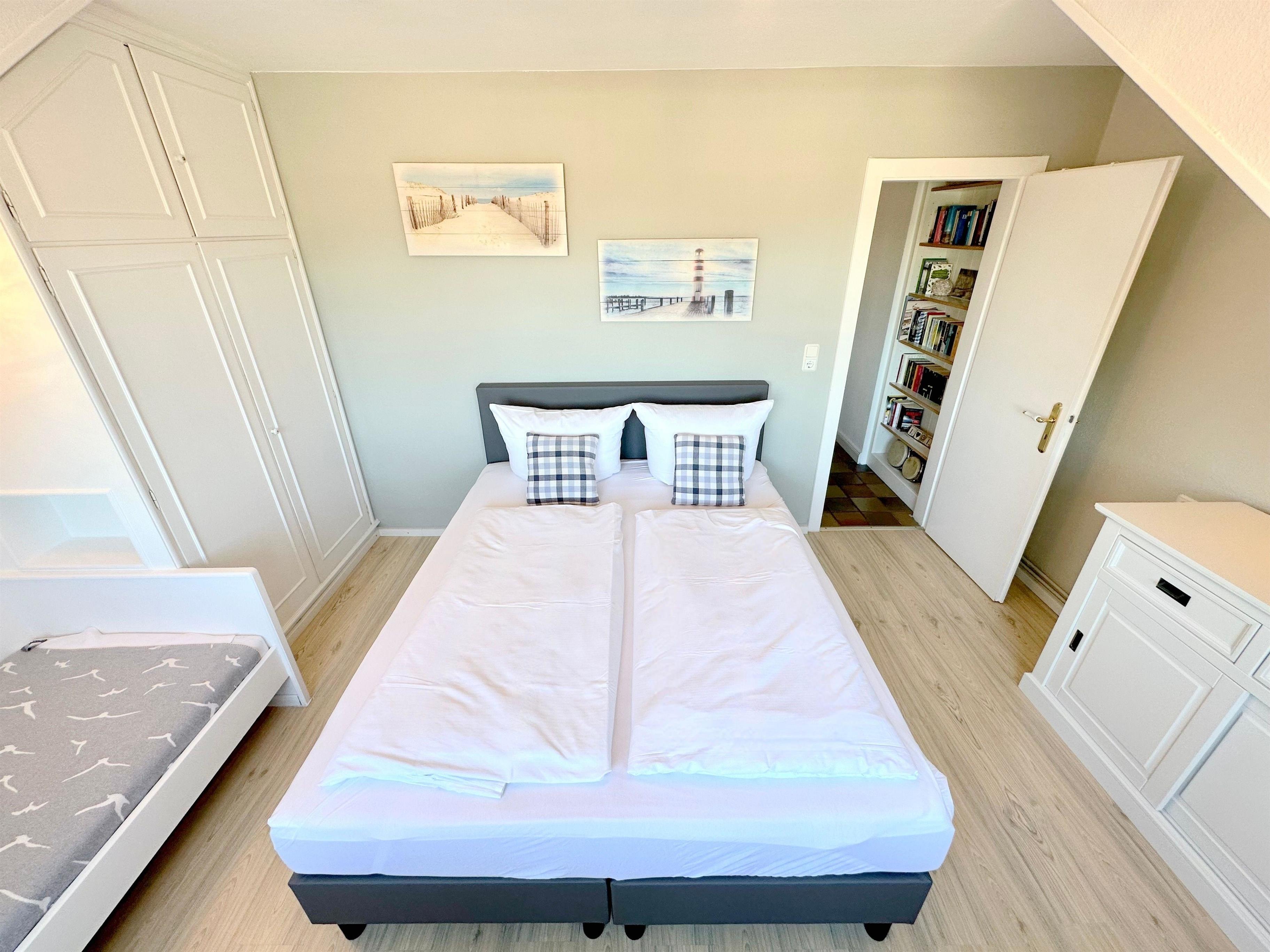 Haben Sie mit mehr als 4 Personen gebucht, öffnen wir ihnen gerne unser Dachgeschoss, dort befindet sich das “Märchen-Zimmer" mit einem 1,40m großen Doppelbett sowie eigenem WC und Duschbad.