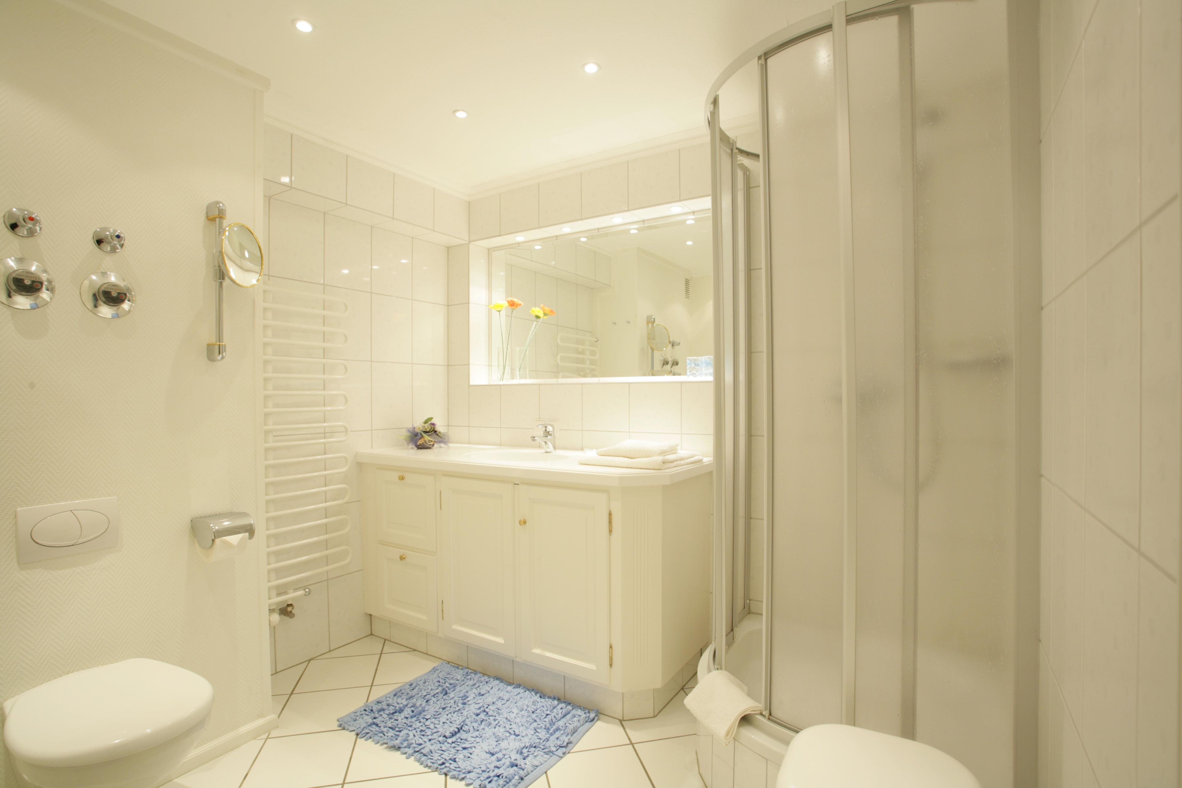 Das großzügige Duschbad ist mit großem Waschtisch, Handtuchtrockner, Kosmetikspiegel und Fön ausgestattet. Im Schlafzimmer befindet sich ein Doppelbett. Es steht Ihnen ein Flachbild TV und ein Safe im Schlafzimmer zur zur Verfügung.